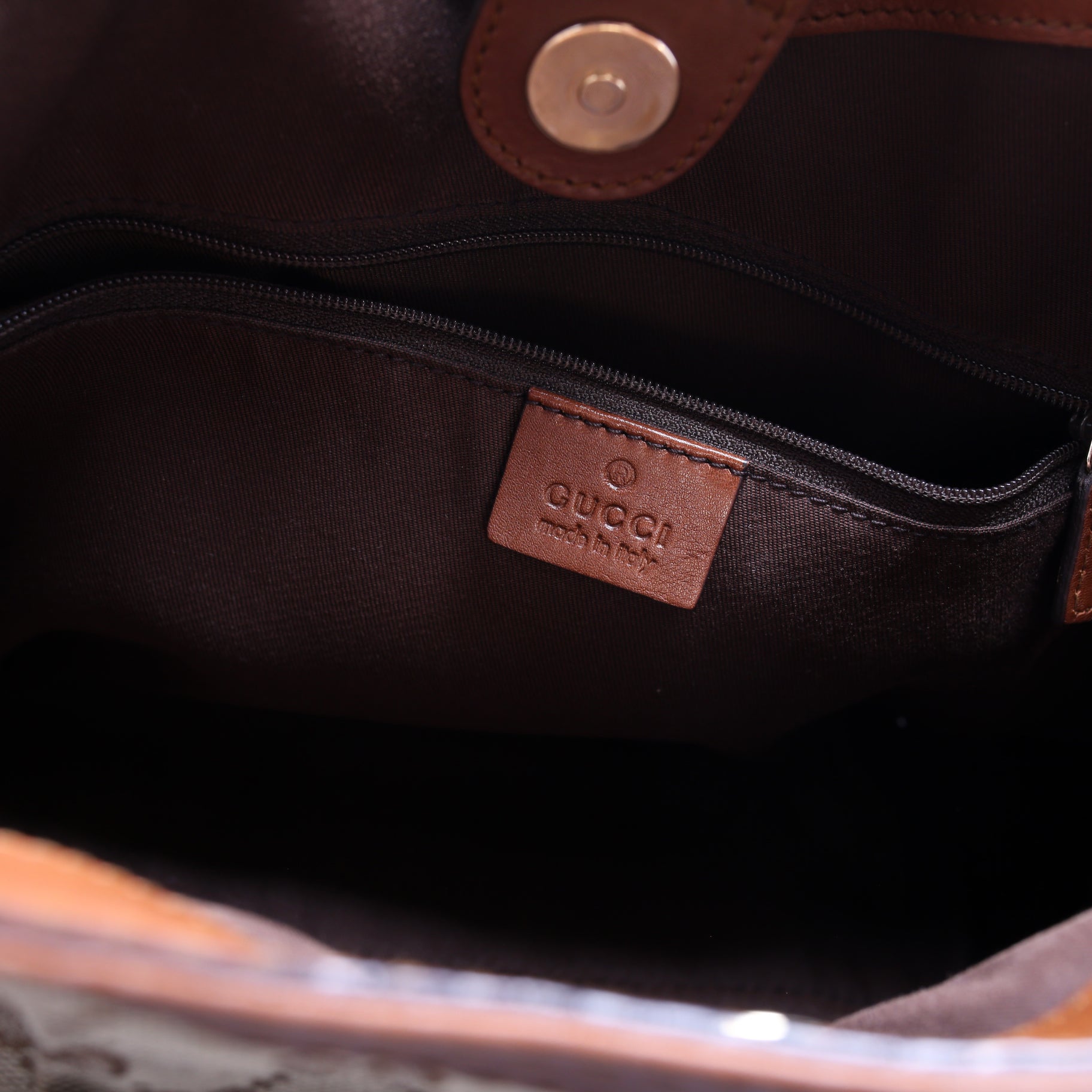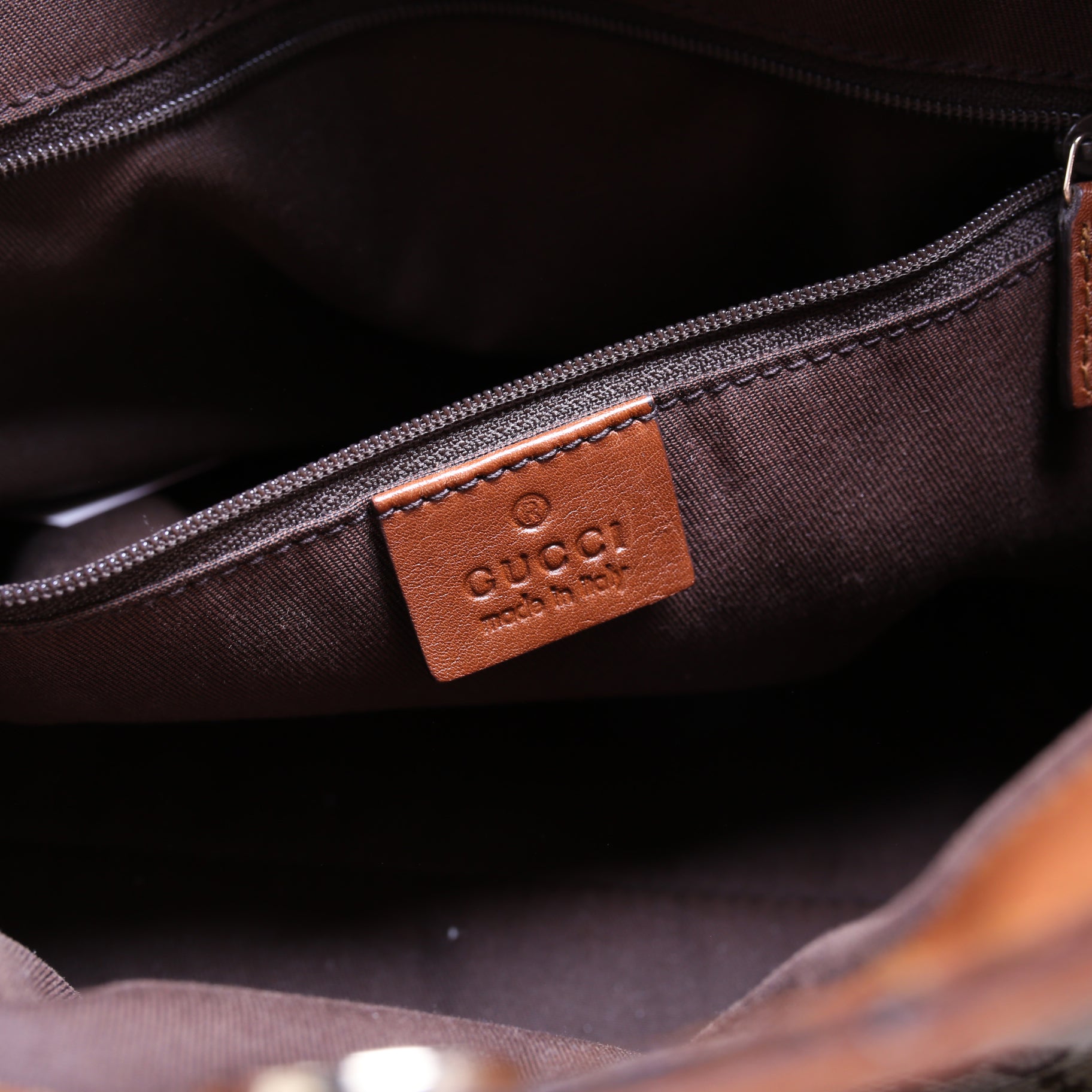 Interior: The interior is clean and free of rips or tears. The interior features one zip closure pocket.