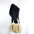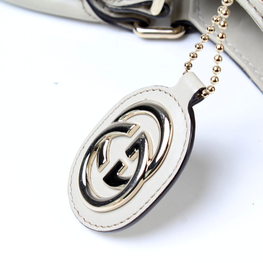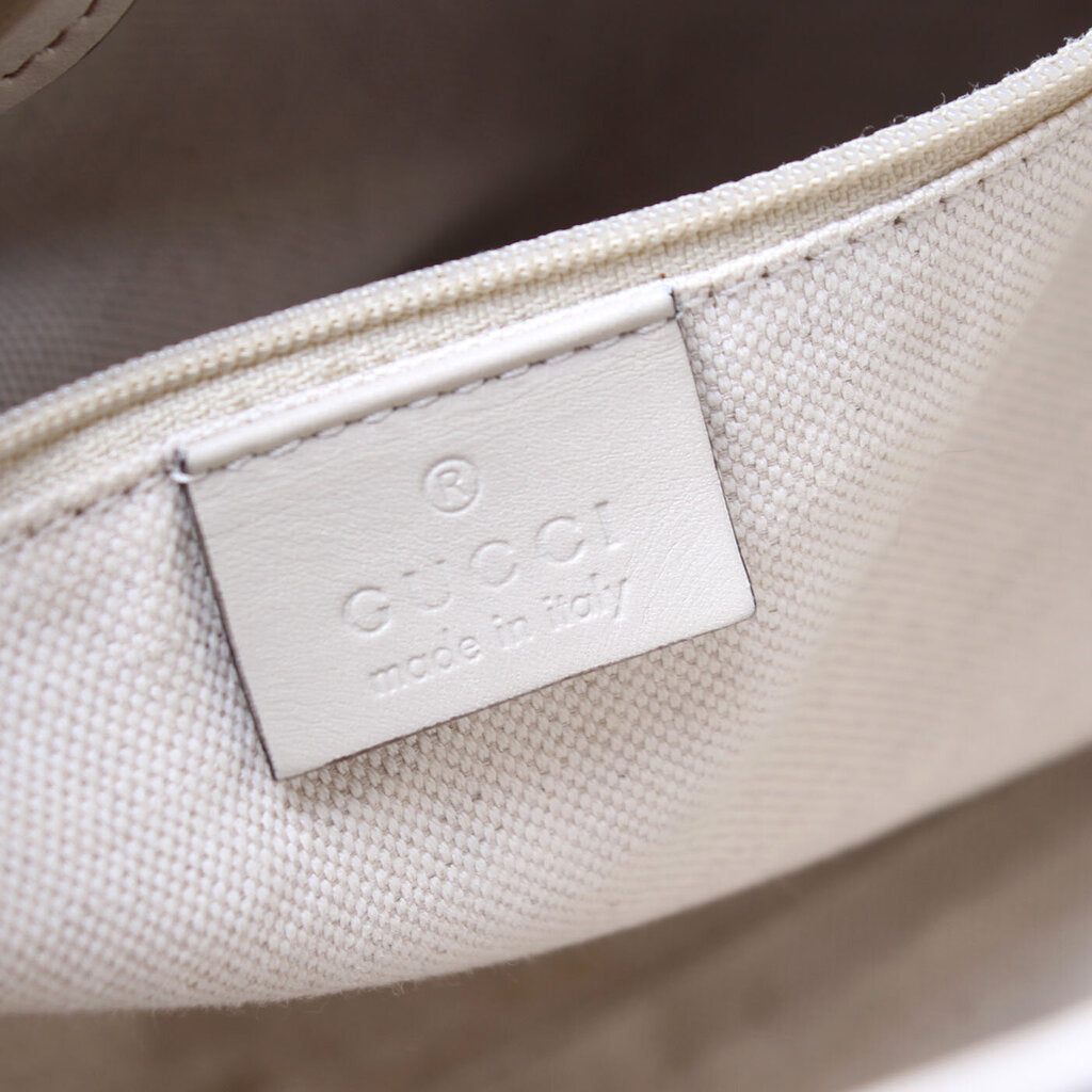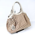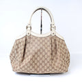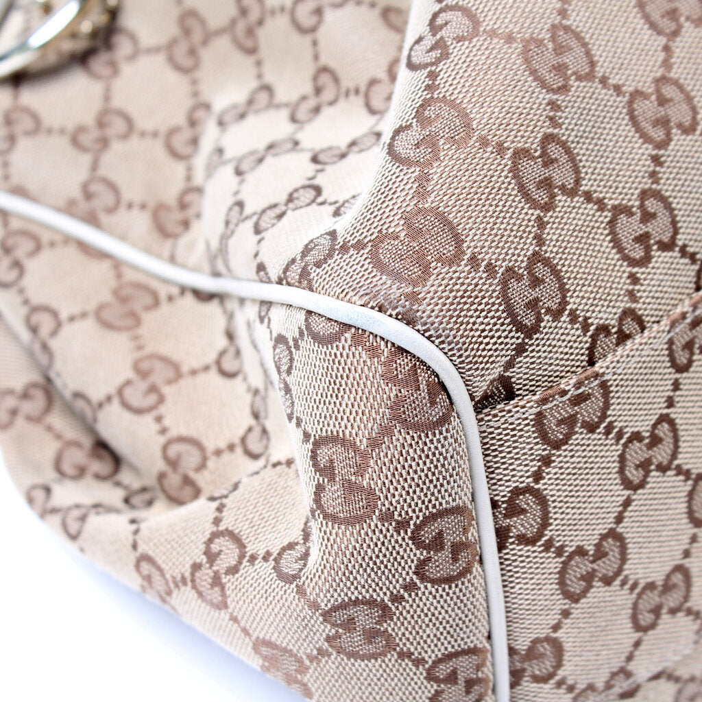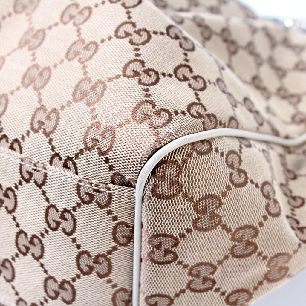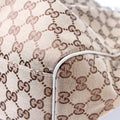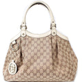This Gucci Sukey Mediumis eye catching bag. The exterior is in the Gucci canvas.