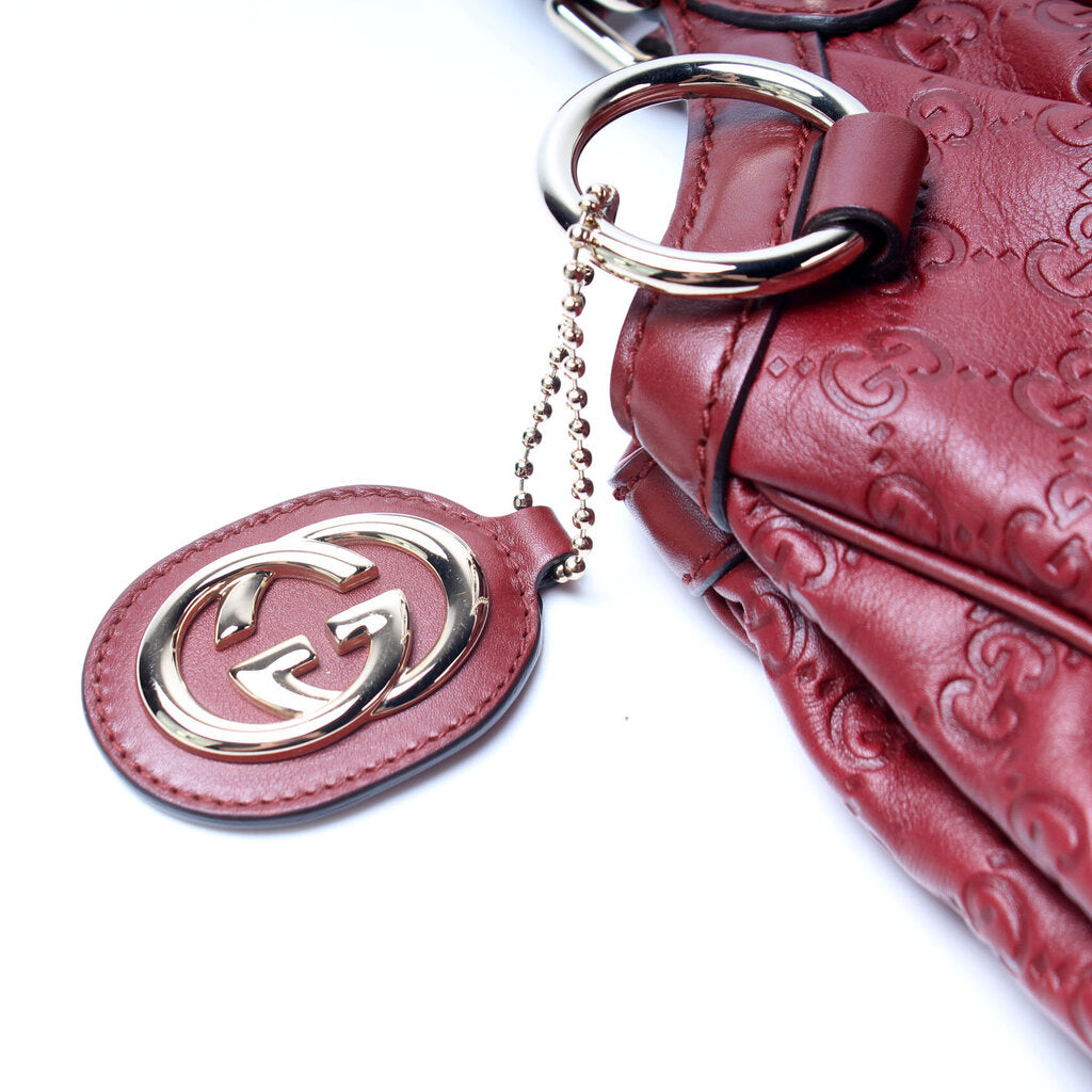This Gucci Sukey Mediumis eye catching bag. The exterior is in the classic Gucci Guccissima leather.