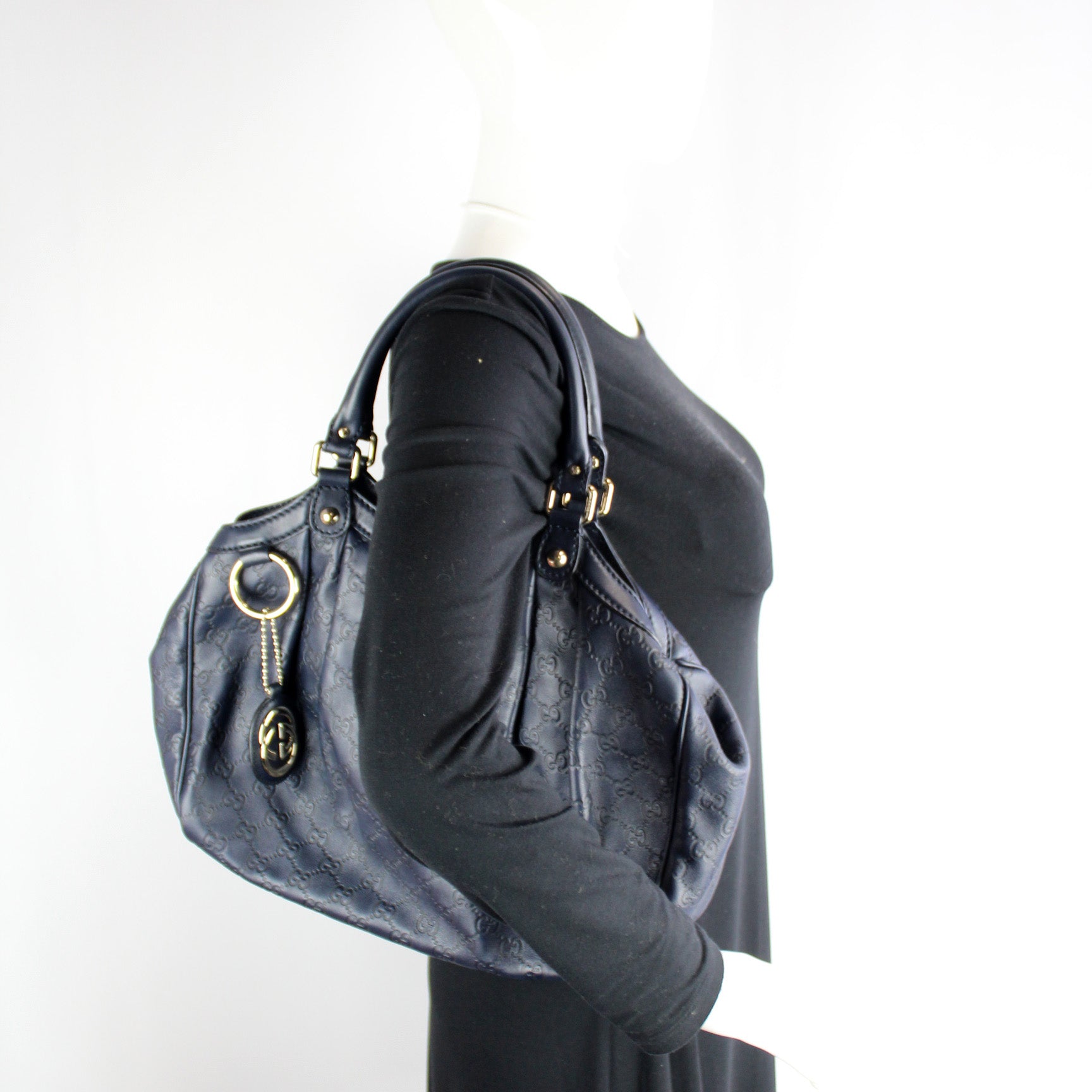 This Gucci Sukey Mediumis eye catching bag. The exterior is in the classic Gucci Guccissima leather.