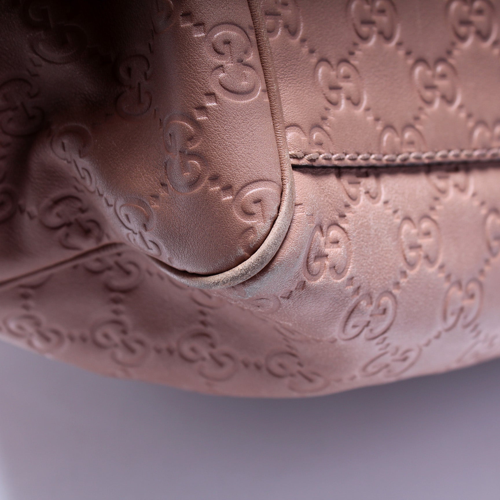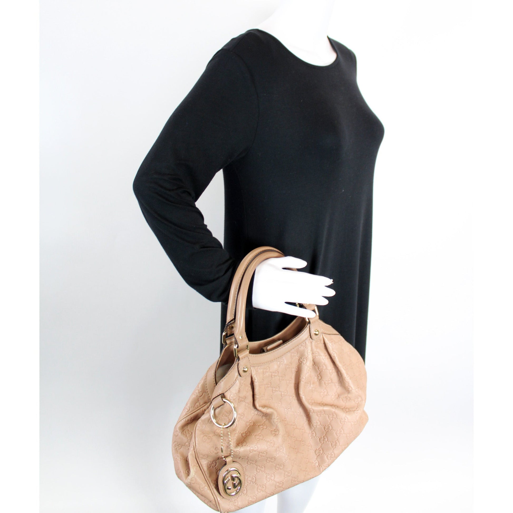 This Gucci Sukey Mediumis eye catching bag. The exterior is in the Gucci Guccissima leather.