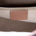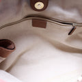 Interior: The interior shows discoloration. The interior features one zip closure pocket. There is pink color transfer to the interior pocket.