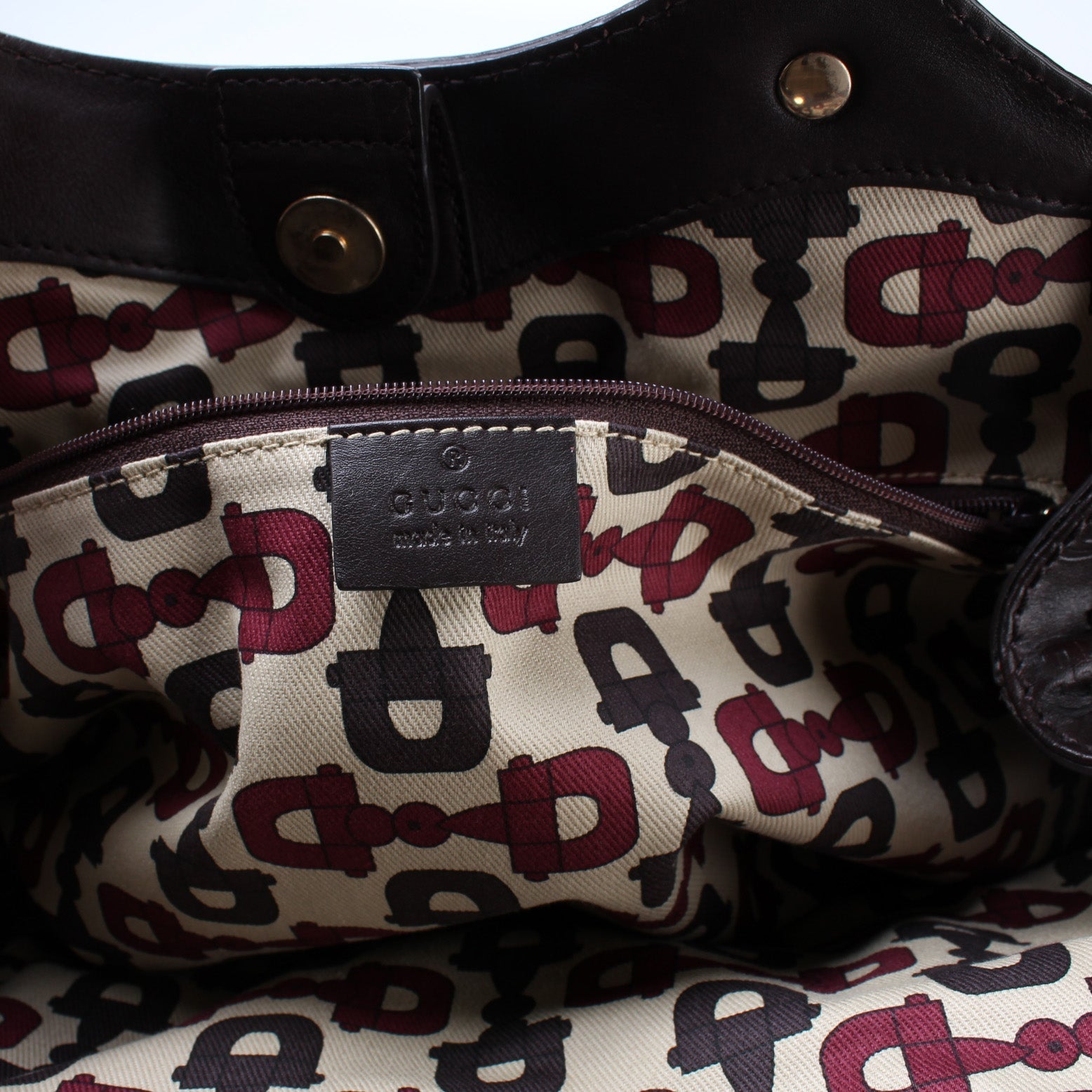 This Gucci Sukey Mediumis eye catching bag. The exterior is in the classic Gucci Guccissima leather.