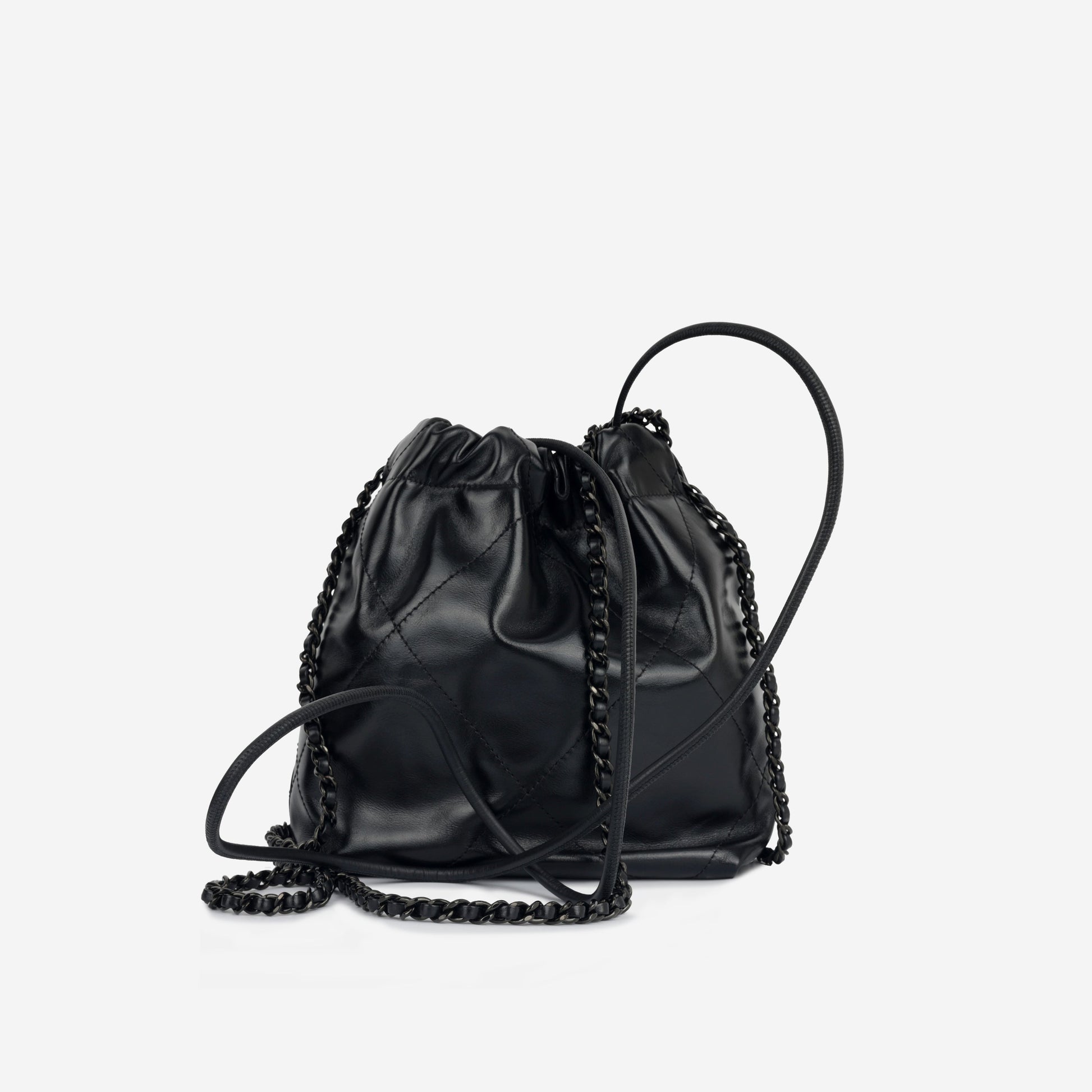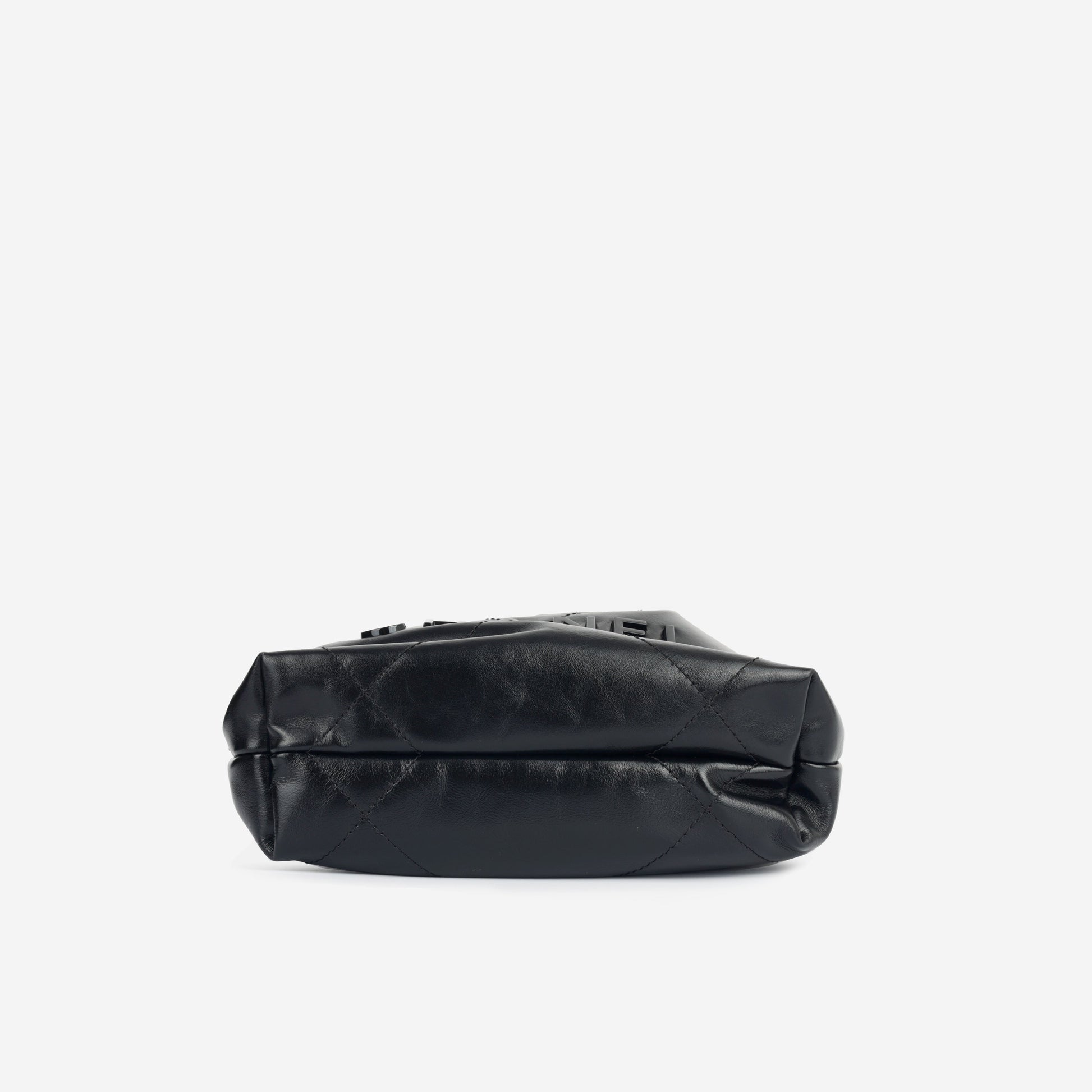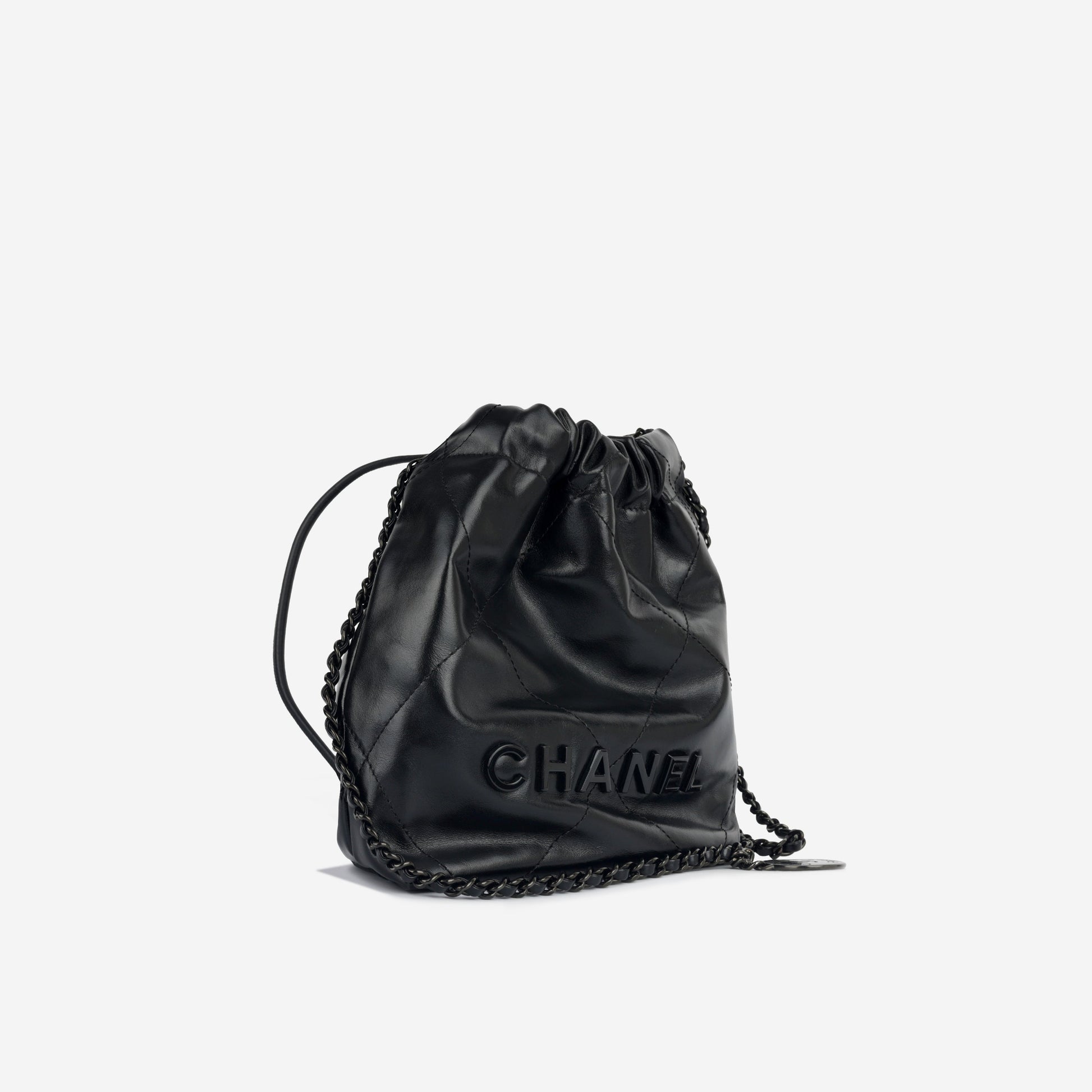 Carefully crafted from shiny calfskin leather, Chanel presents their 22 Mini. The chicest item for the lady that wants to carry everything around with them, this bag features Chanels classic interwoven back straps along with top handles to carry it handheld. This piece from 2023 is a well worthy addition to any luxury handbag collection.