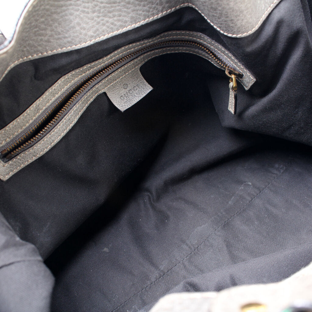 Interior: The interior is free of rips or tears. There is minor discoloration to the interior fabric. The interior features one zip closure pocket.