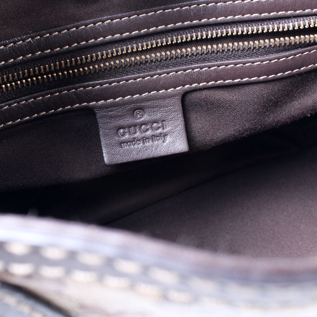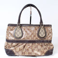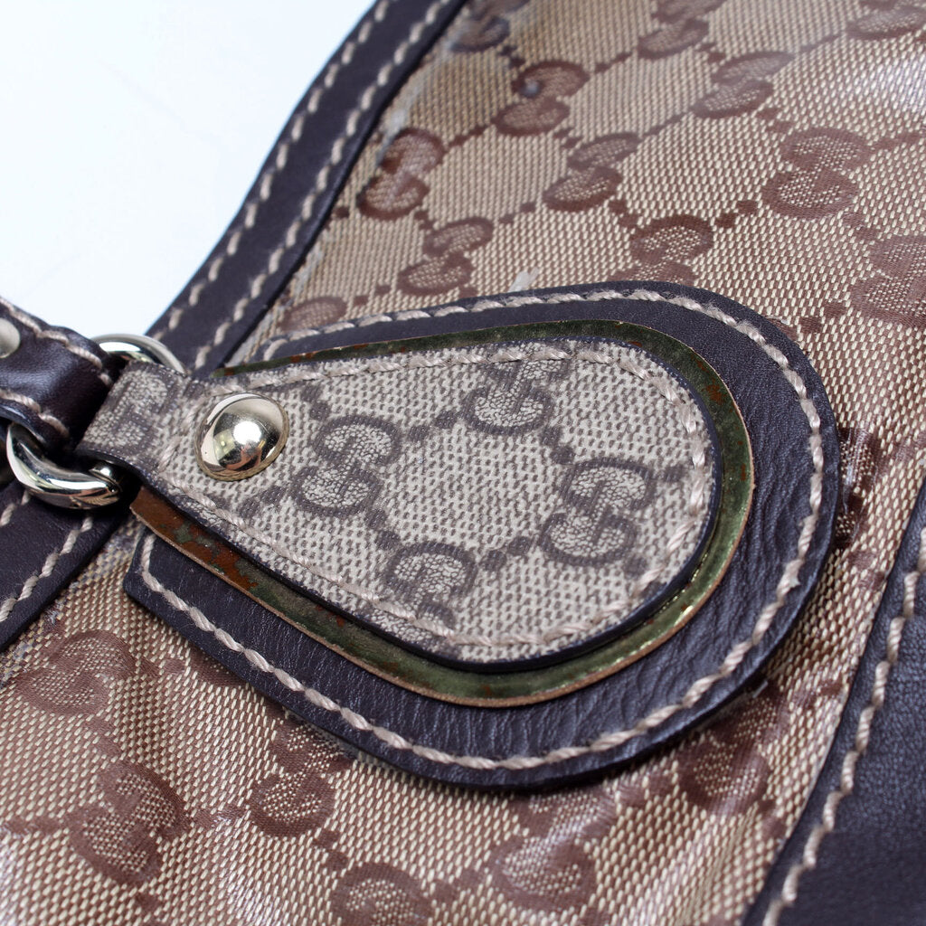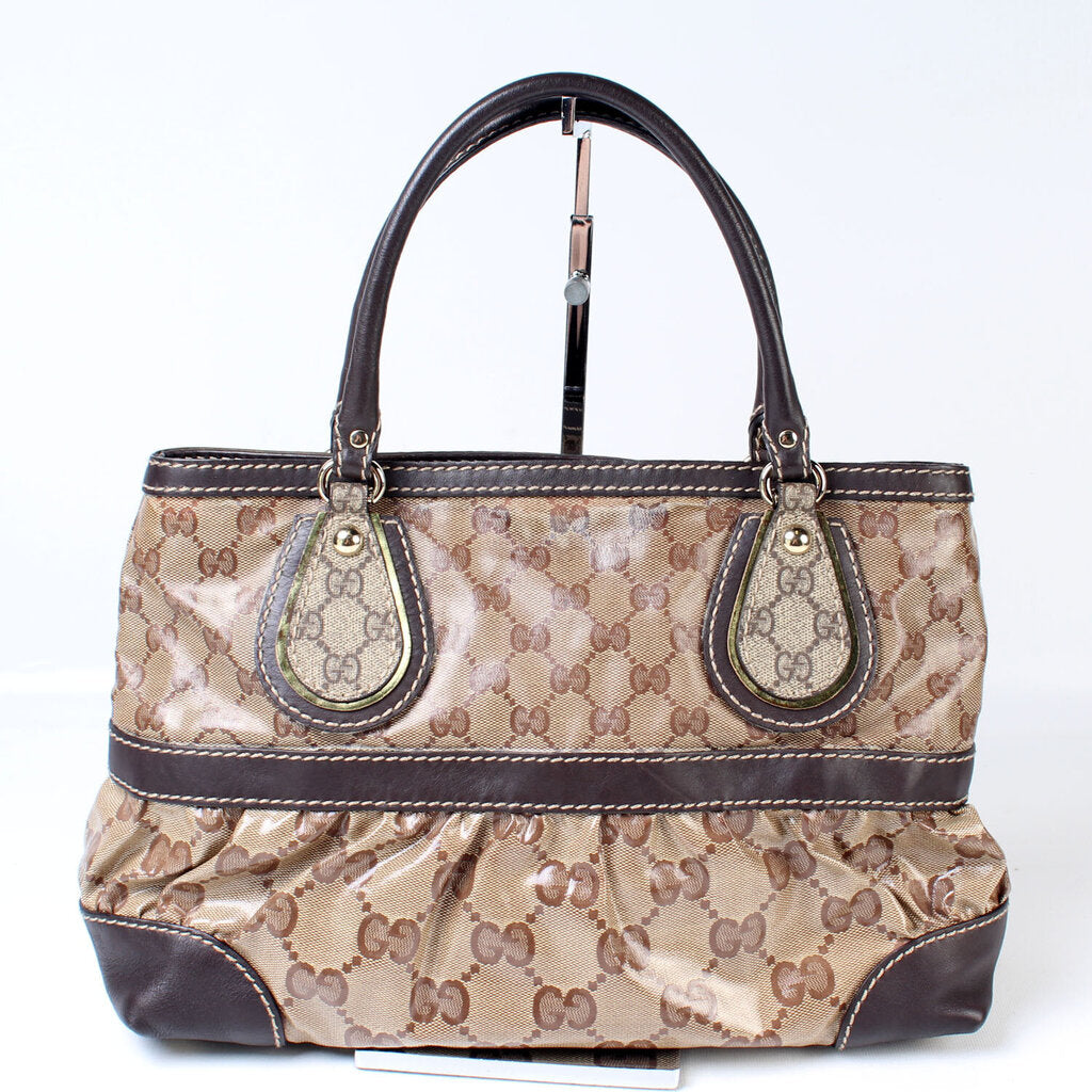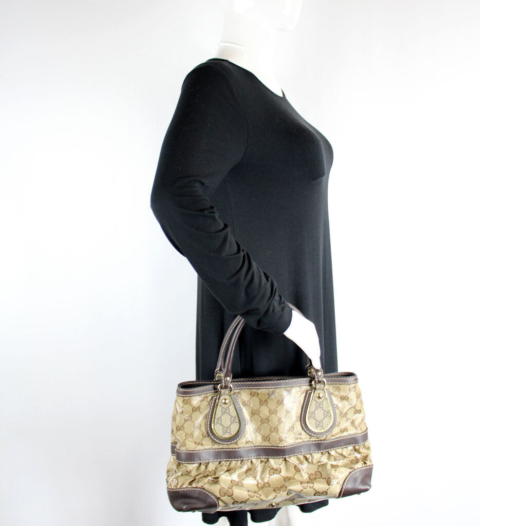 This Gucci Crystal Toteis eye catching bag. The exterior is in the classic GG Crystal Canvas coated canvas.