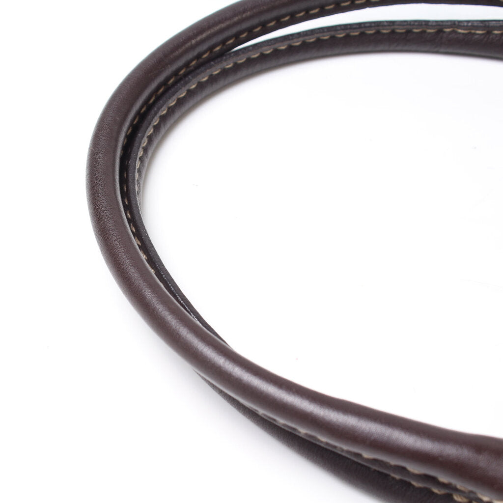 Exterior: The exterior coated canvas glue glazing around the middle leather trim is showing and the corners show minimal signs of wear.