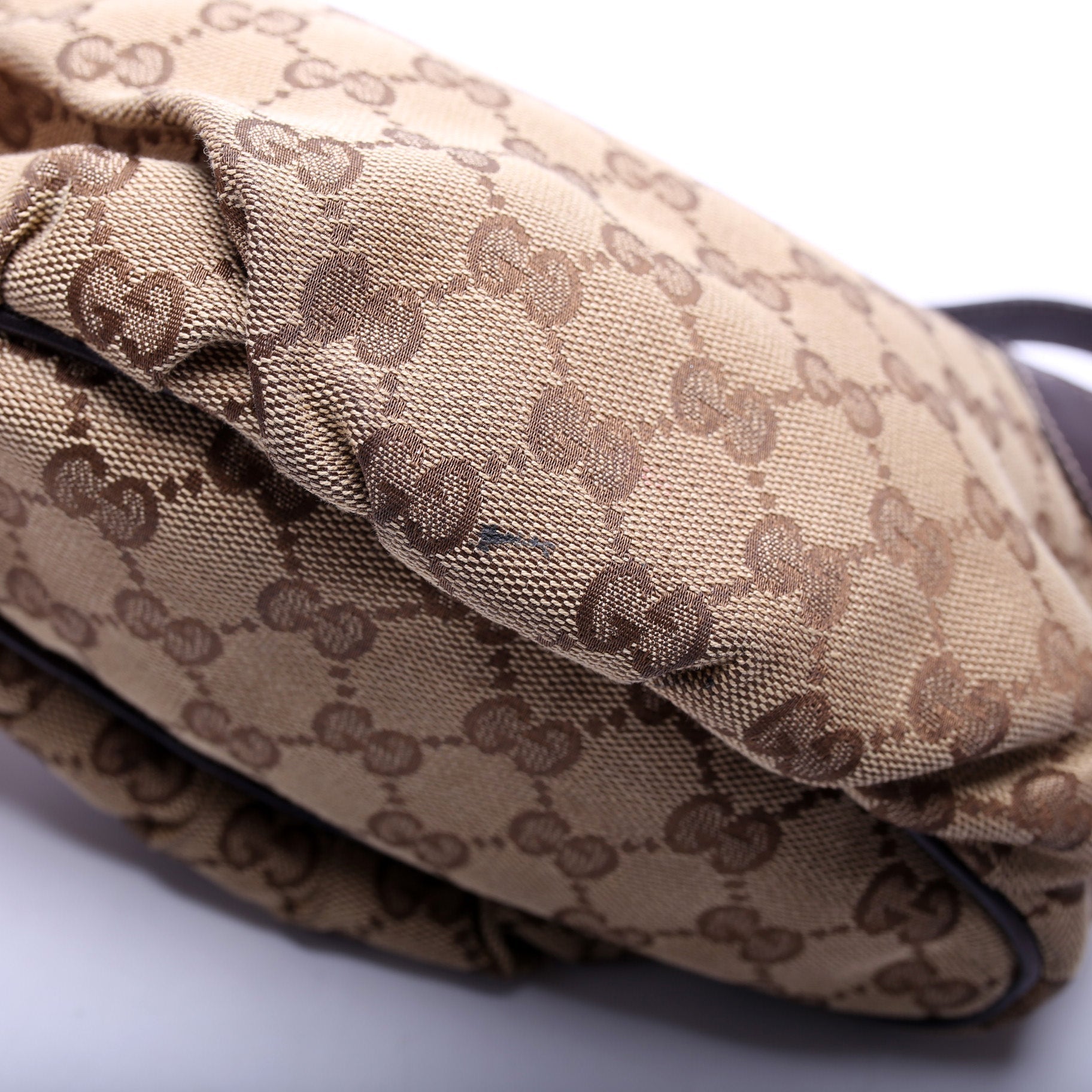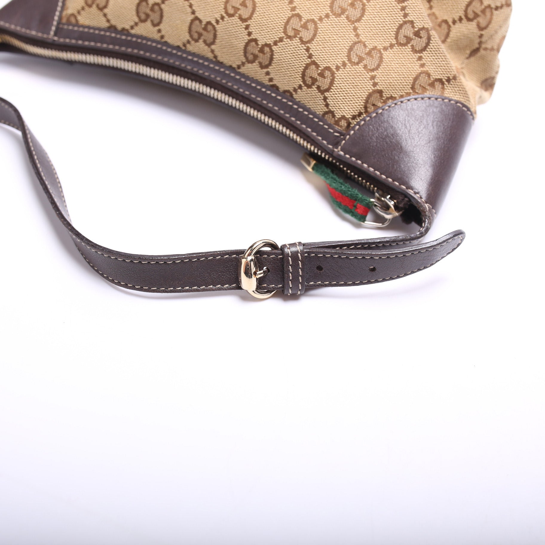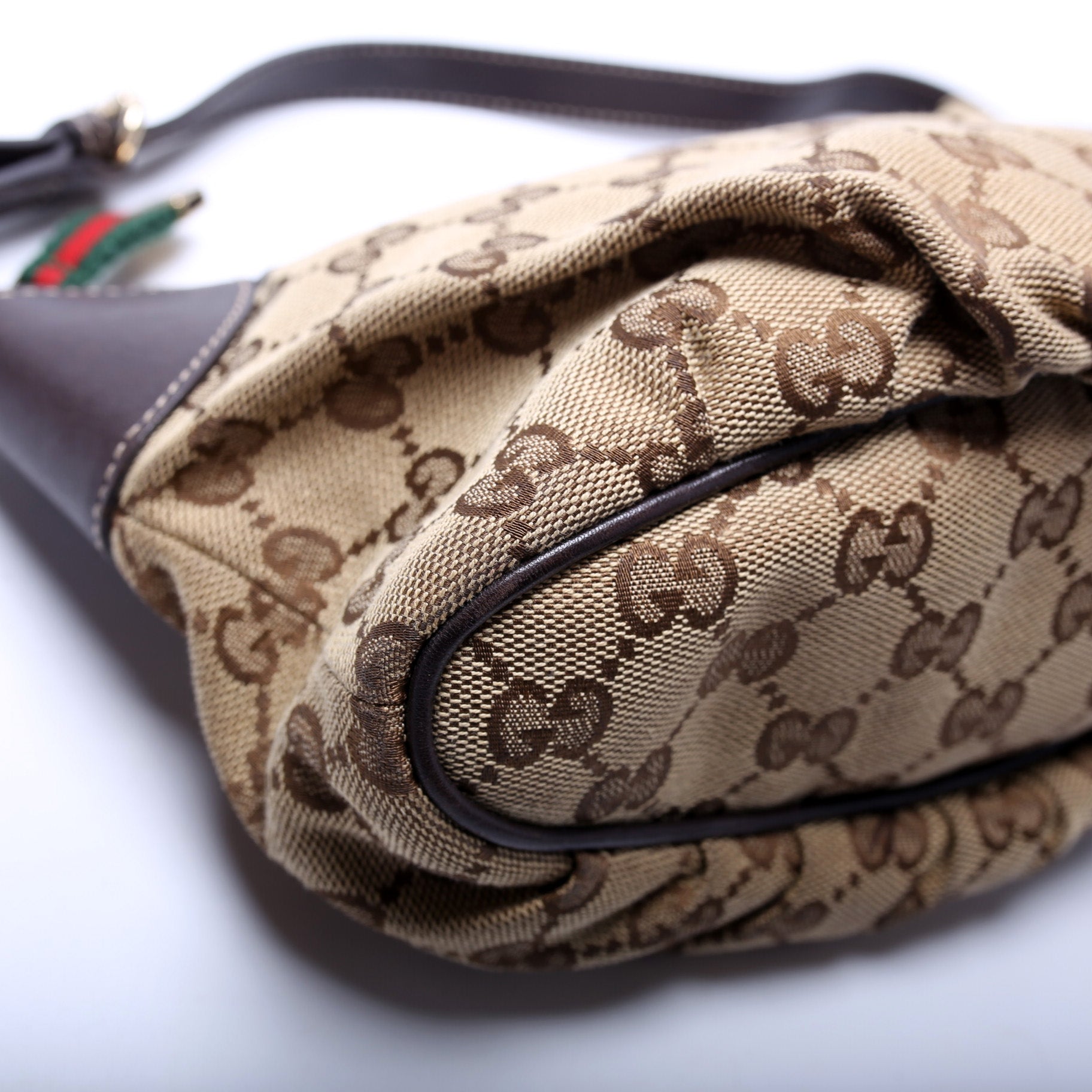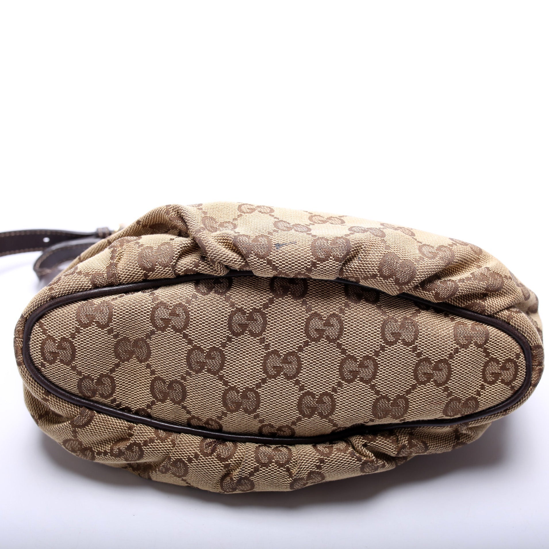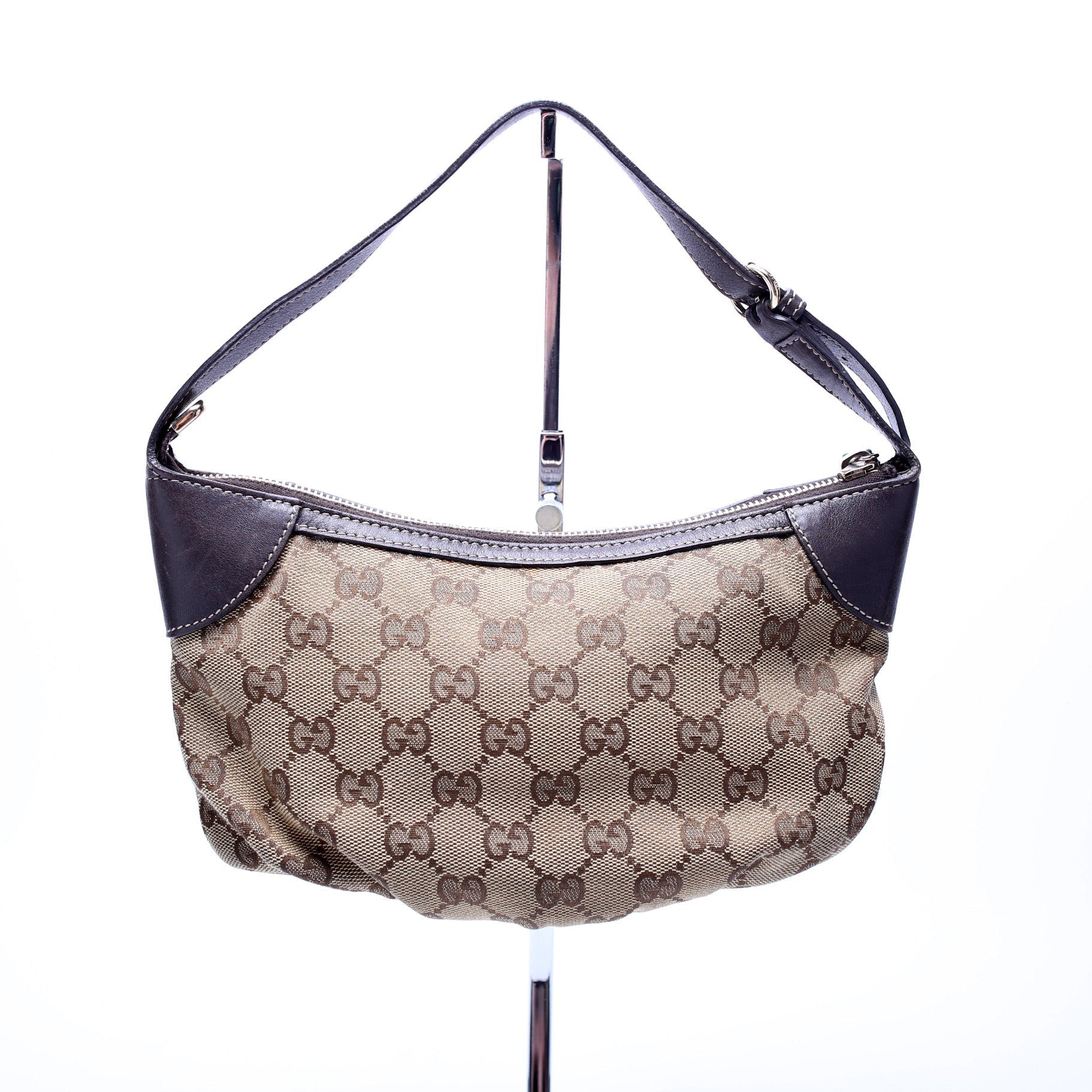 This Gucci GG Canvas Sherry Line Pochetteis eye catching bag. The exterior is in the classic Gucci GG canvas.