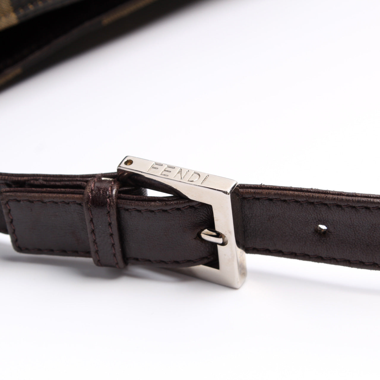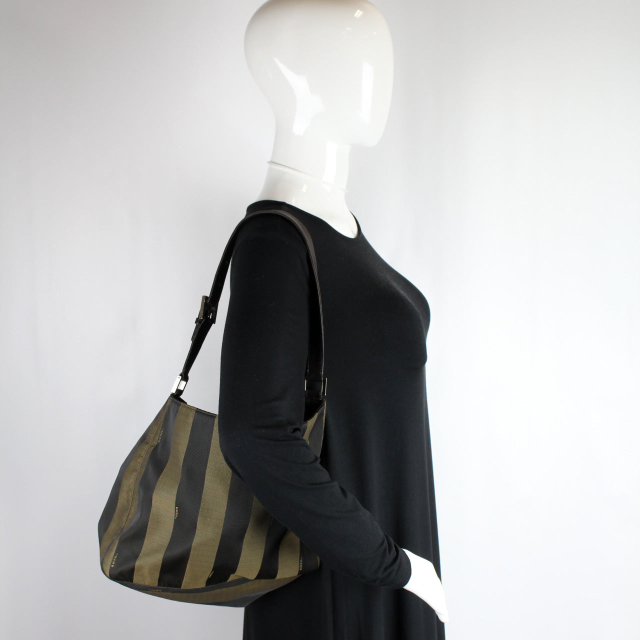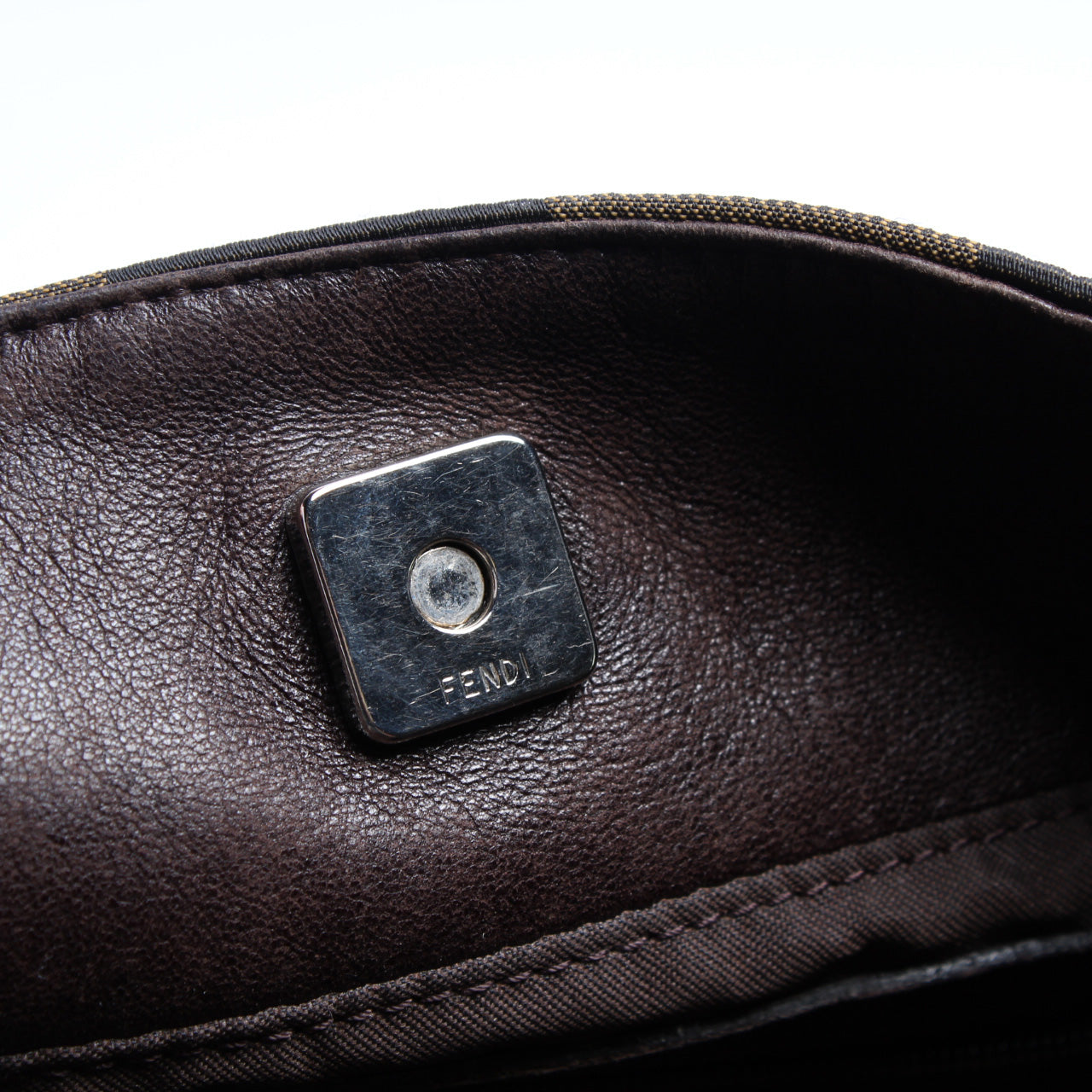 This Fendi Hobois eye catching bag. The exterior is in the classic Fendi Pequin canvas.