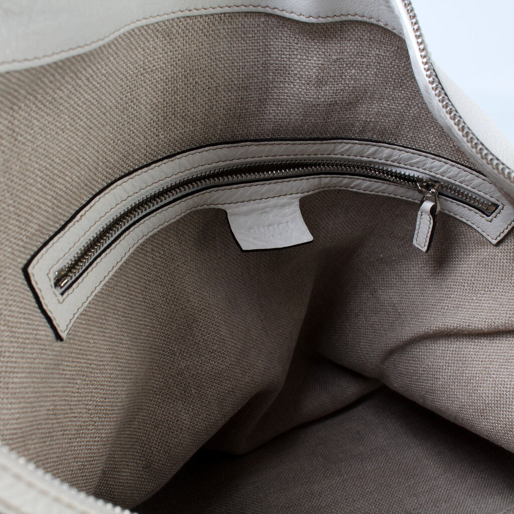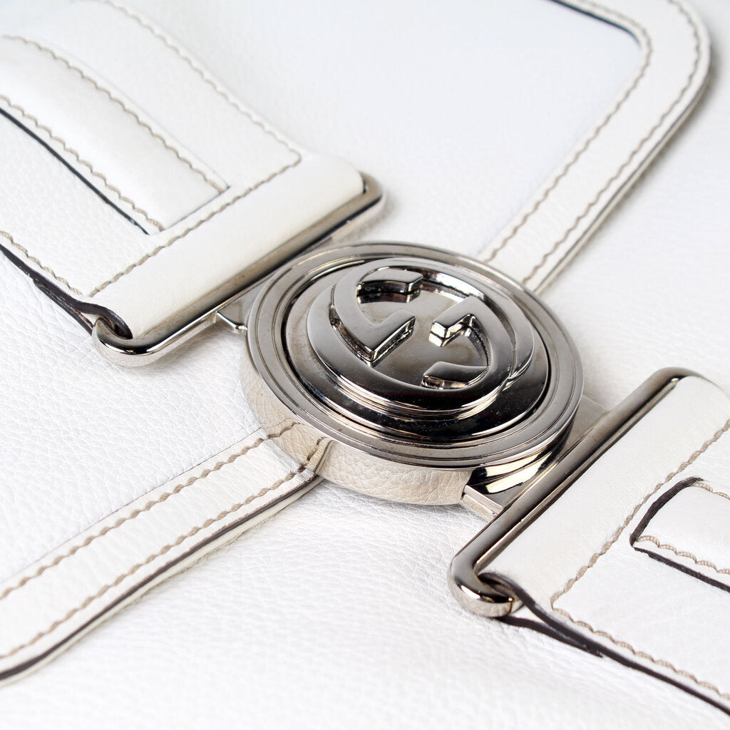 Exterior: The exterior leather shows some light stains and the corners show minimal wear as pictured. The exterior features one GG lock closure pocket.