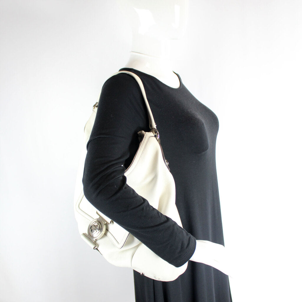 This Gucci GG Coin Hobois eye catching bag. The exterior is in the Gucci pebbled leather.