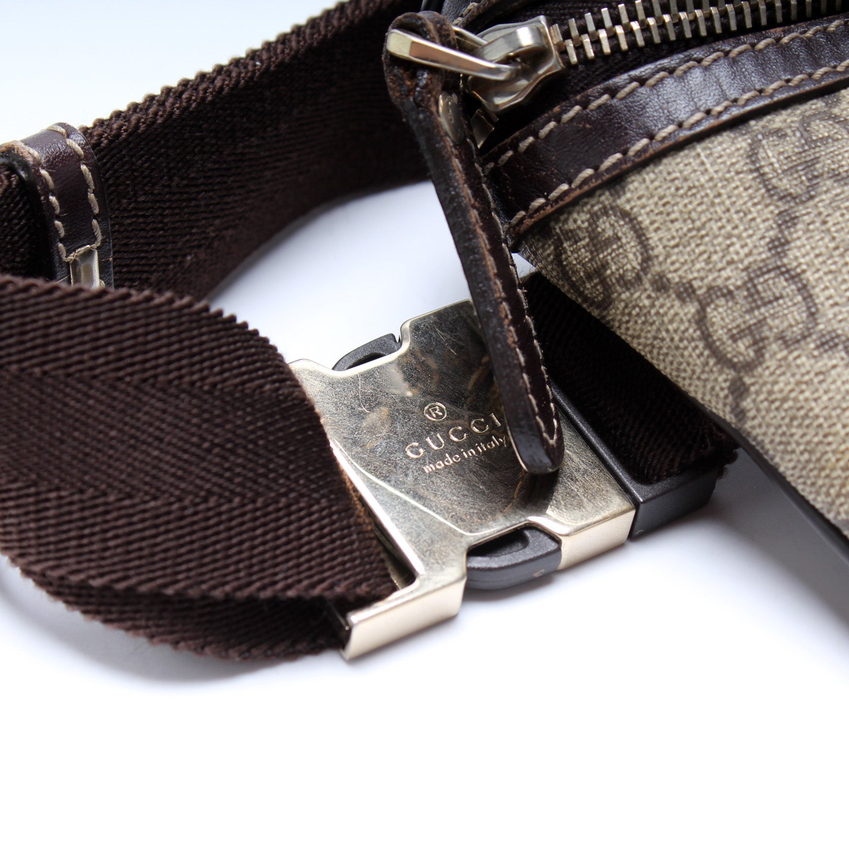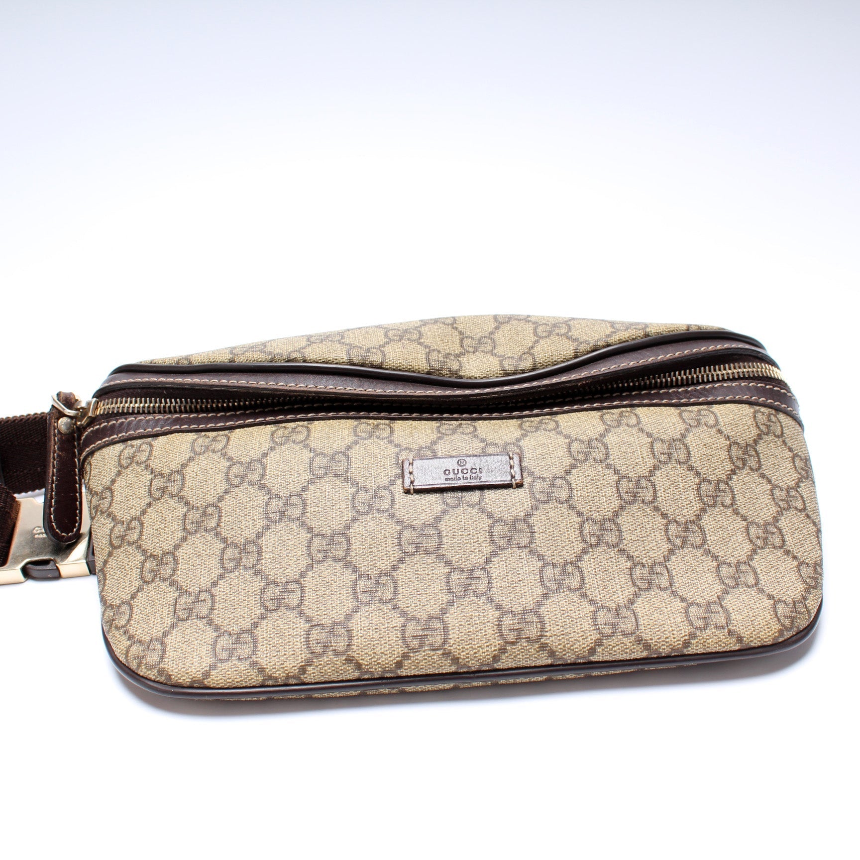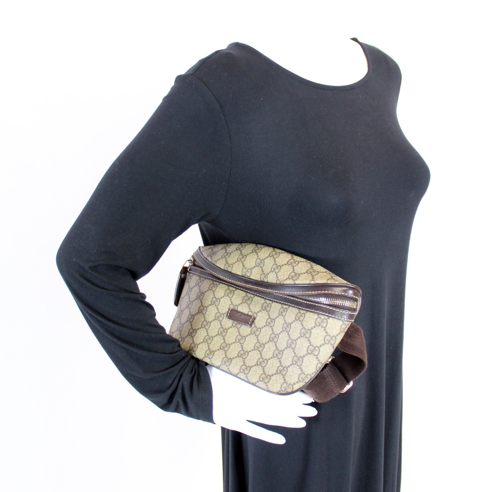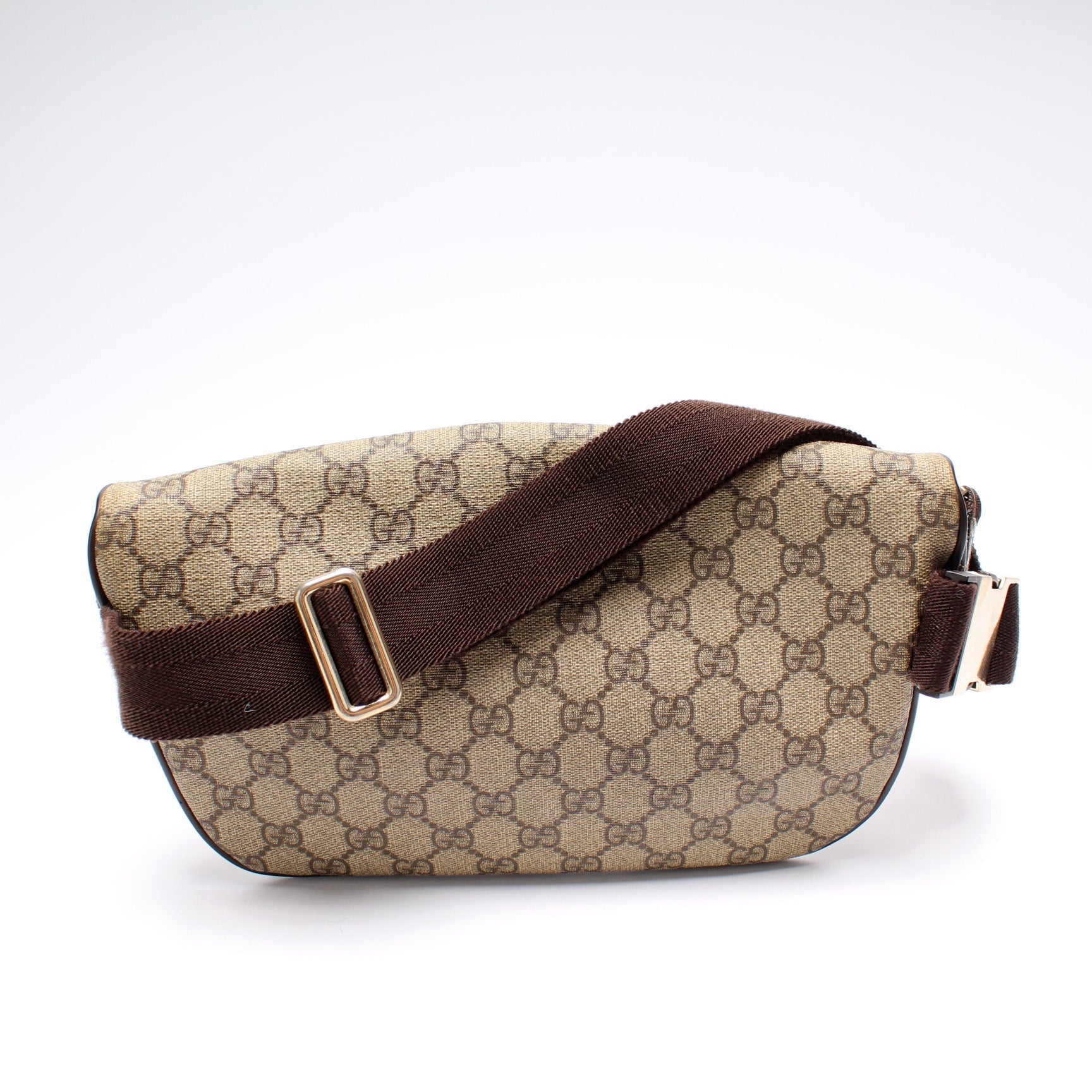This Gucci GG Supreme Belt Bag is d 100% . The exterior is in the classic Gucci GG Supreme coated canvas.