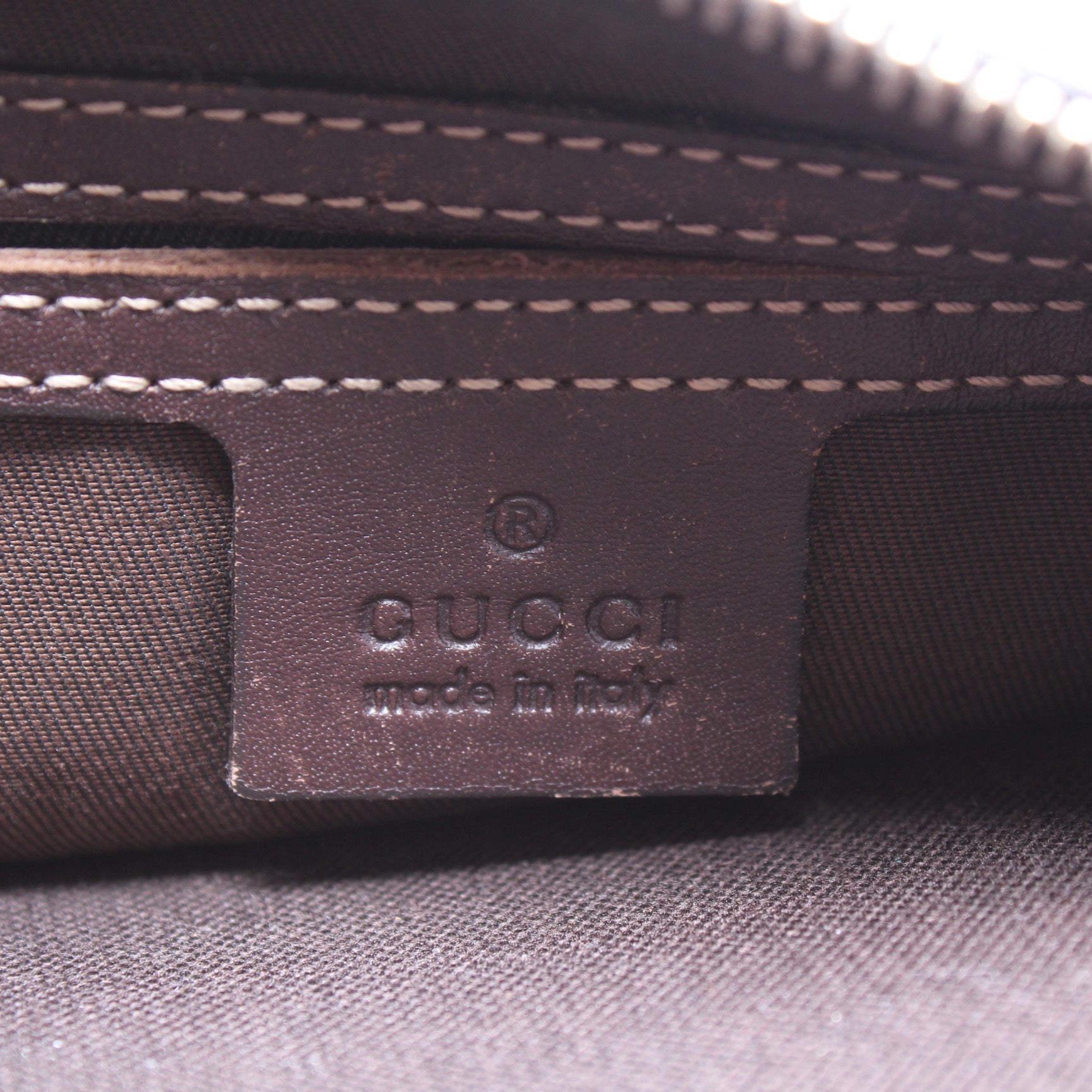 Hardware: The zipper operates properly. The zipper pull shows minor wear and the hardware shows minor discoloration.