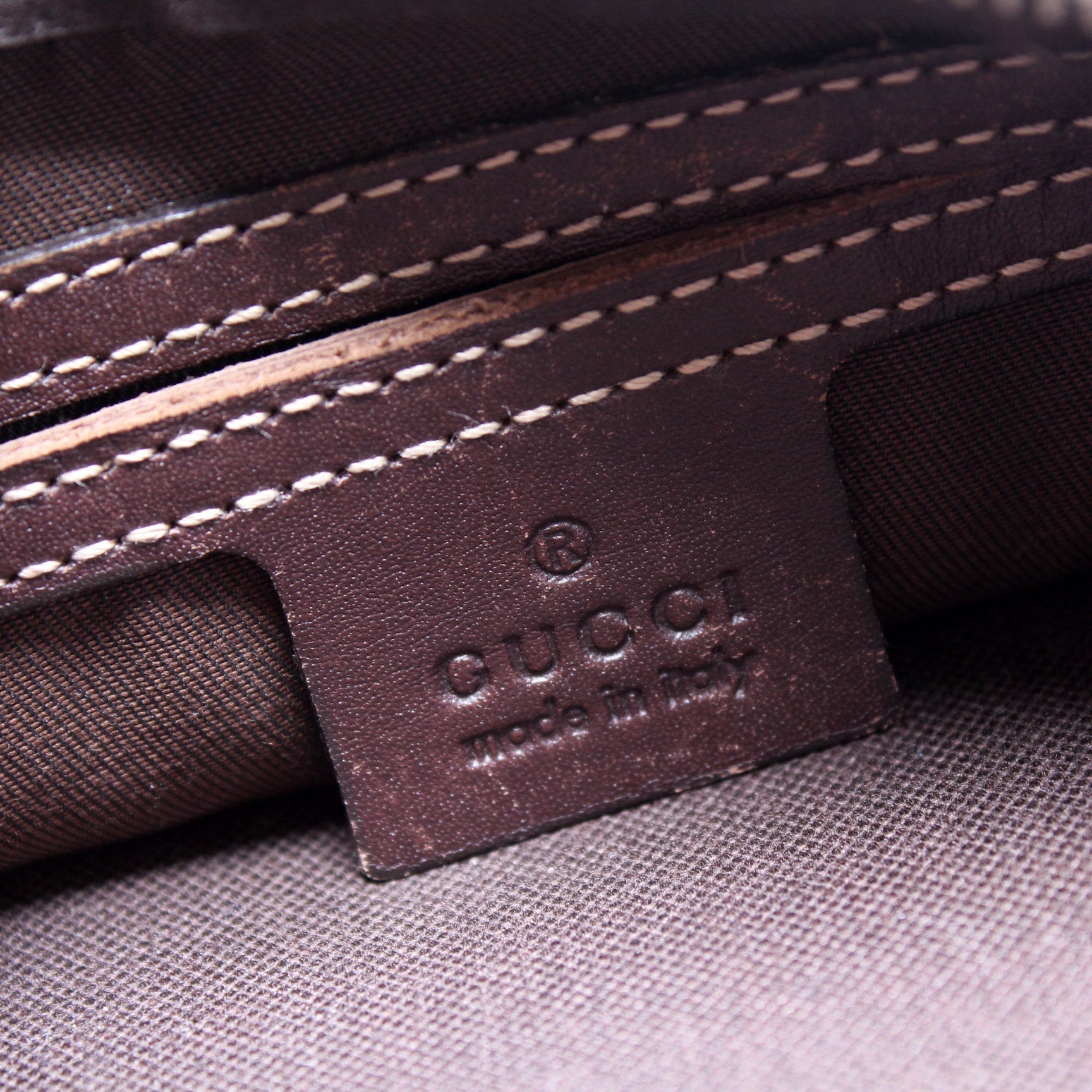 Exterior: The exterior is free from any rips or cracks. The leather trim shows minor rubbing throughout.