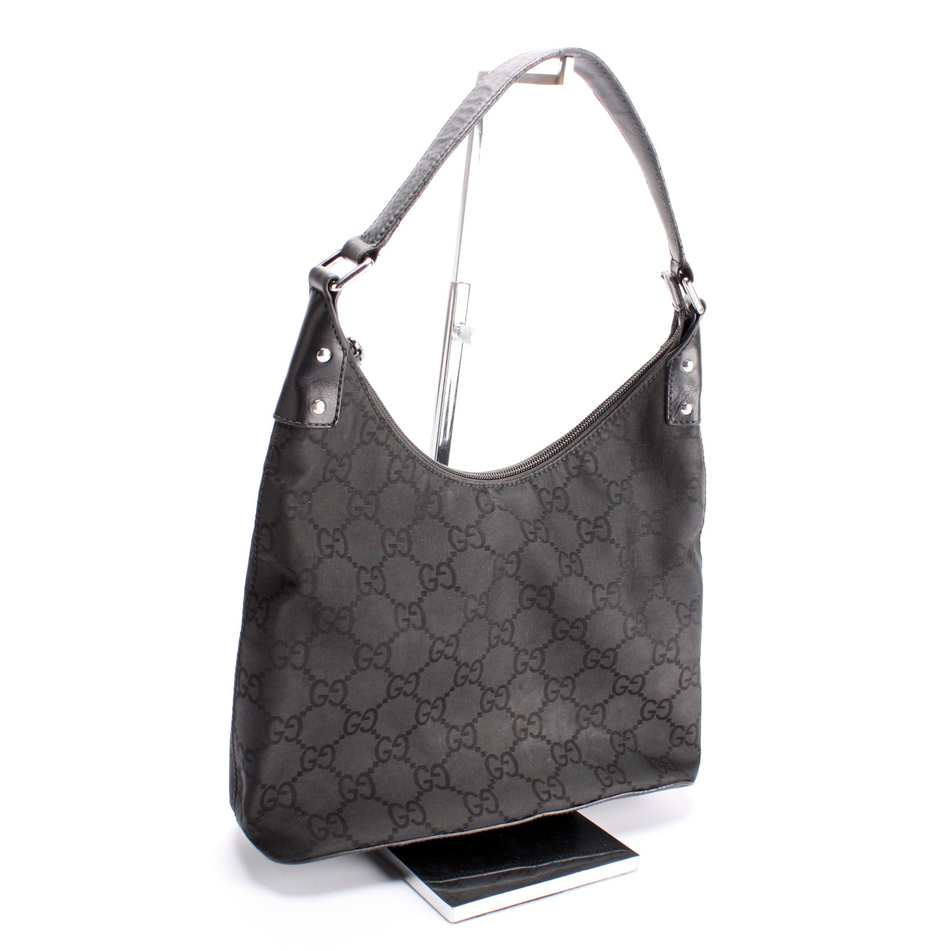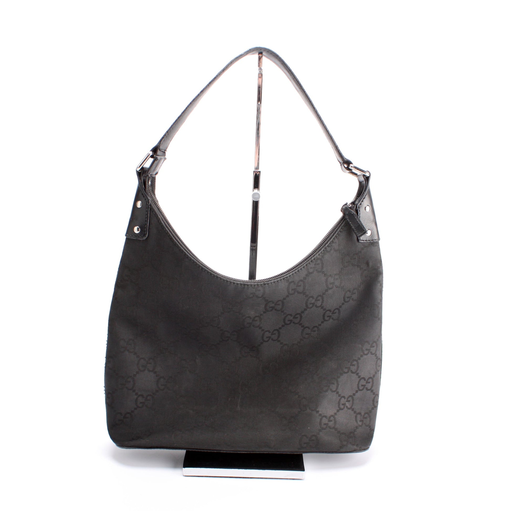 This Gucci GG Nylon Shoulder Bagis eye catching bag. The exterior is in the classic Gucci GG canvas.