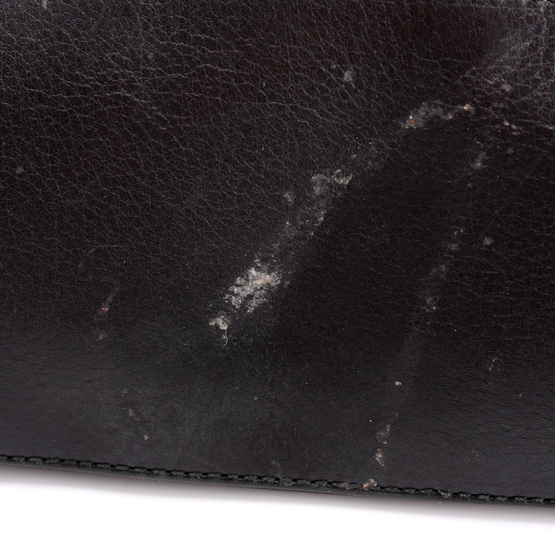 Exterior: The exterior canvas is free of any rips or cracks. The leather base shows wear on the corners and heavy scuffs throughout.