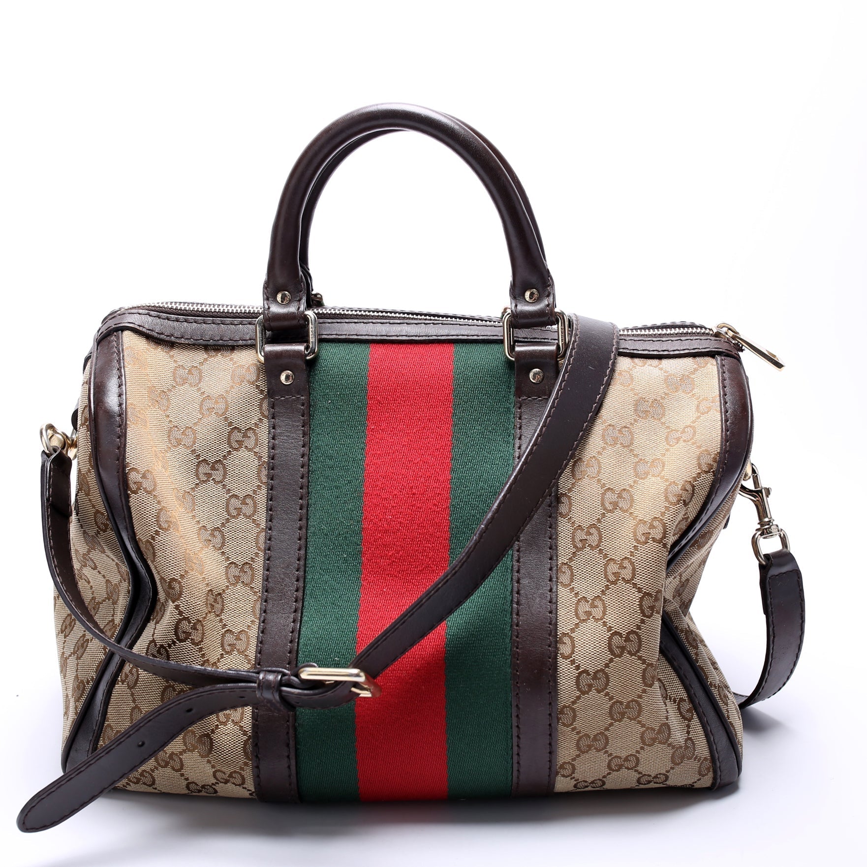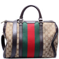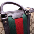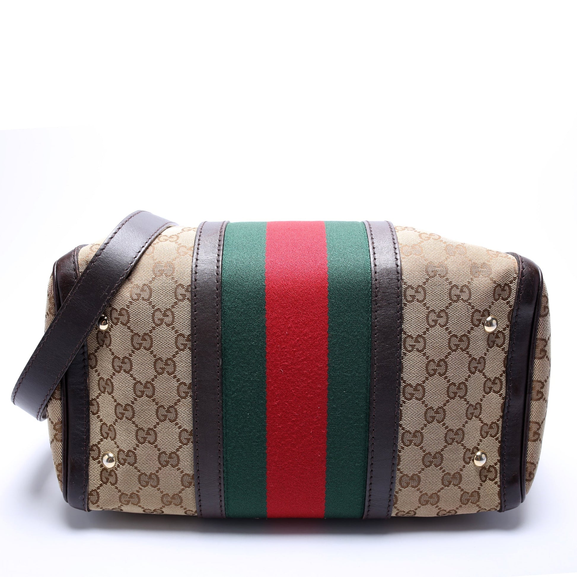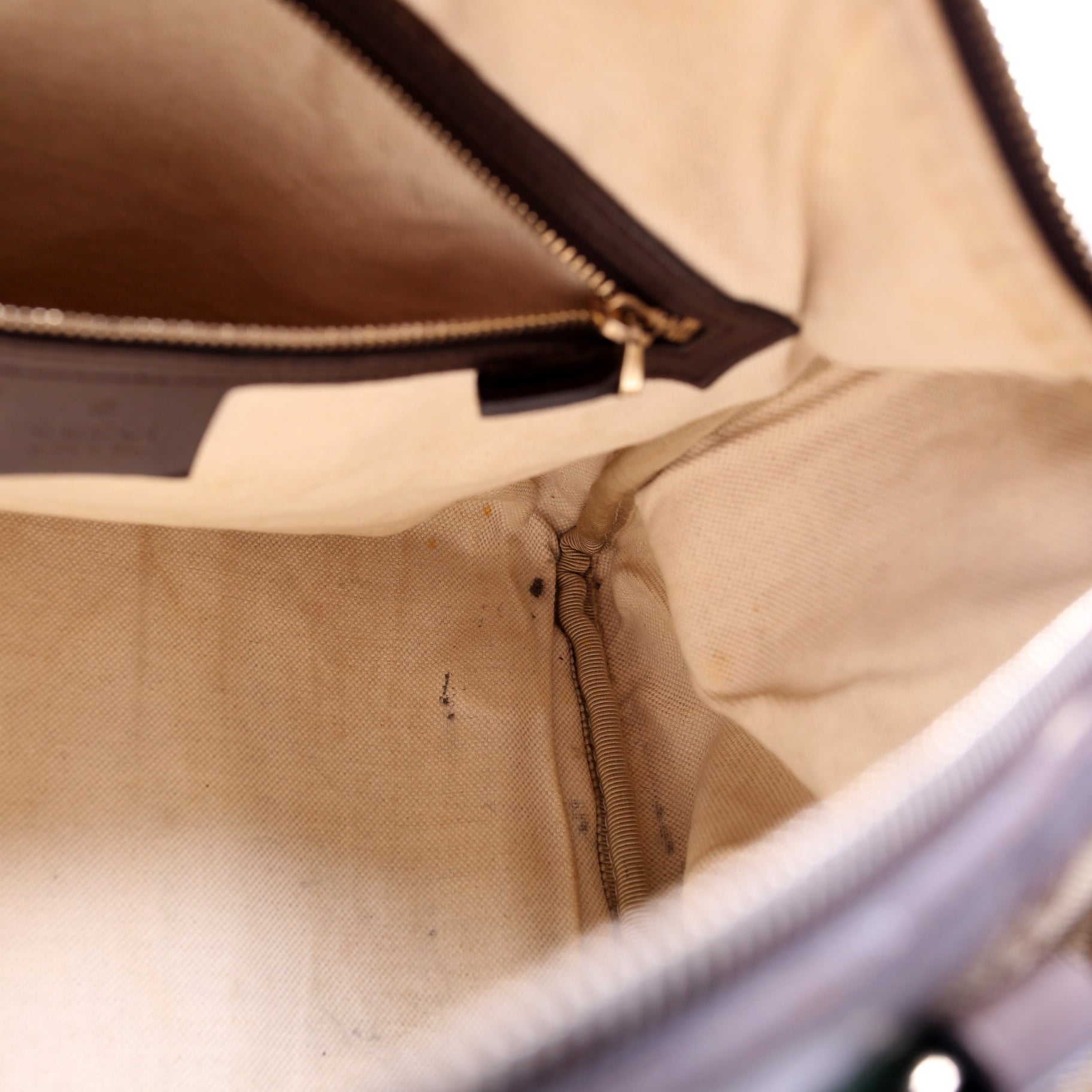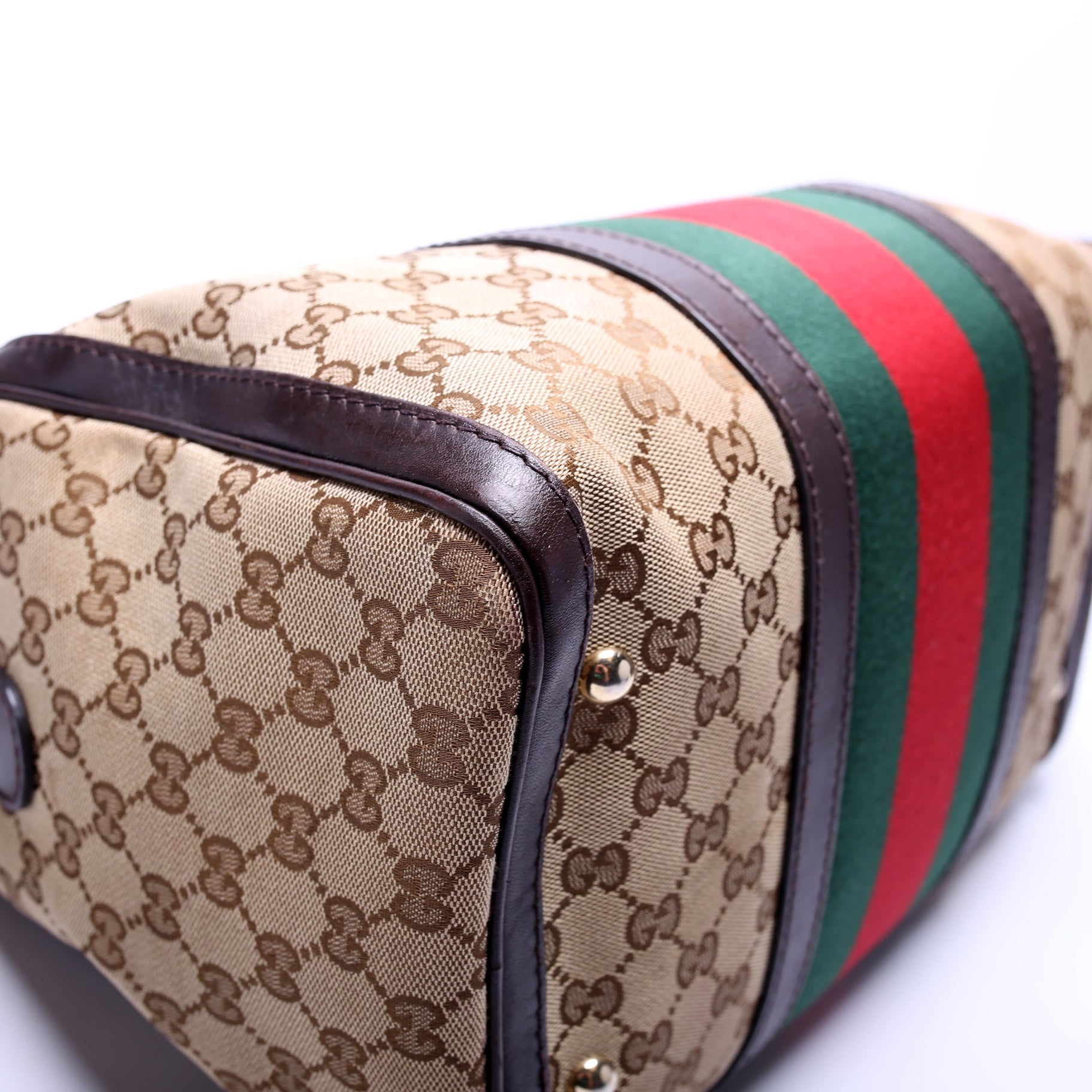 This Gucci Boston Bagis eye catching bag. The exterior is in the classic Gucci GG canvas.