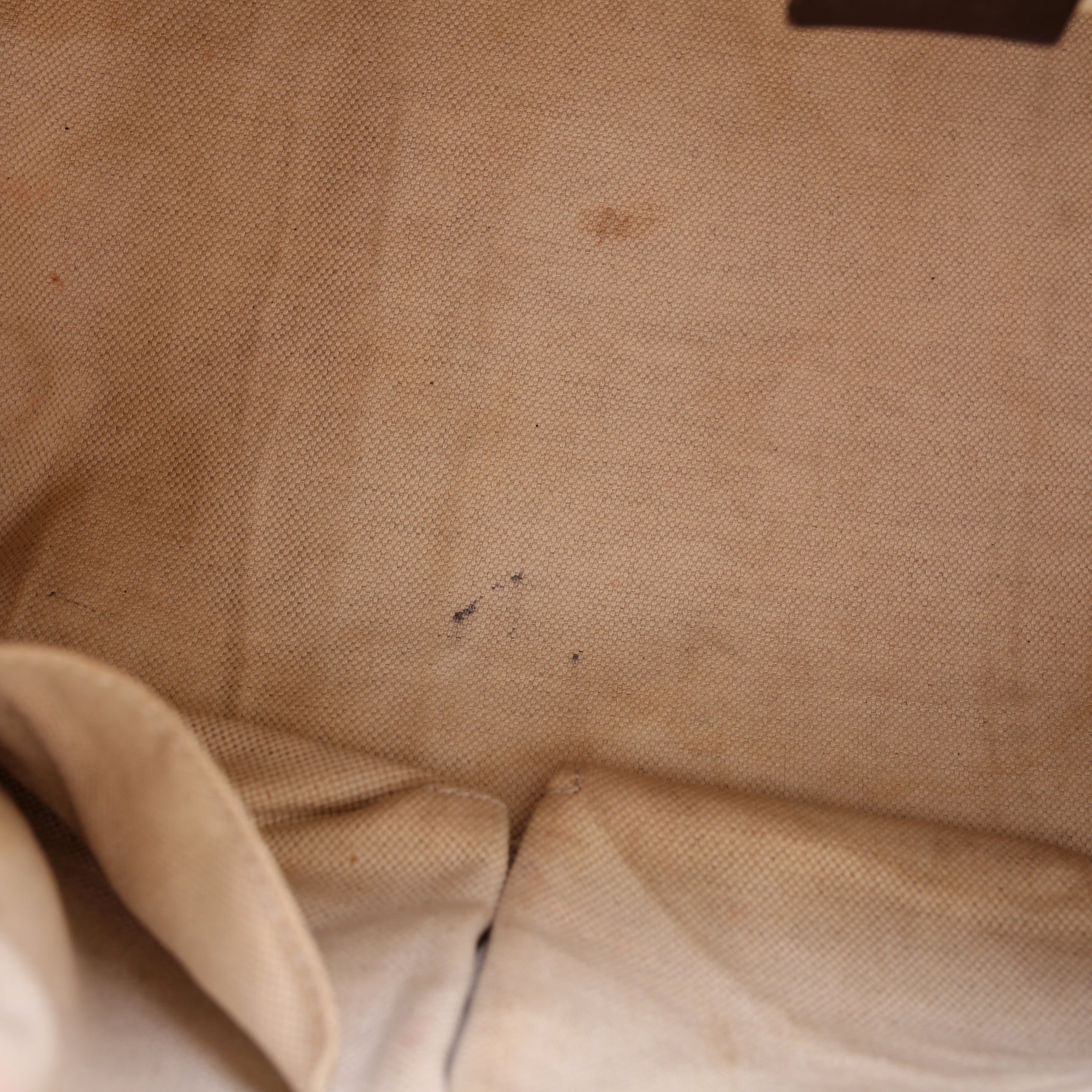 Exterior: The exterior canvas is free of any rips or tears. The leather corners show minor wear.