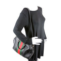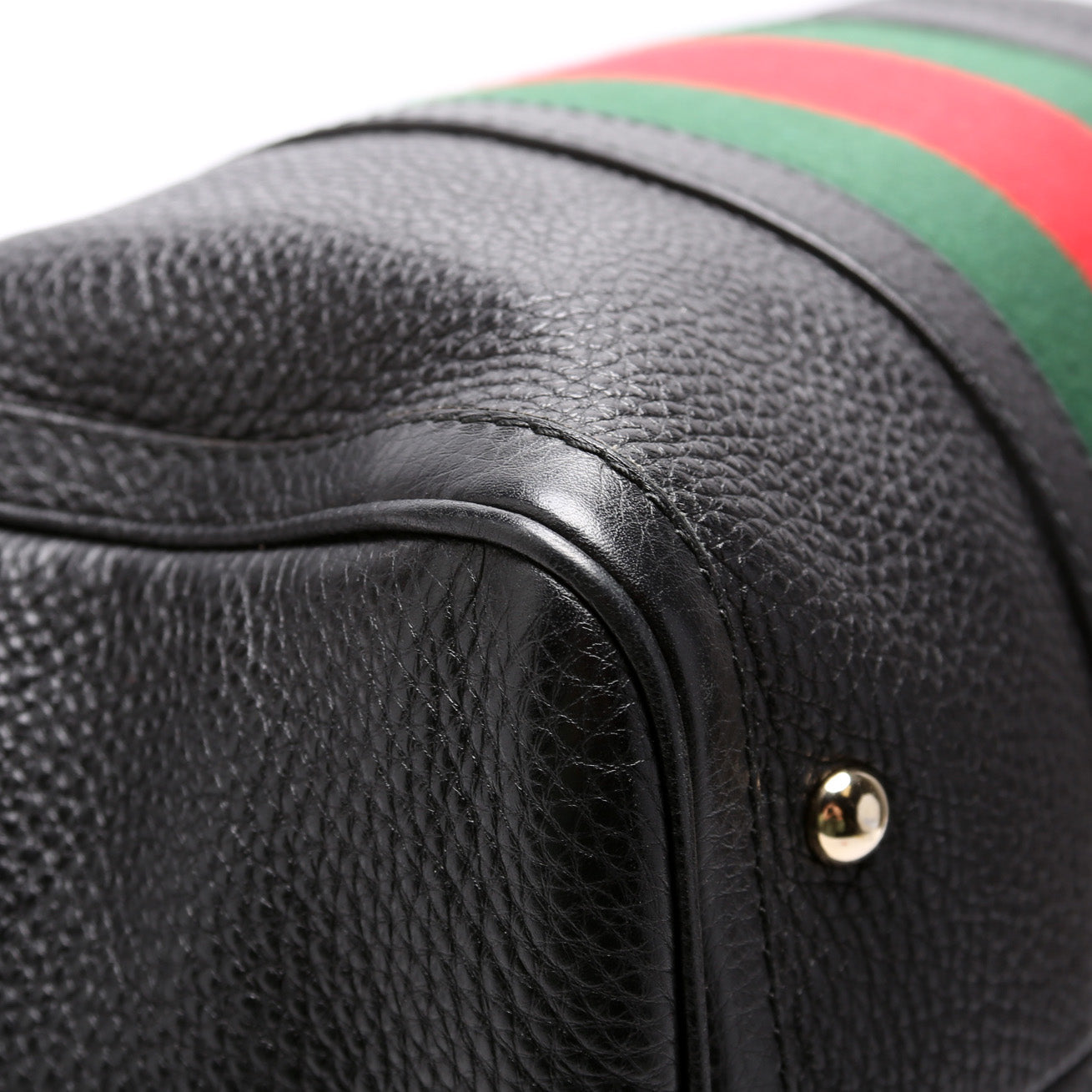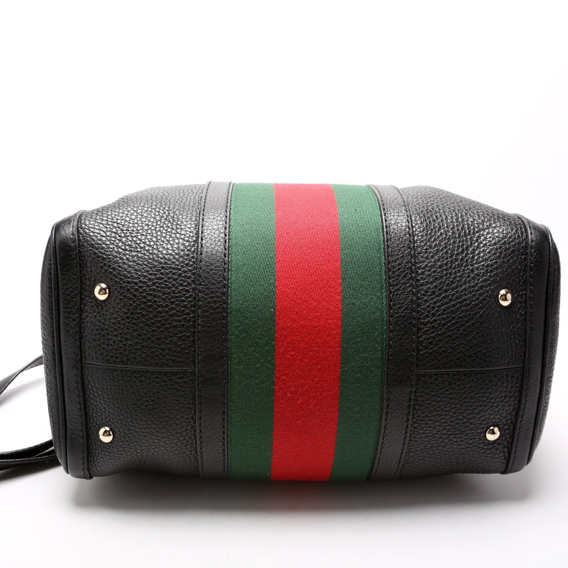 This Gucci Boston Bagis eye catching bag. The exterior is in the classic Gucci web leather.