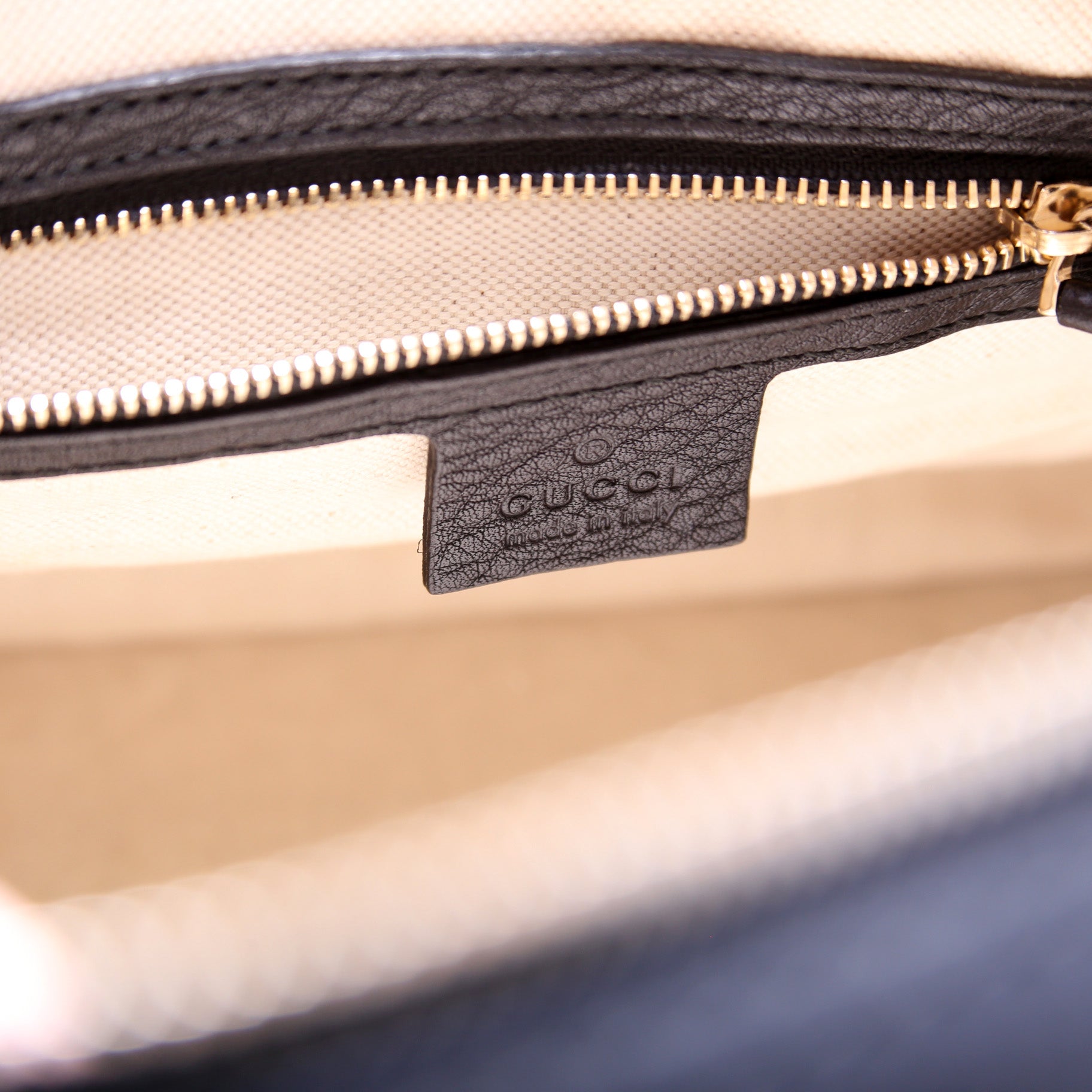 Interior: The interior is clean and free of rips or tears. There are very minor stains throughout. The interior features two open pockets and one zip closure pocket.