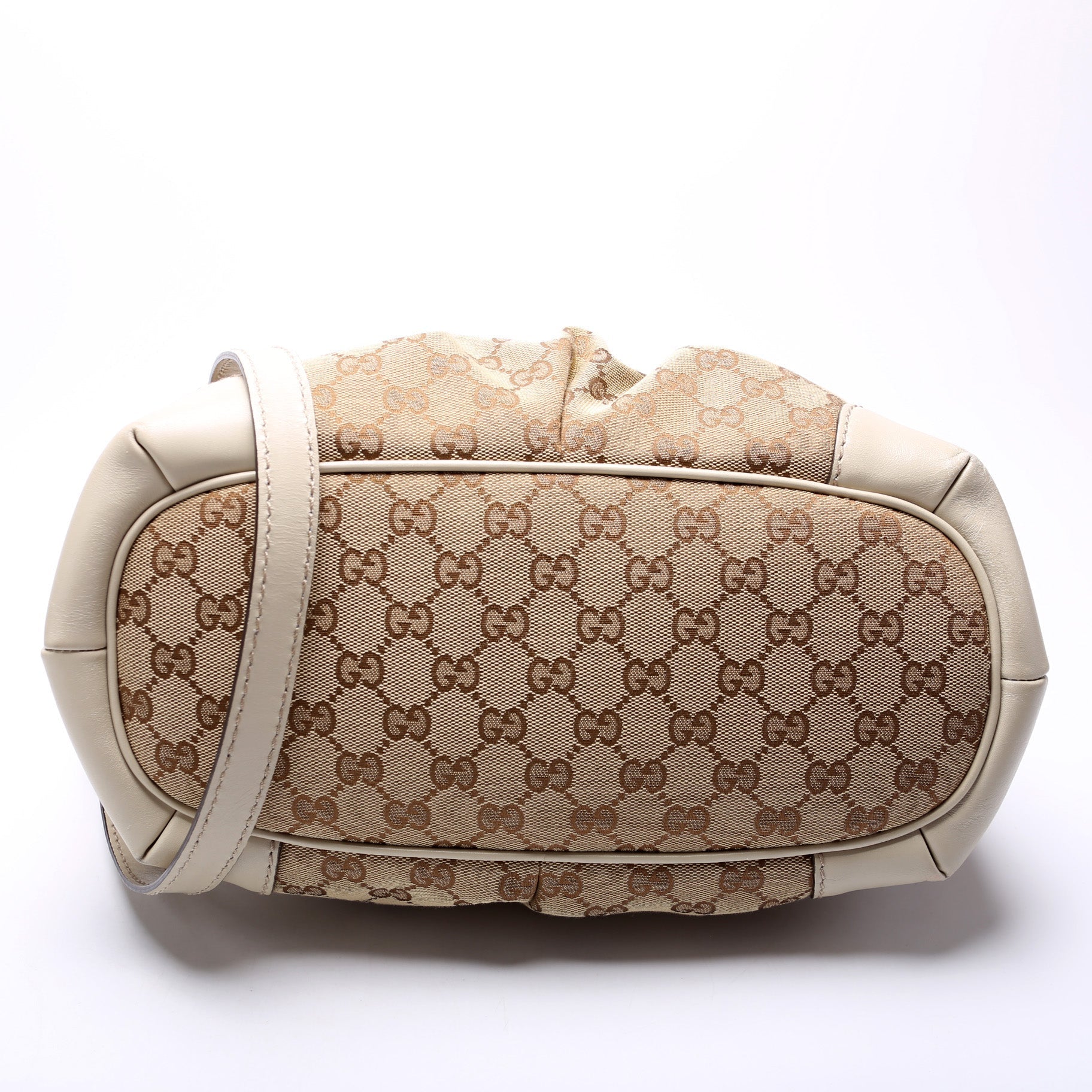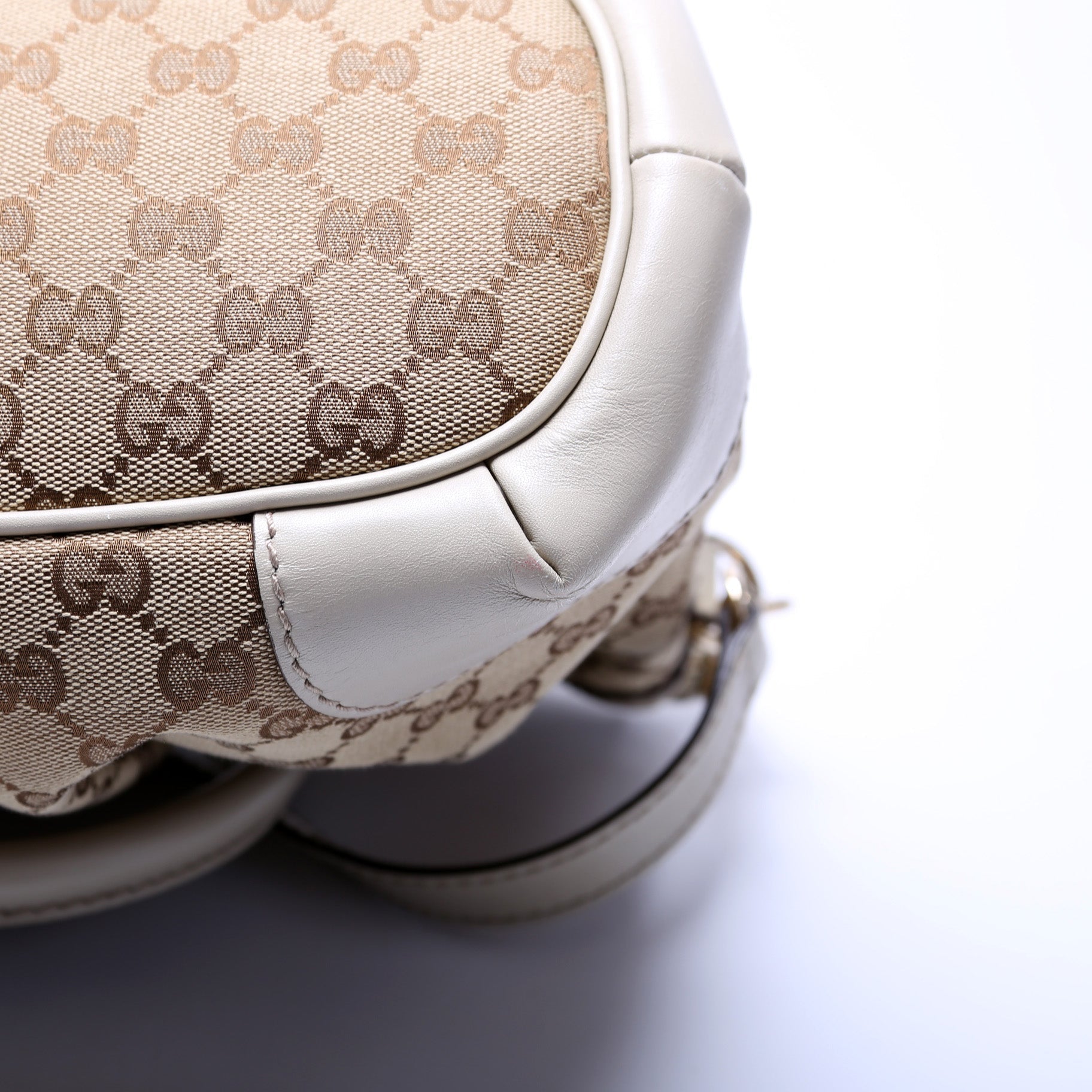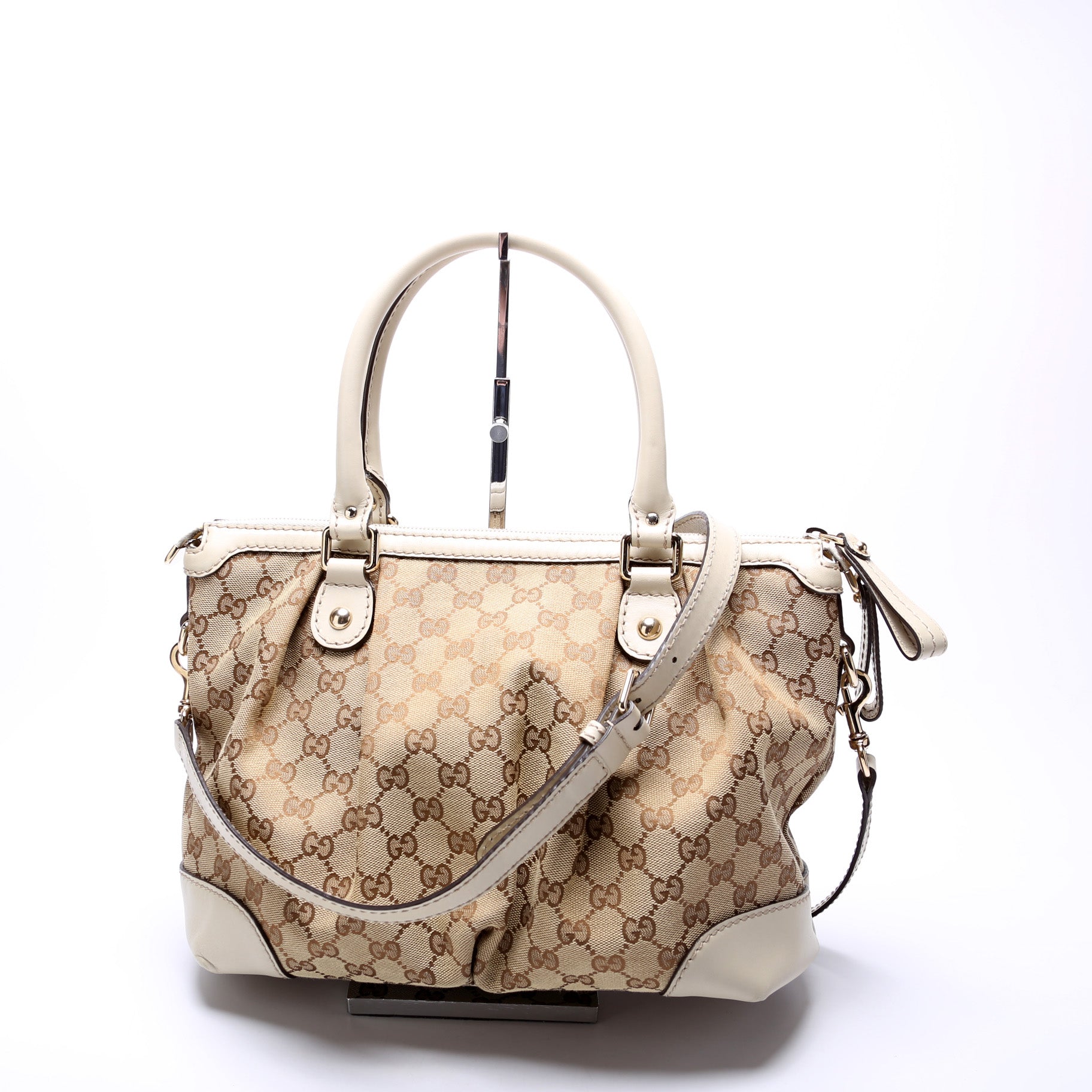 This Gucci GG Sukey Canvasis eye catching bag. The exterior is in the classic Gucci GG canvas.