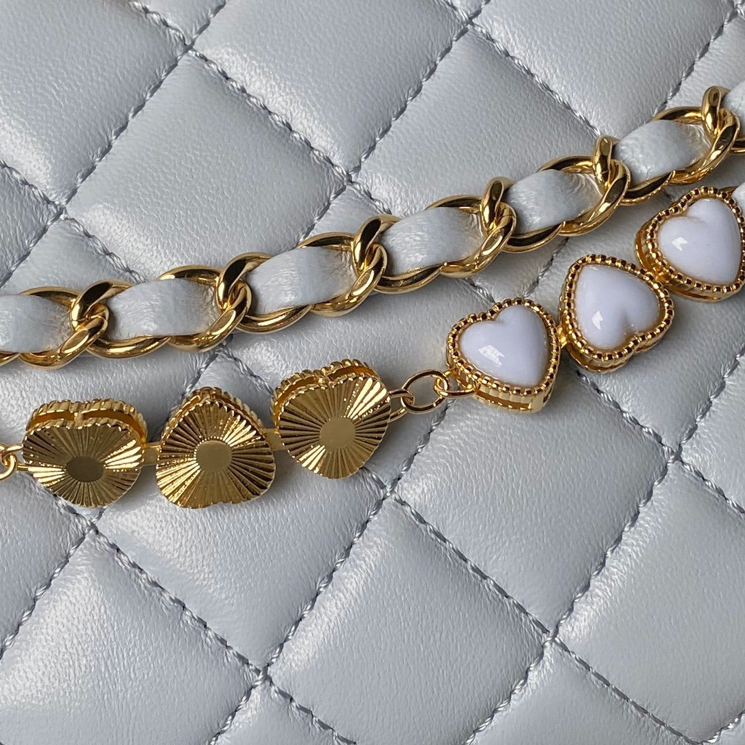 CHANEL 24p clutch with chain 19cm turquoise blue lambskin