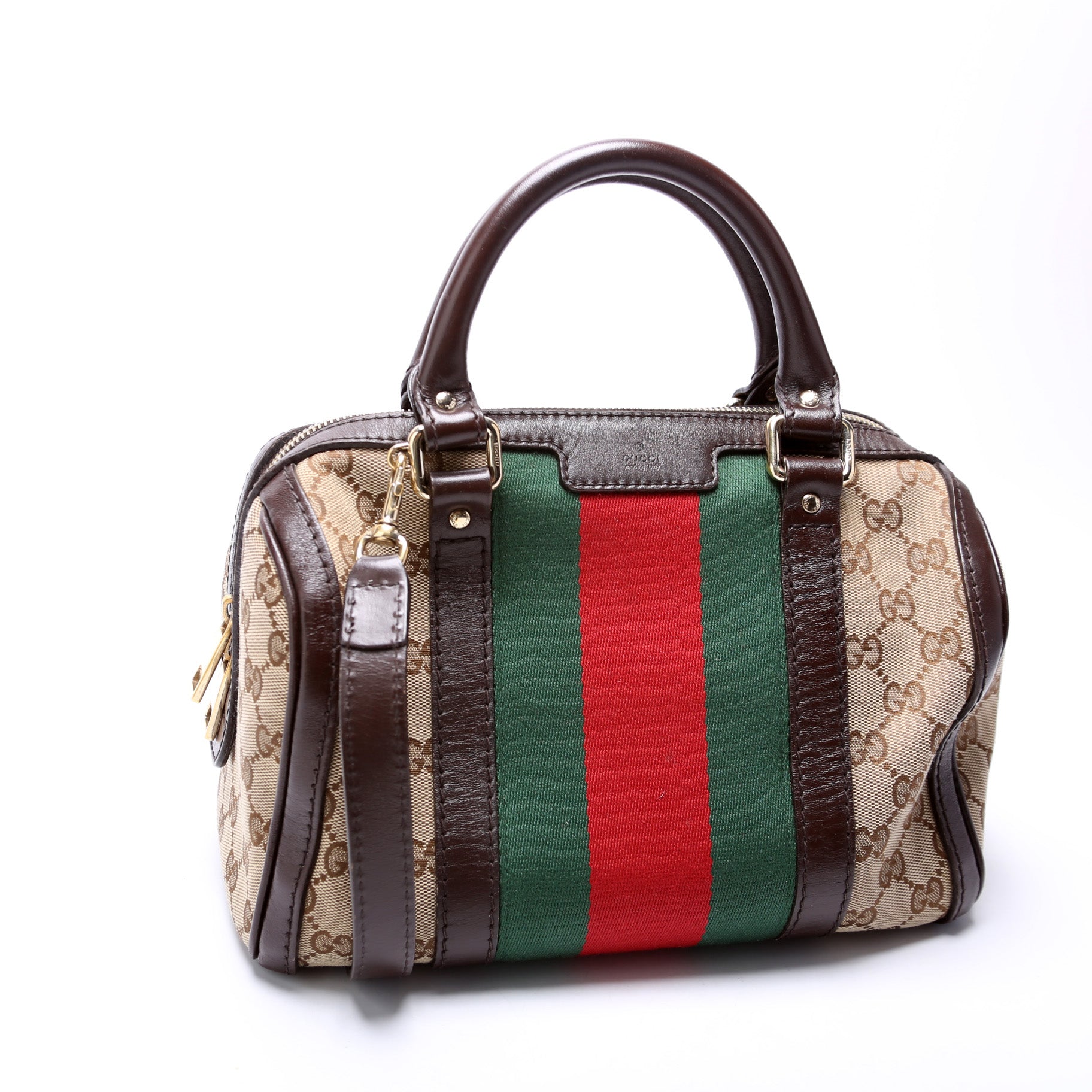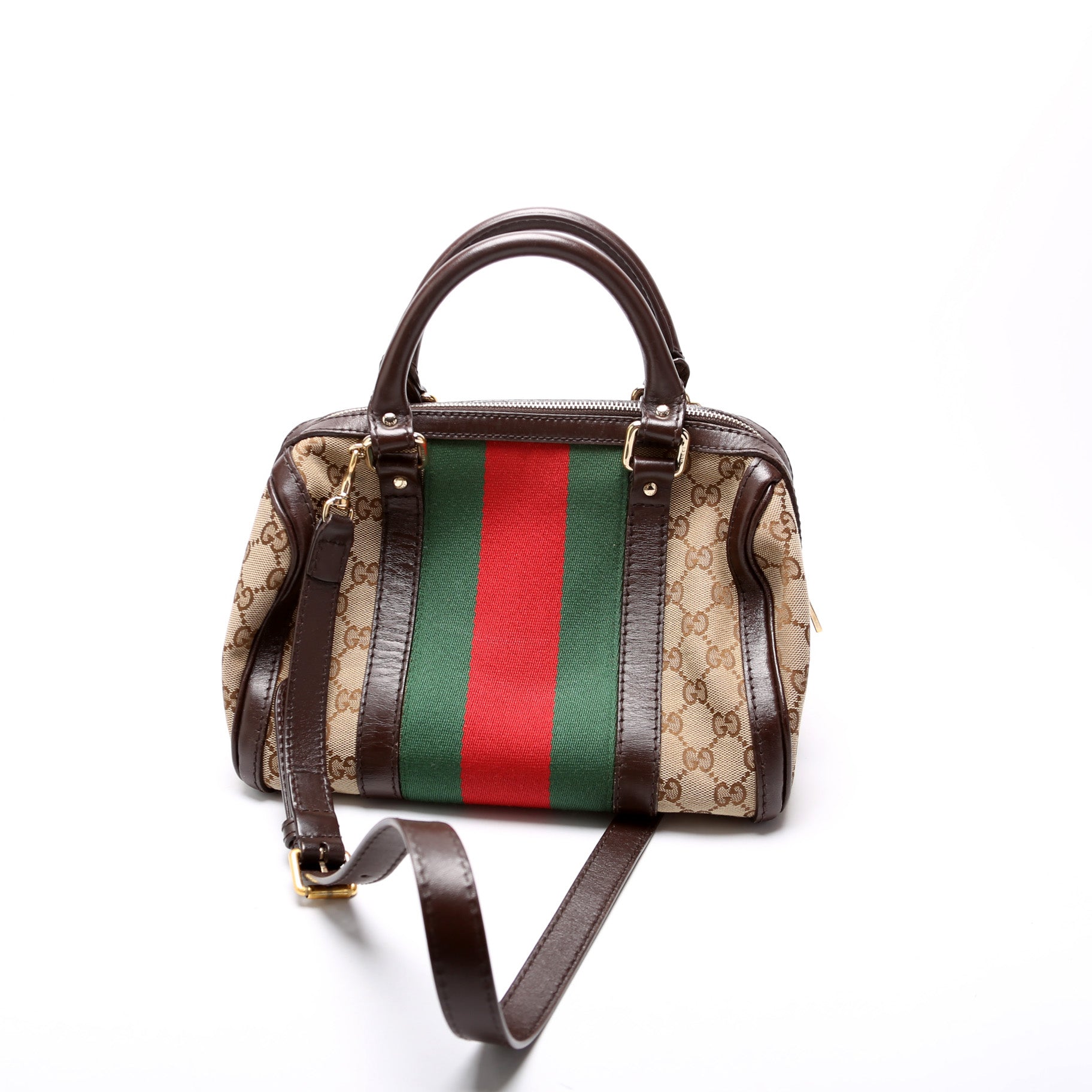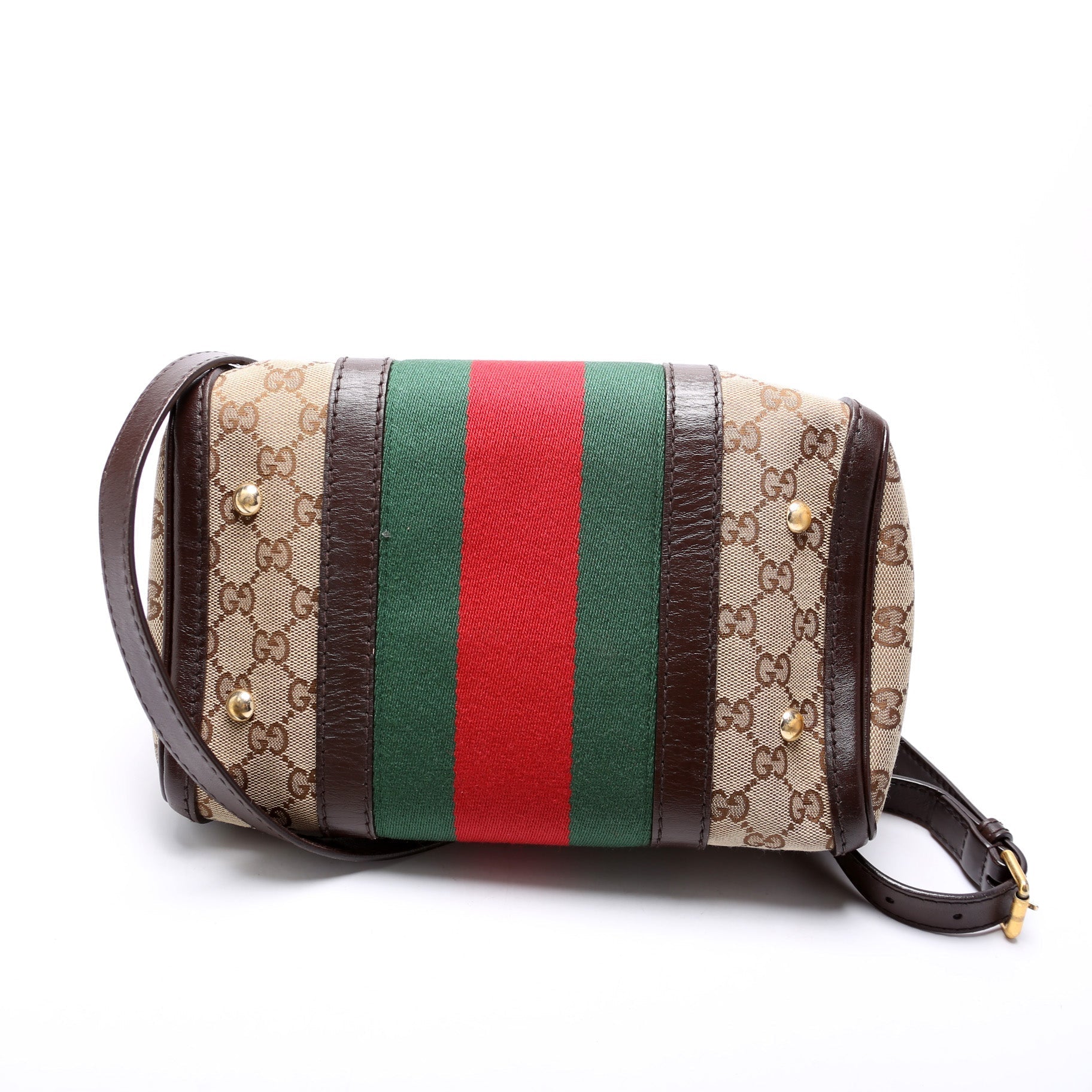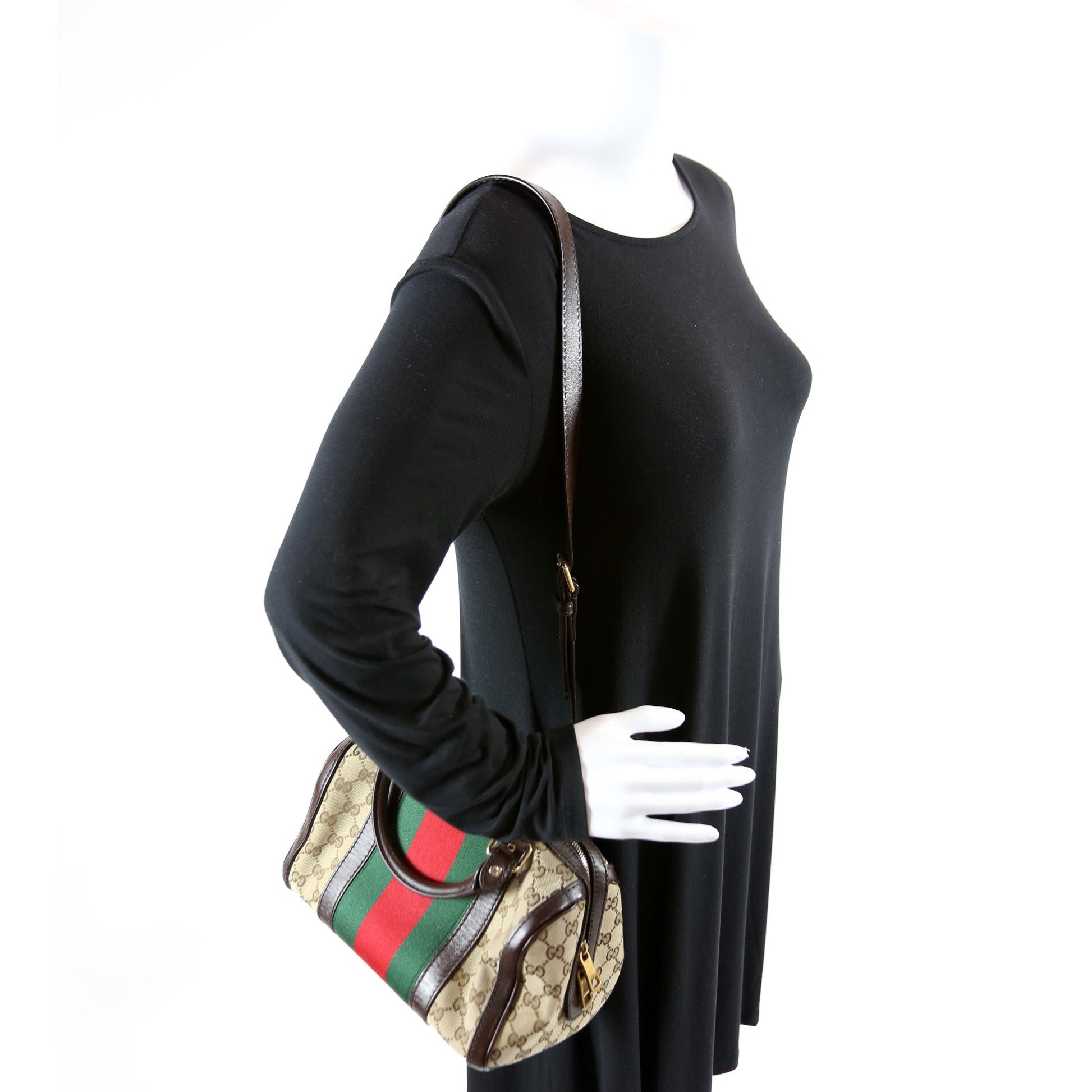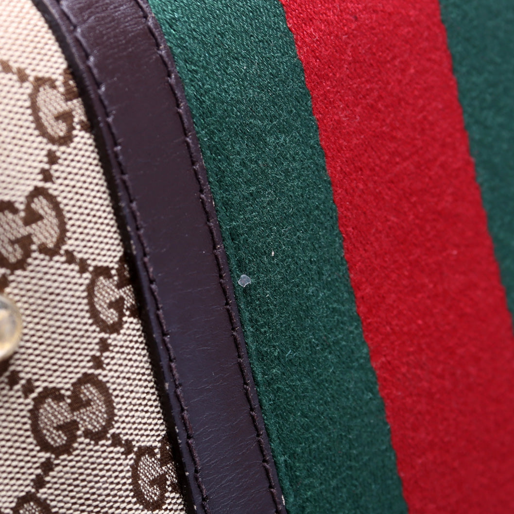 This Gucci GG Canvas Web Small Bostonis eye catching bag.