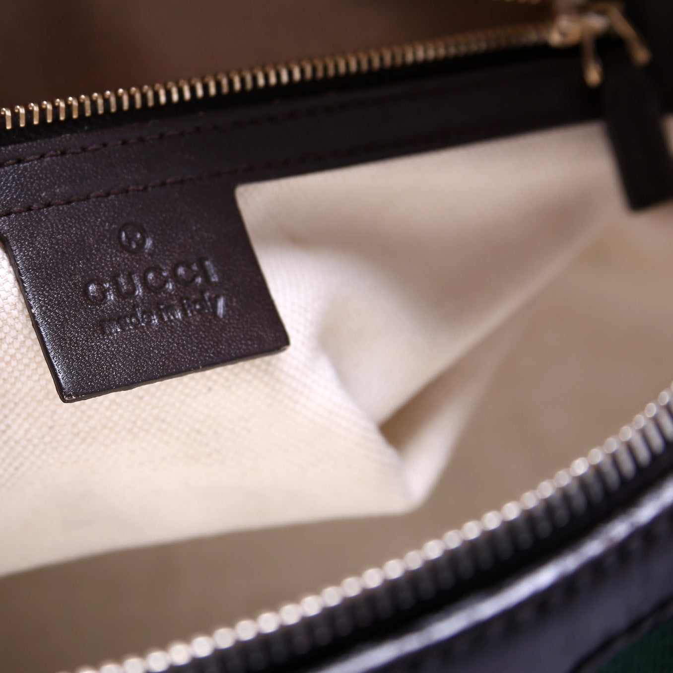 Interior: The interior is free from rips or tears, and features one zipper pocket and one open pockets.