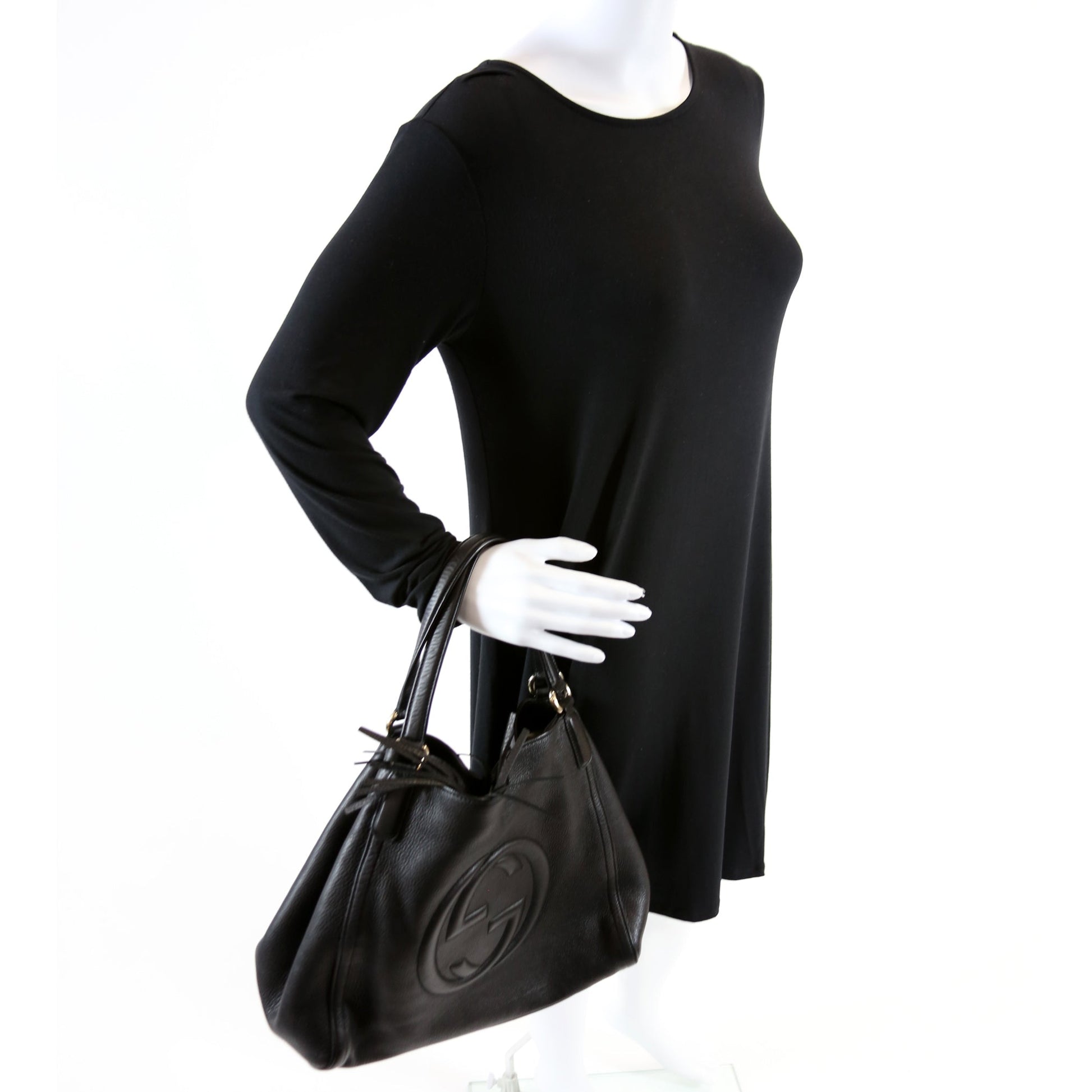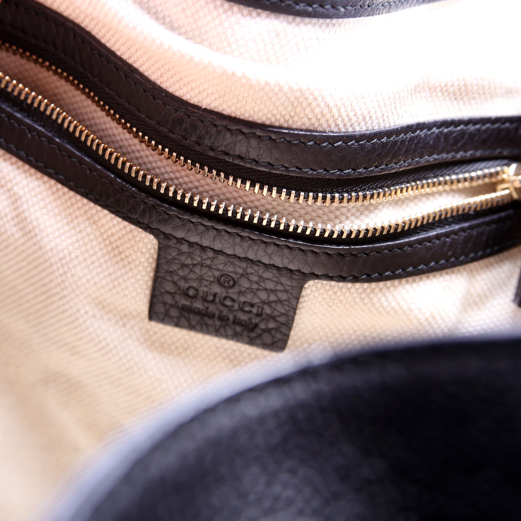 This Gucci Soho Medium Hobo is d 100% . The exterior is in the classic Gucci Soho pebbled leather.