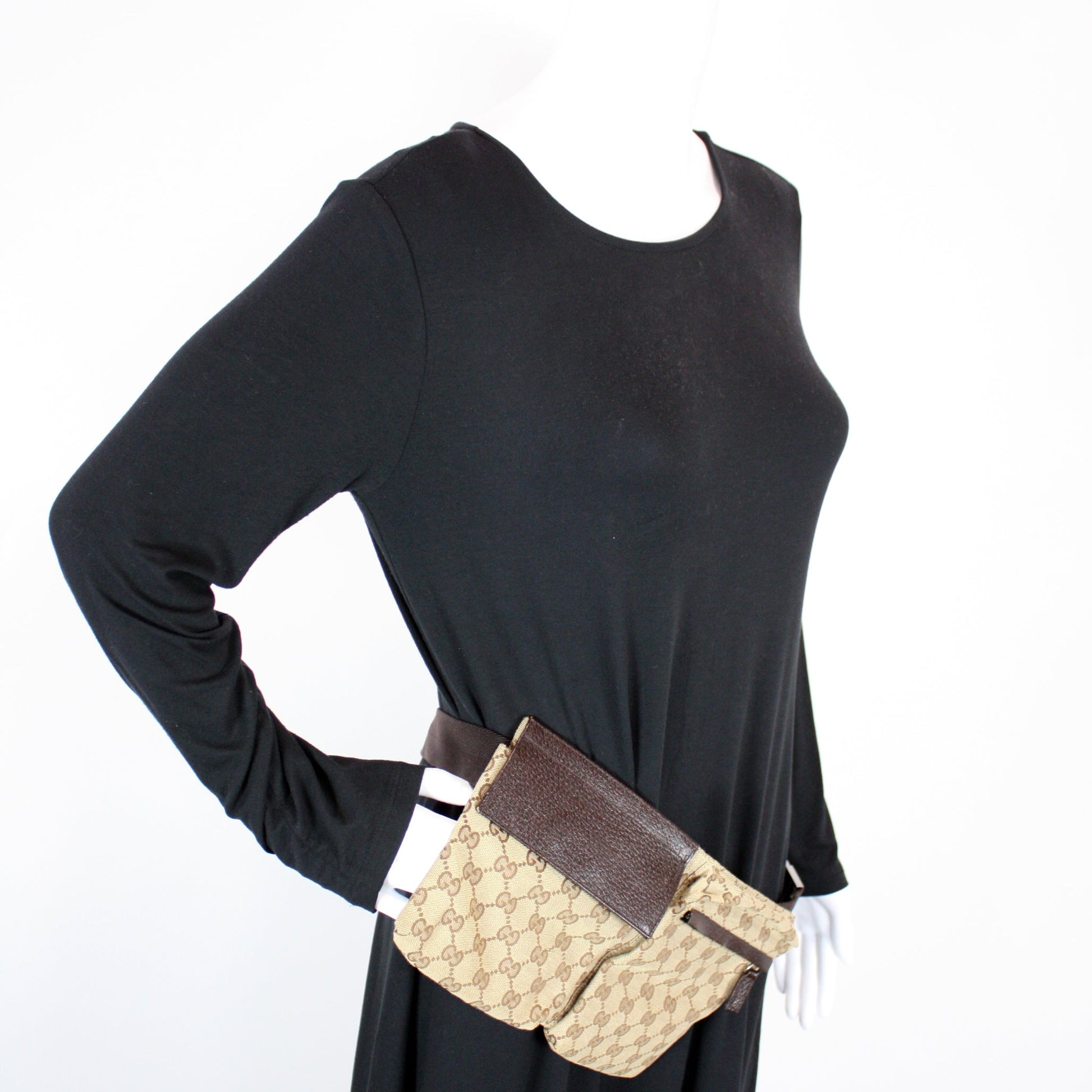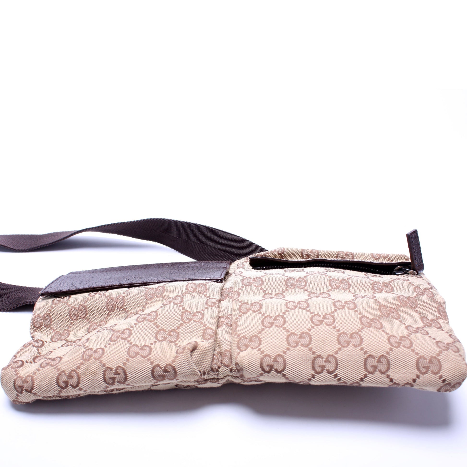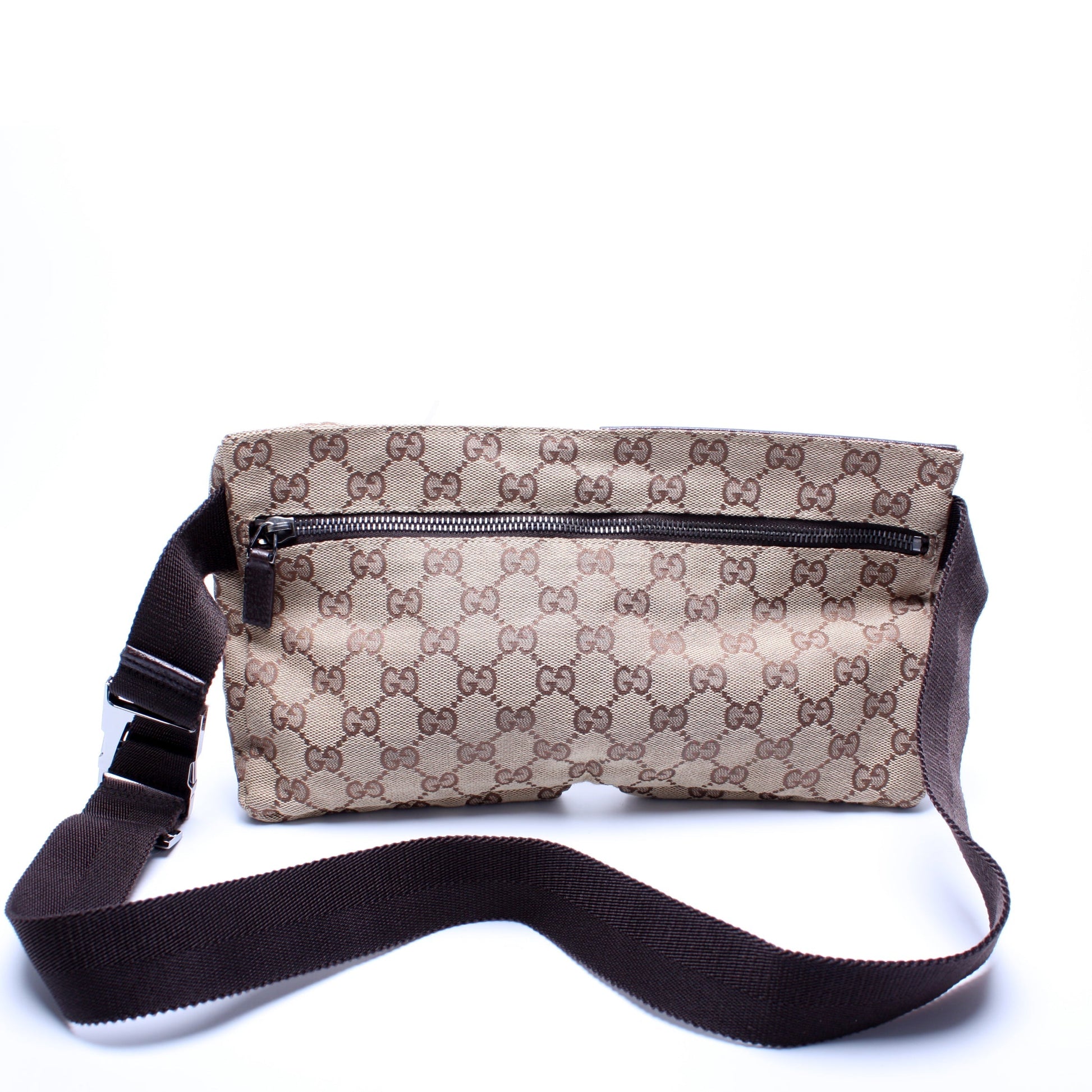 This Gucci GG Canvas Waist Bagis eye catching bag. The exterior is in the classic GG canvas.