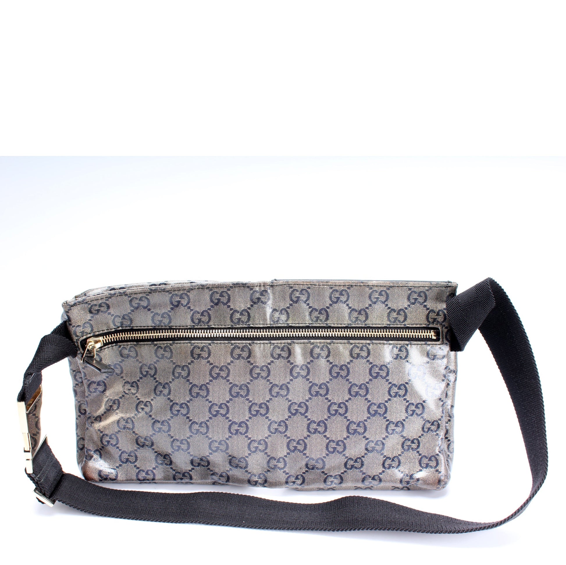 This Gucci GG Coated Canvas Waist Bagis eye catching bag. The exterior is in the classic Gucci GG coated canvas.