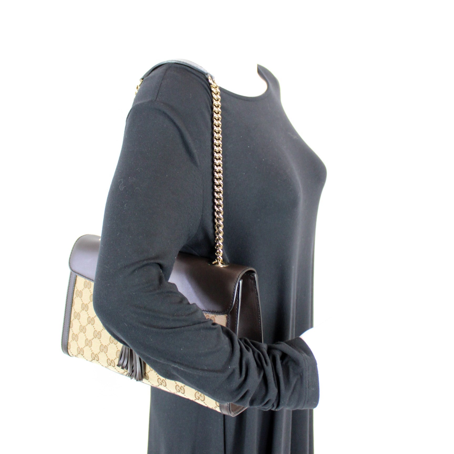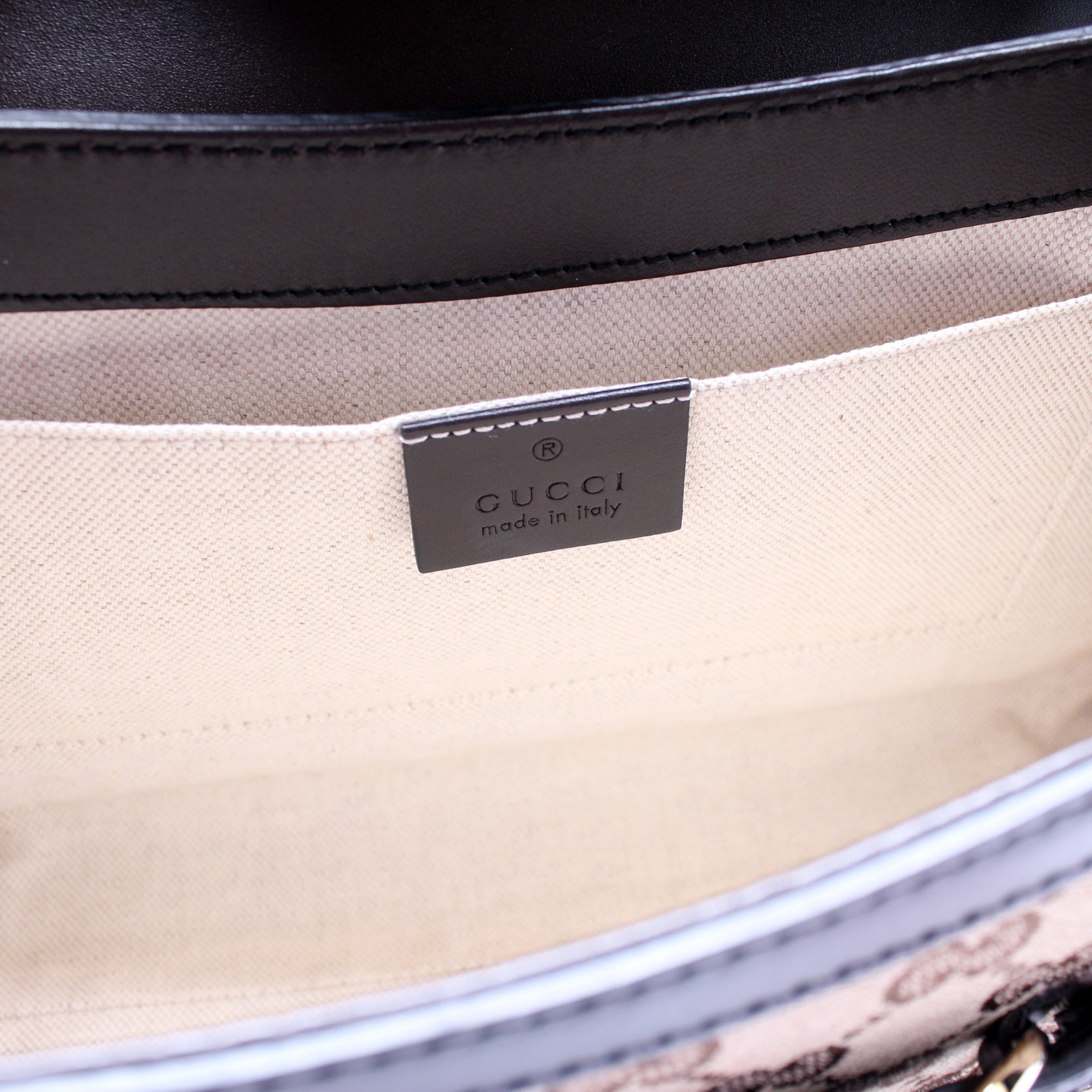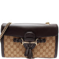 This Gucci Emily Medium Canvas Bagis eye catching bag. The exterior is in the classic Gucci GG canvas.