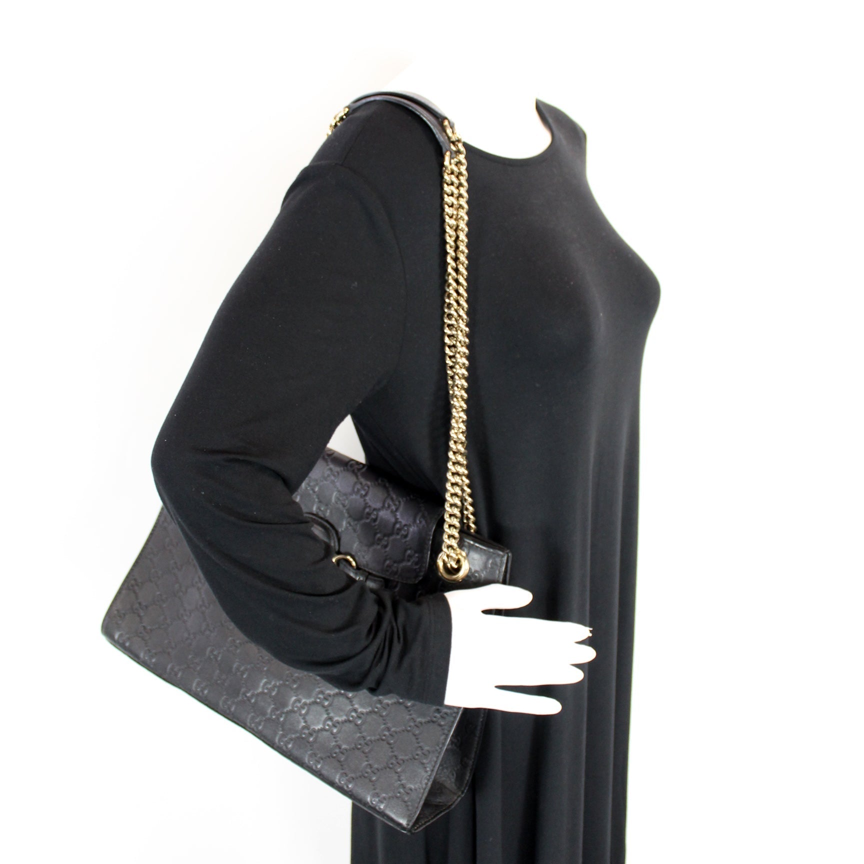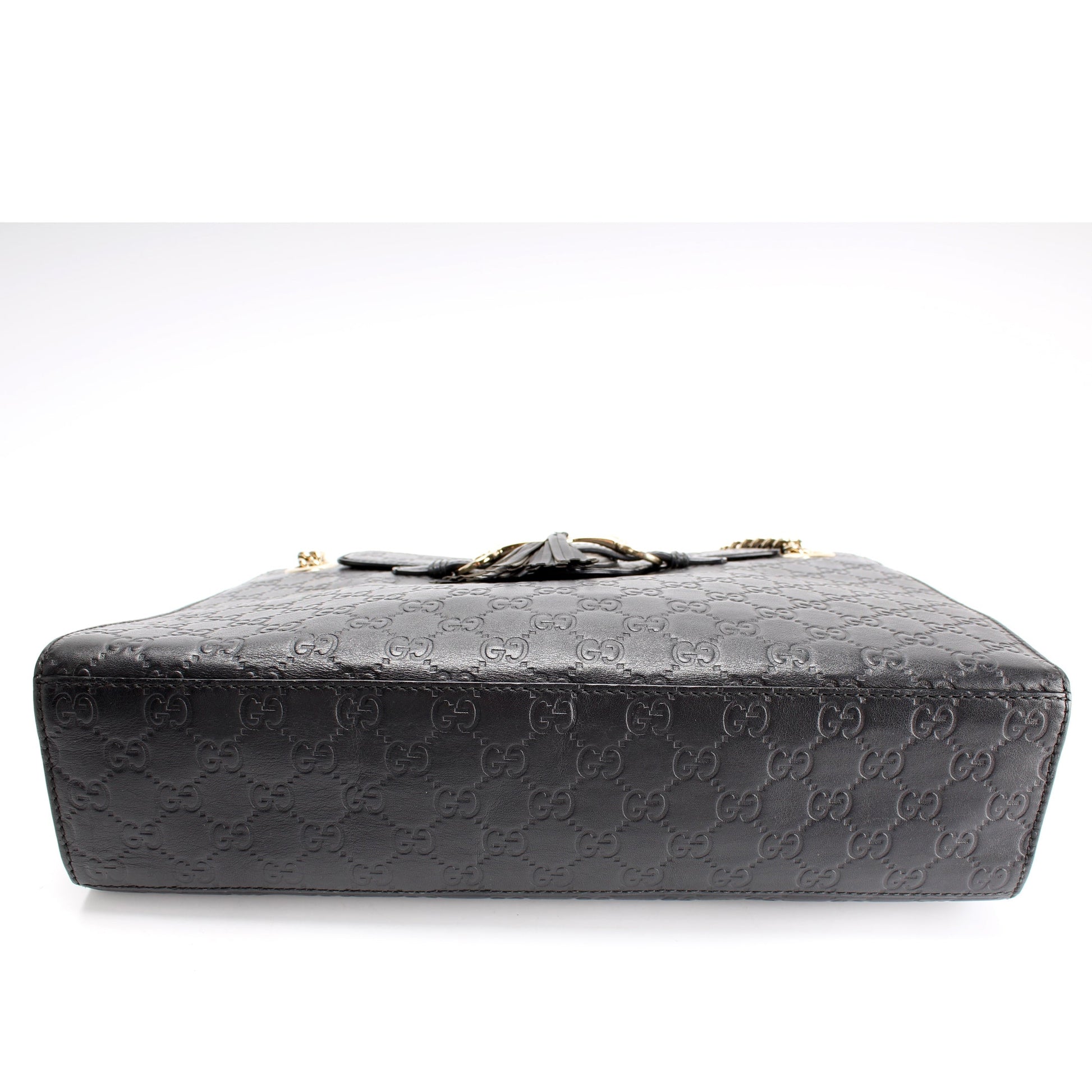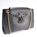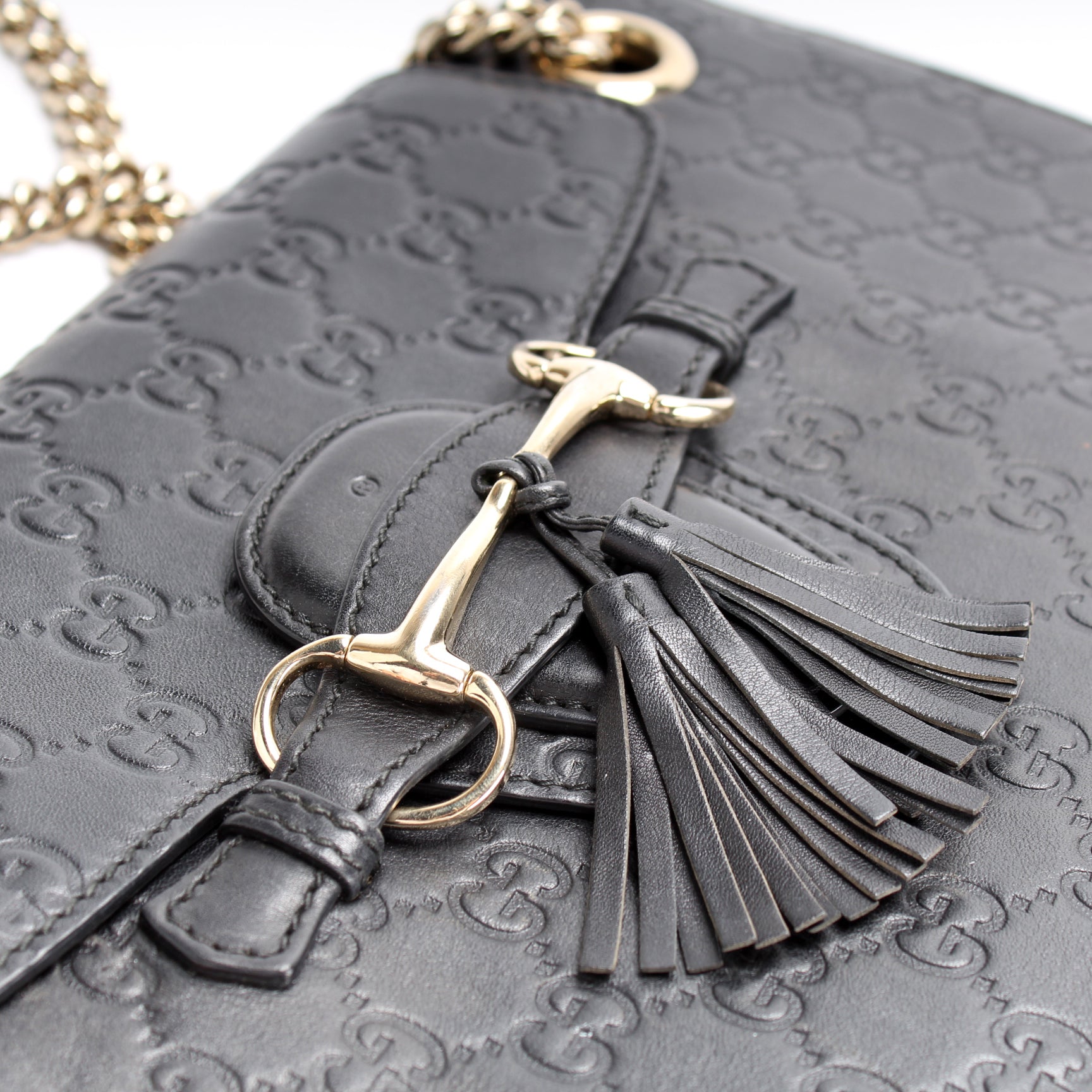 This Gucci Emily Chain Shoulder Bagis eye catching bag. The exterior is in the classic Gucci GG Canvas.