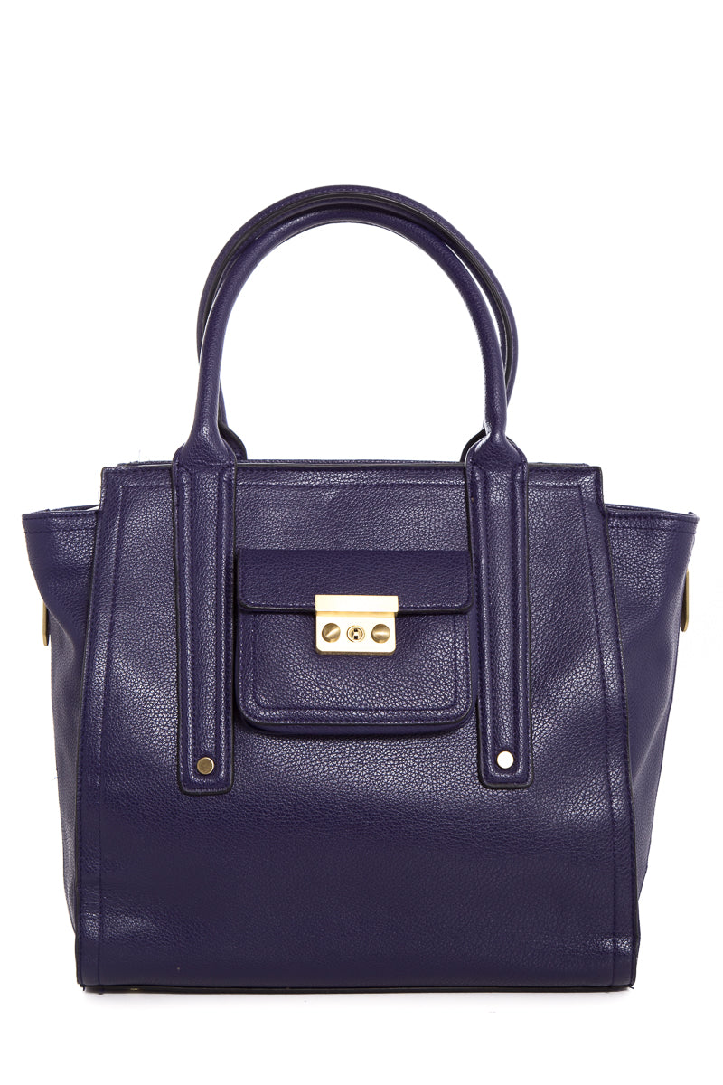 3.1 Phillip Lim Purple Handle Bag. This item is in good condition with some discoloring on lining.