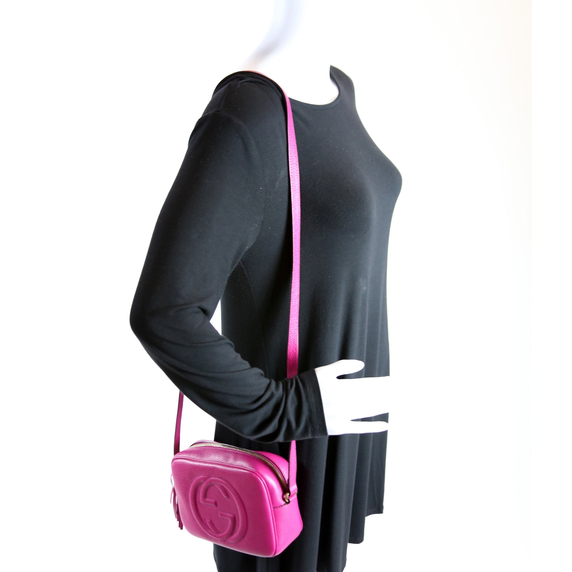 This Gucci Soho Disco Crossbodyis eye catching bag. The exterior is in the classic Gucci Soho leather.