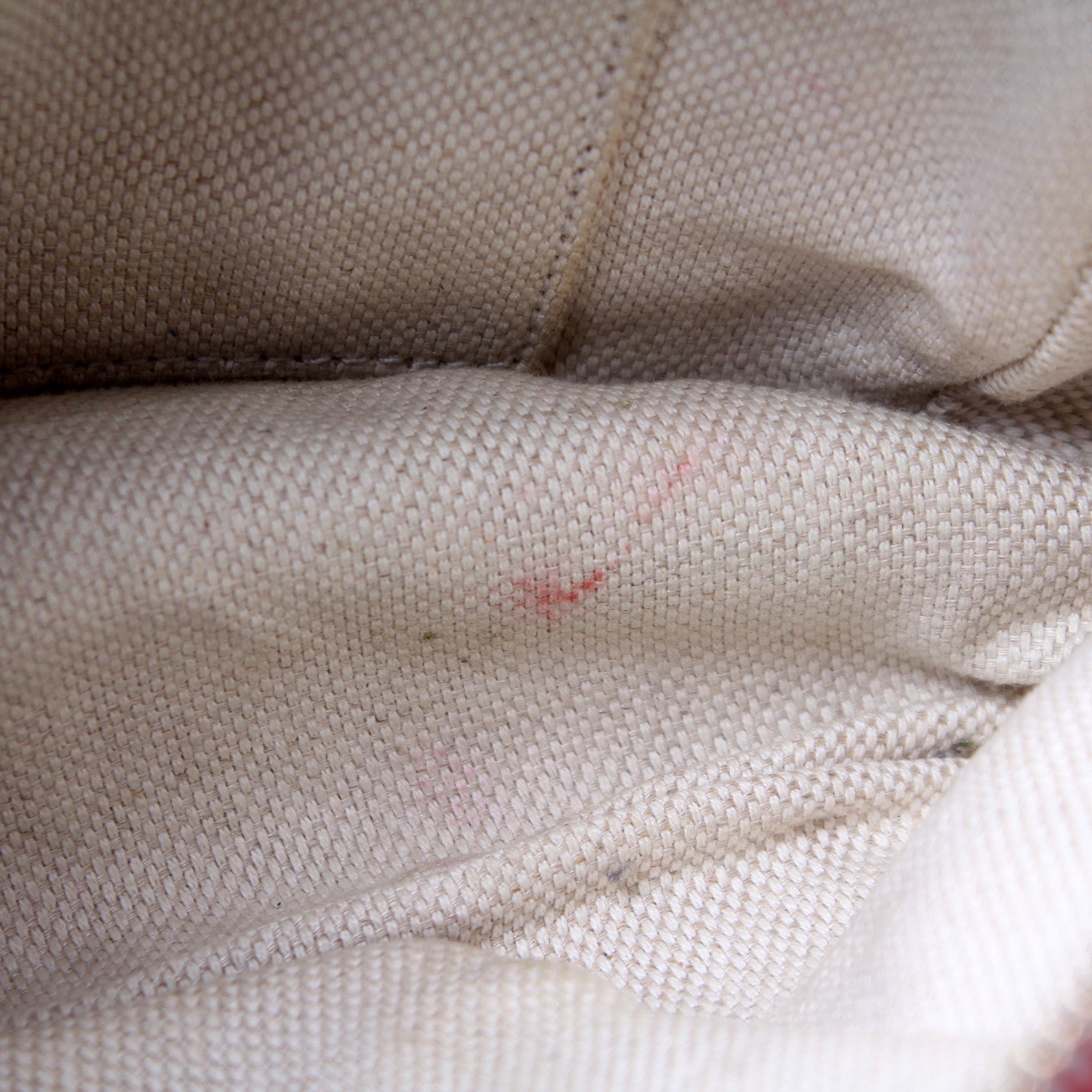 Interior: The interior is free of rips or tears. The interior features two open pockets. There are stains to the interior fabric.