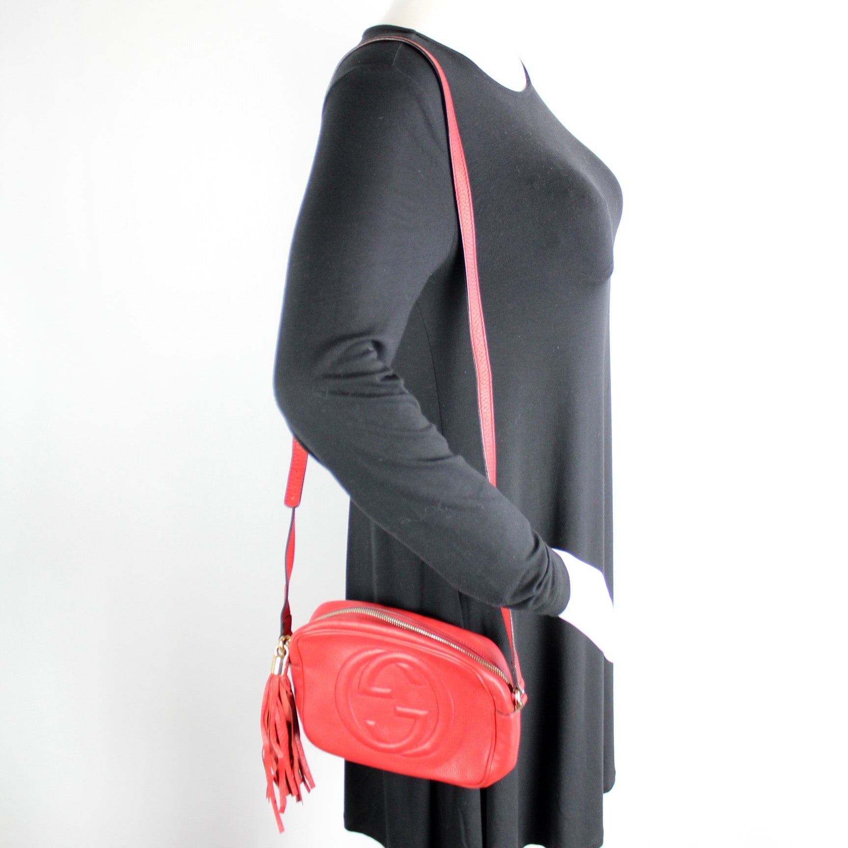 This Gucci Soho Disco Crossbodyis eye catching bag. The exterior is in the classic Gucci Soho leather.