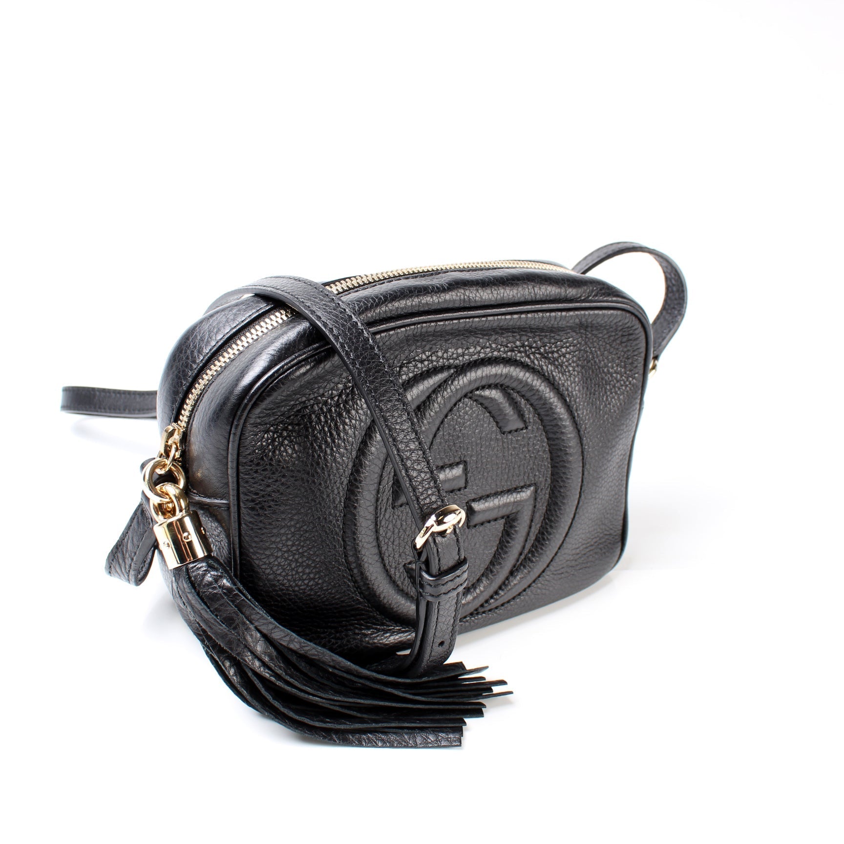 This Gucci Soho Disco Crossbodyis eye catching bag. The exterior is in the classic Gucci Soho leather.