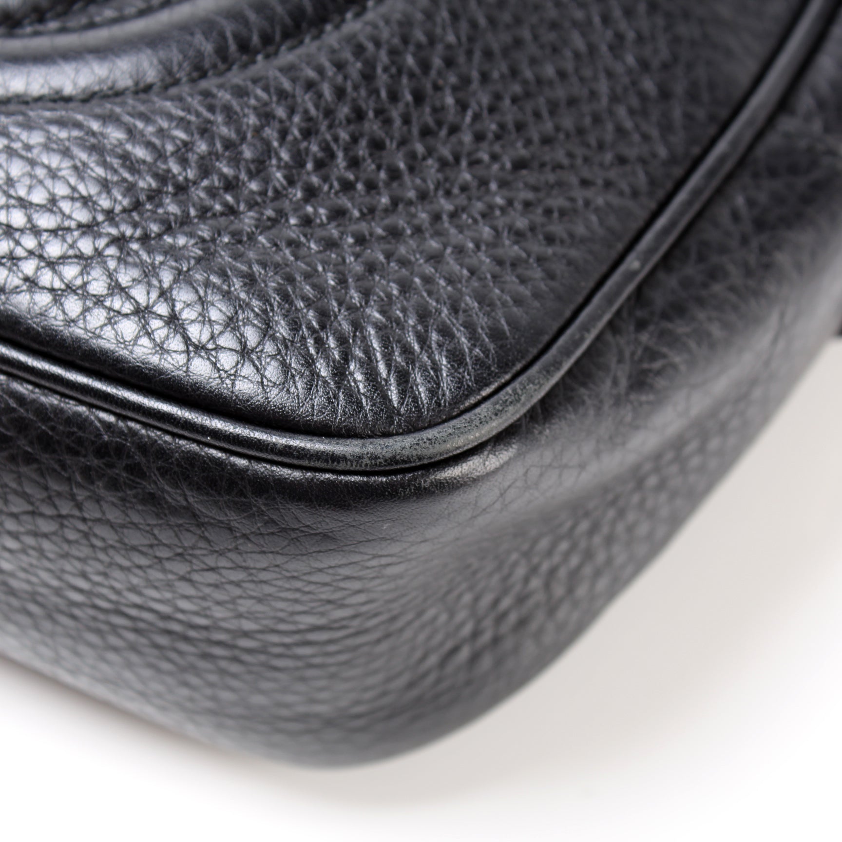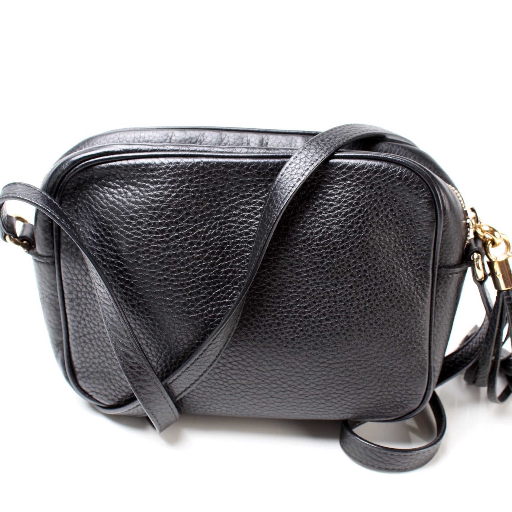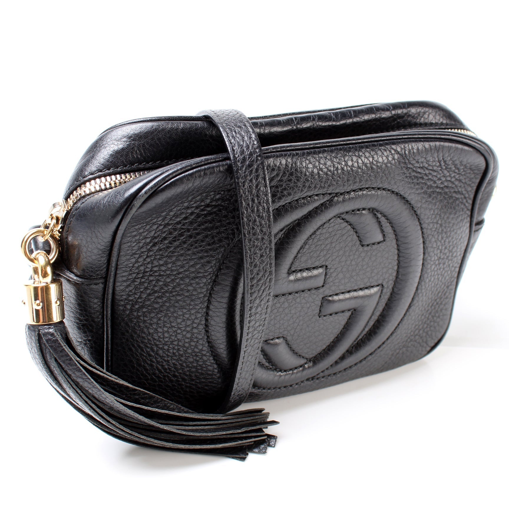 This Gucci Soho Disco Studs Crossbodyis eye catching bag. The exterior is in the classic Gucci Soho leather.