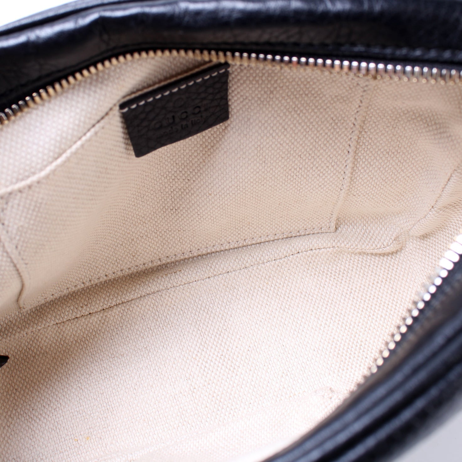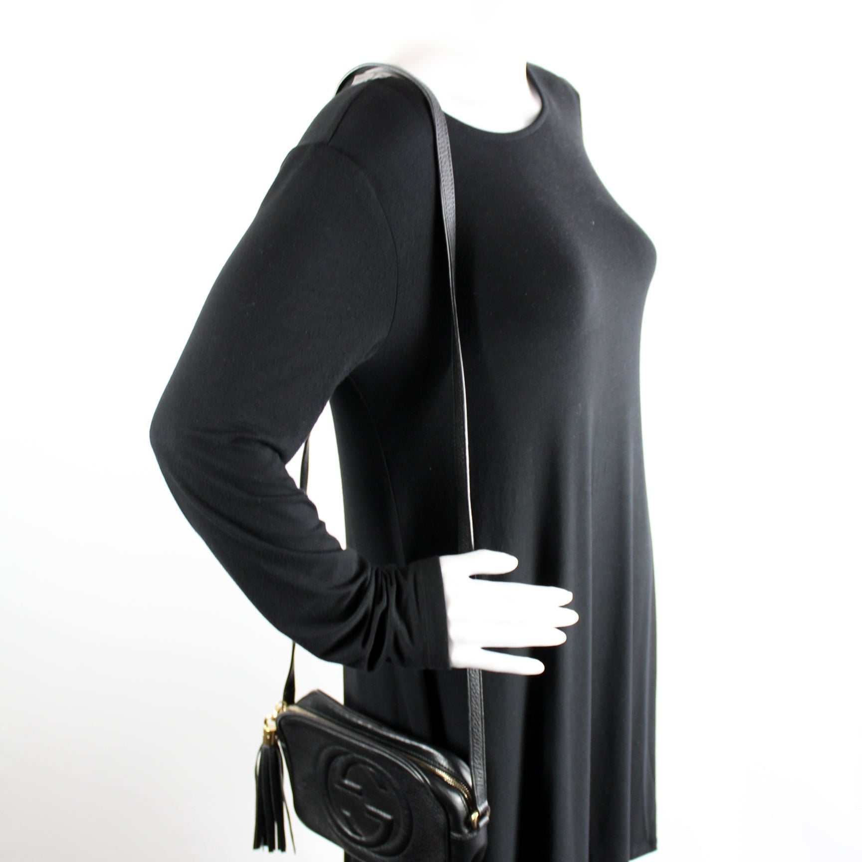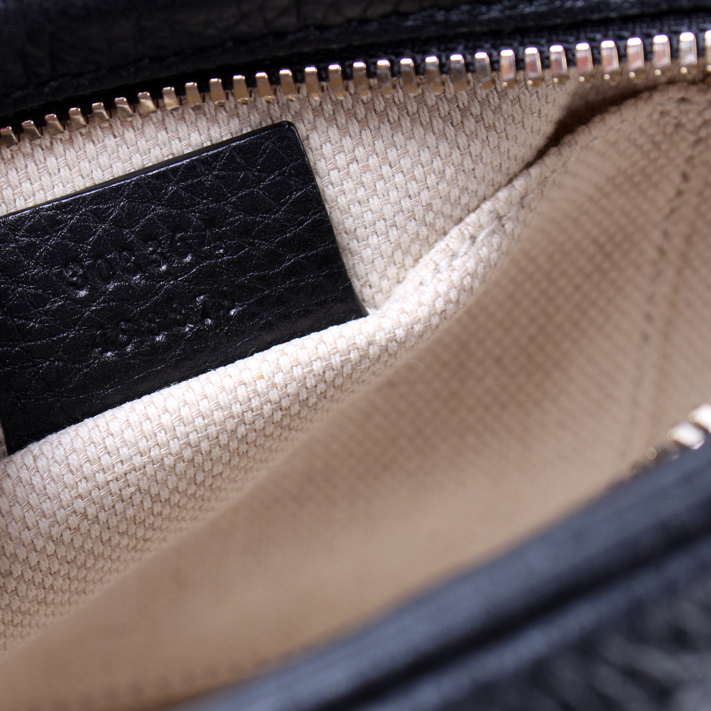 This Gucci Soho Disco Studs Crossbodyis eye catching bag. The exterior is in the classic Gucci Soho leather.