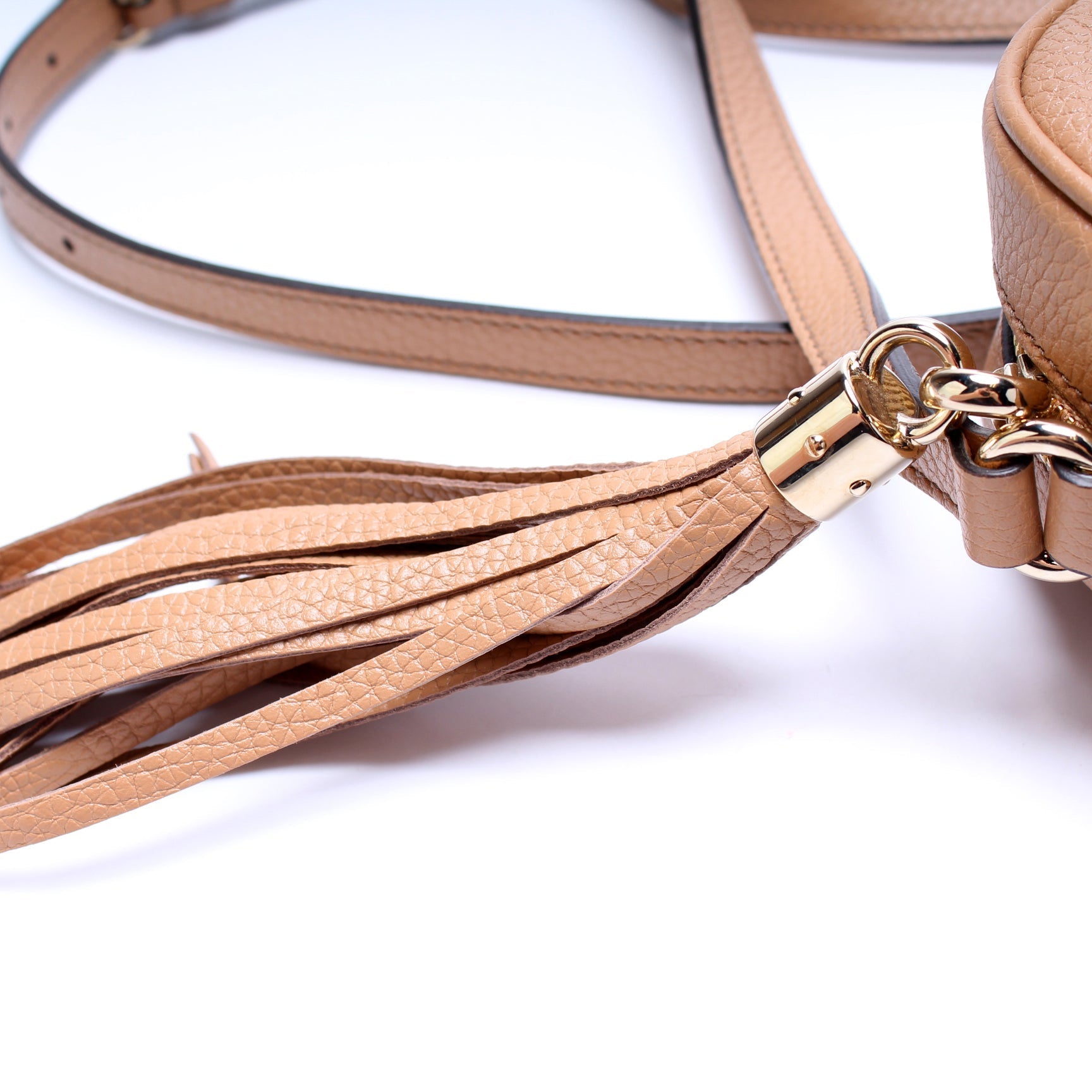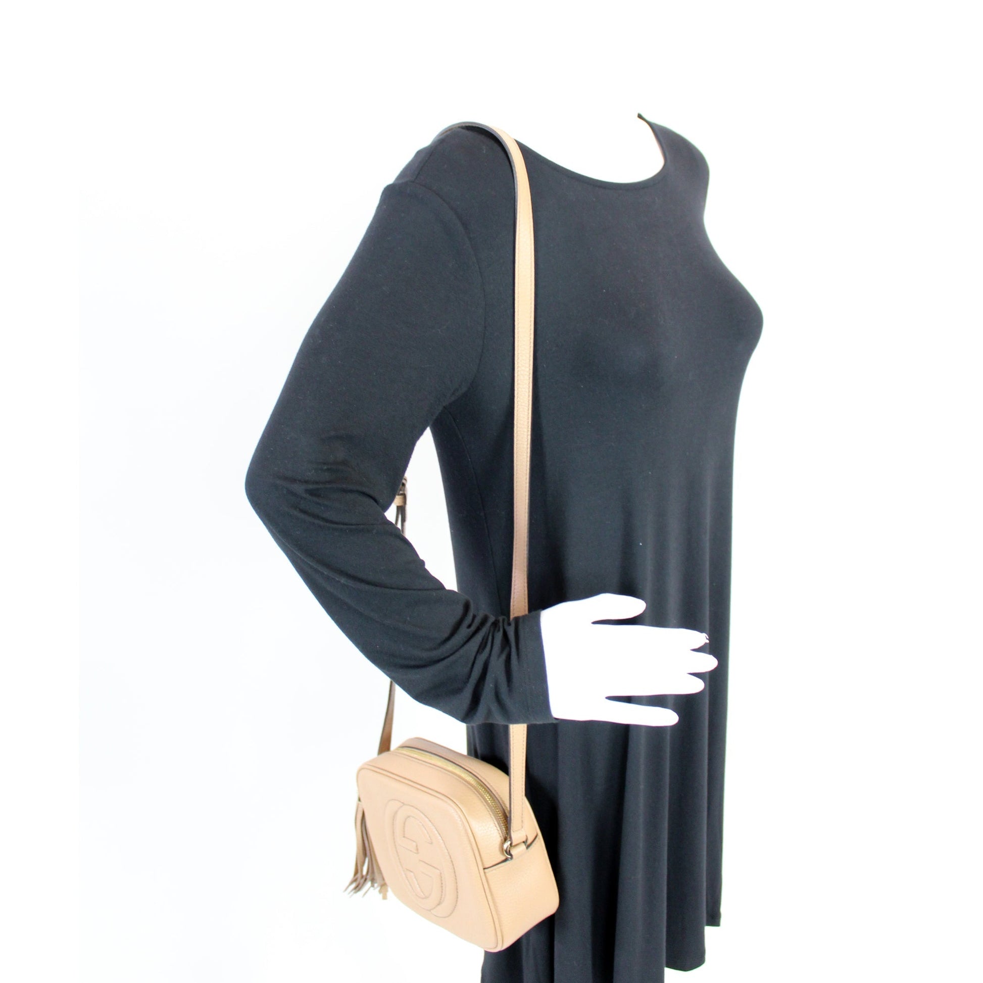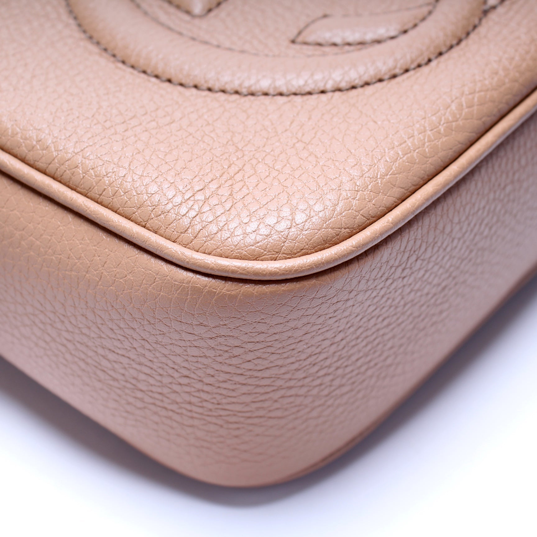 This Gucci Mini Soho Disco Crossbodyis eye catching bag. The exterior is in the classic Gucci Soho leather.