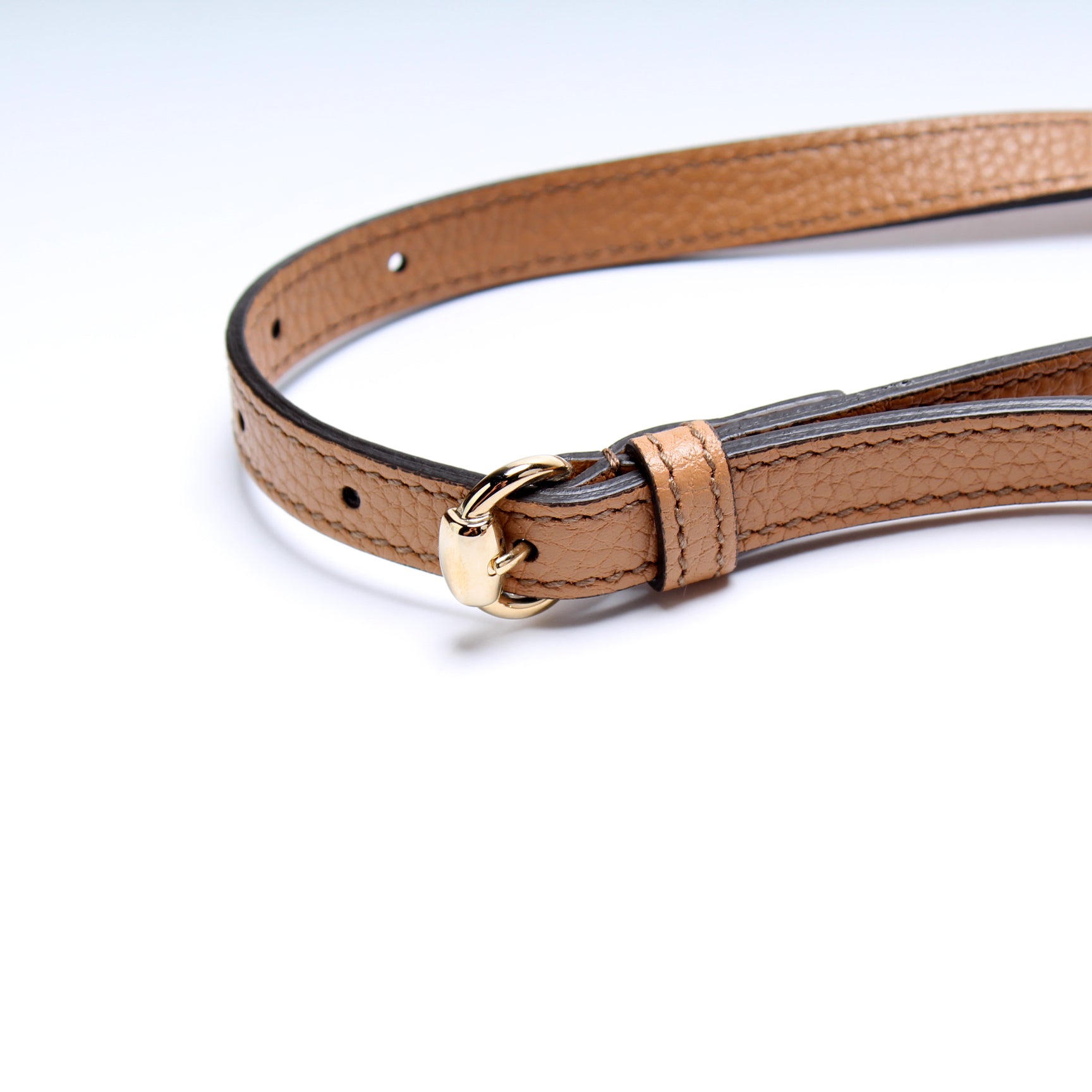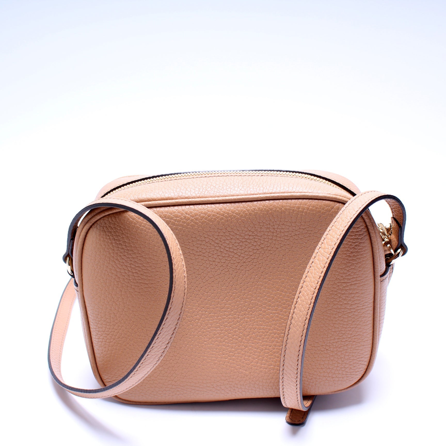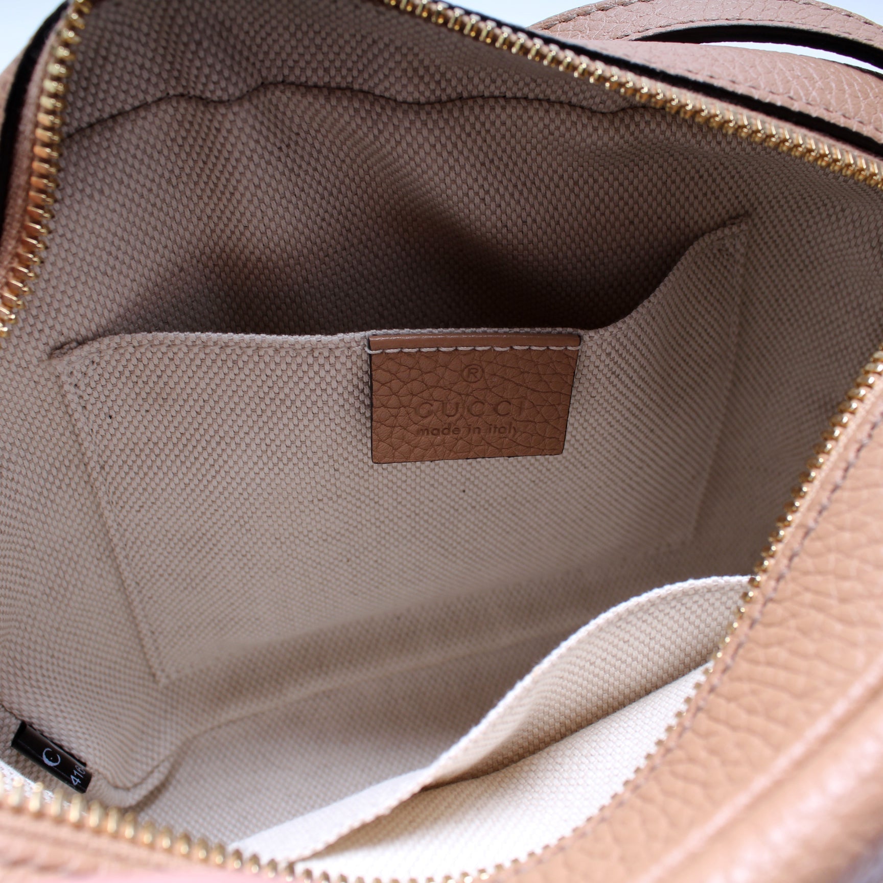 This Gucci Mini Soho Disco Crossbodyis eye catching bag. The exterior is in the classic Gucci Soho leather.