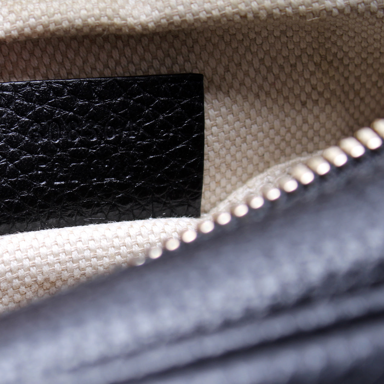 This Gucci Soho Disco Crossbodyis eye catching bag. The exterior is in the classic Gucci Soho leather.