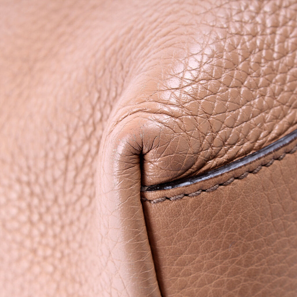 Strap: The leather handles have minor discoloration.