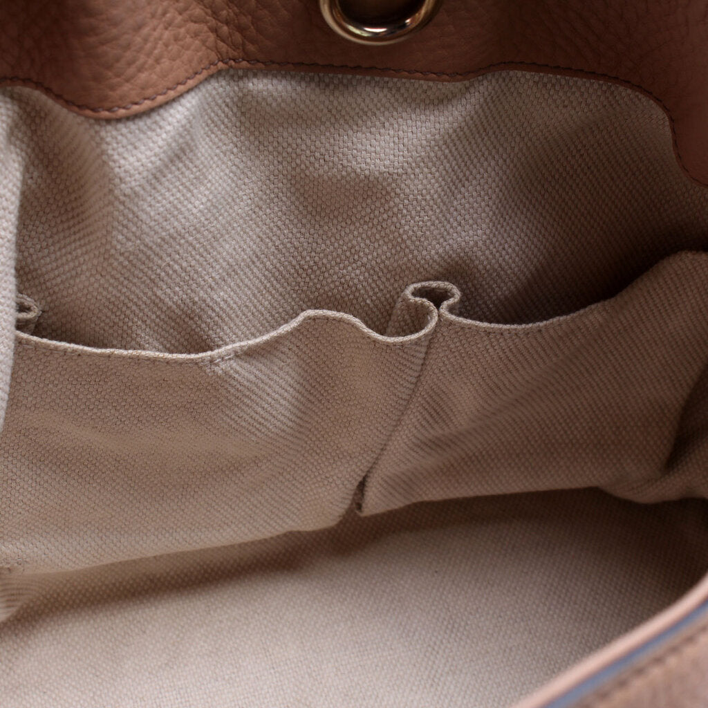 Interior: The interior is clean and free of rips or tears. The interior features two open pockets and one zip closure pocket.