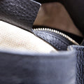 Exterior: The exterior leather is free of any cracking. The corners show light rubbing. The glazing shows minor cracks along the opening of the bag.