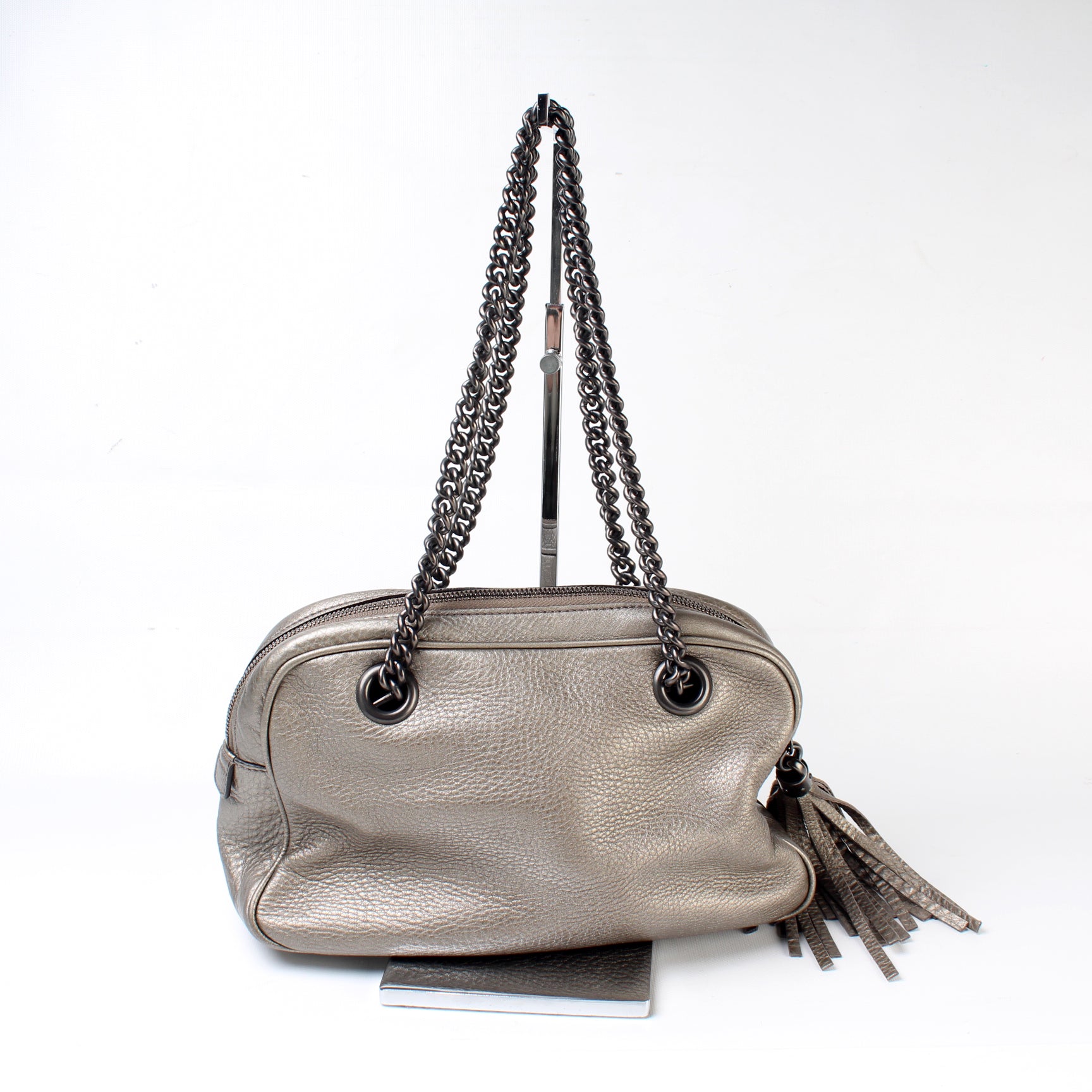 This Gucci Soho Chain Shoulder Bagis eye catching bag. The exterior is in the classic Gucci Soho leather.