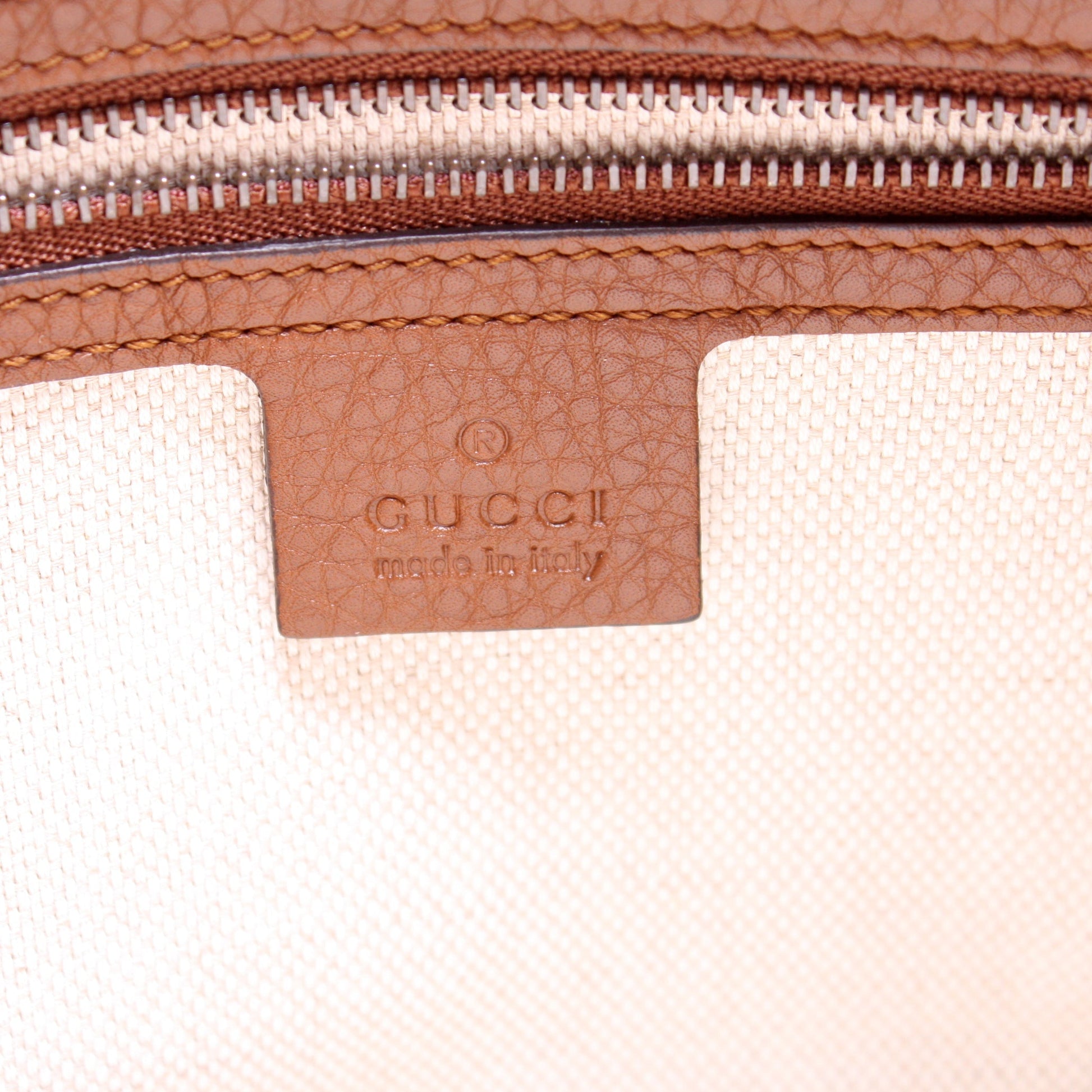 Hardware: The zipper operates properly and runs smoothly. The leather on the zipper pull shows light wear.