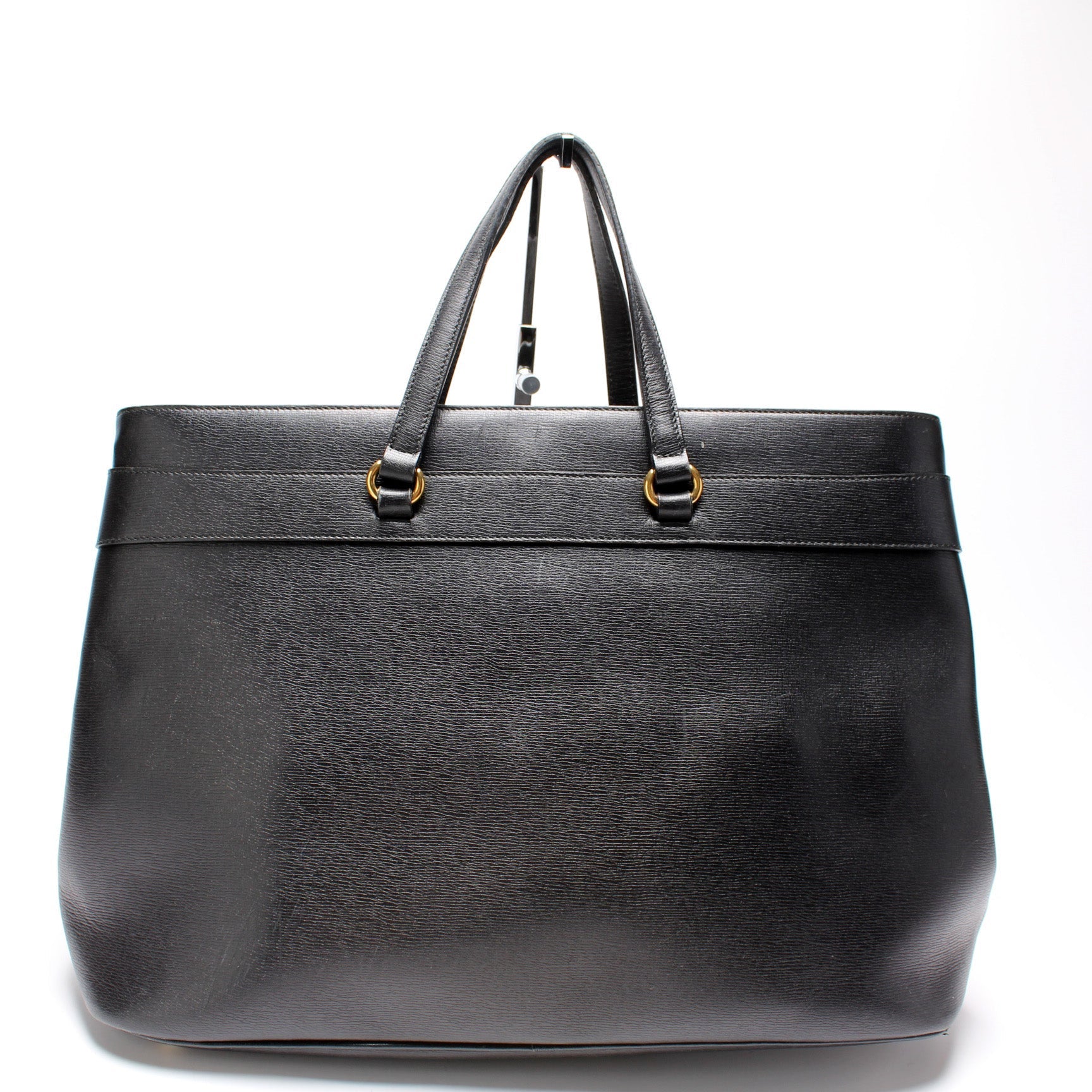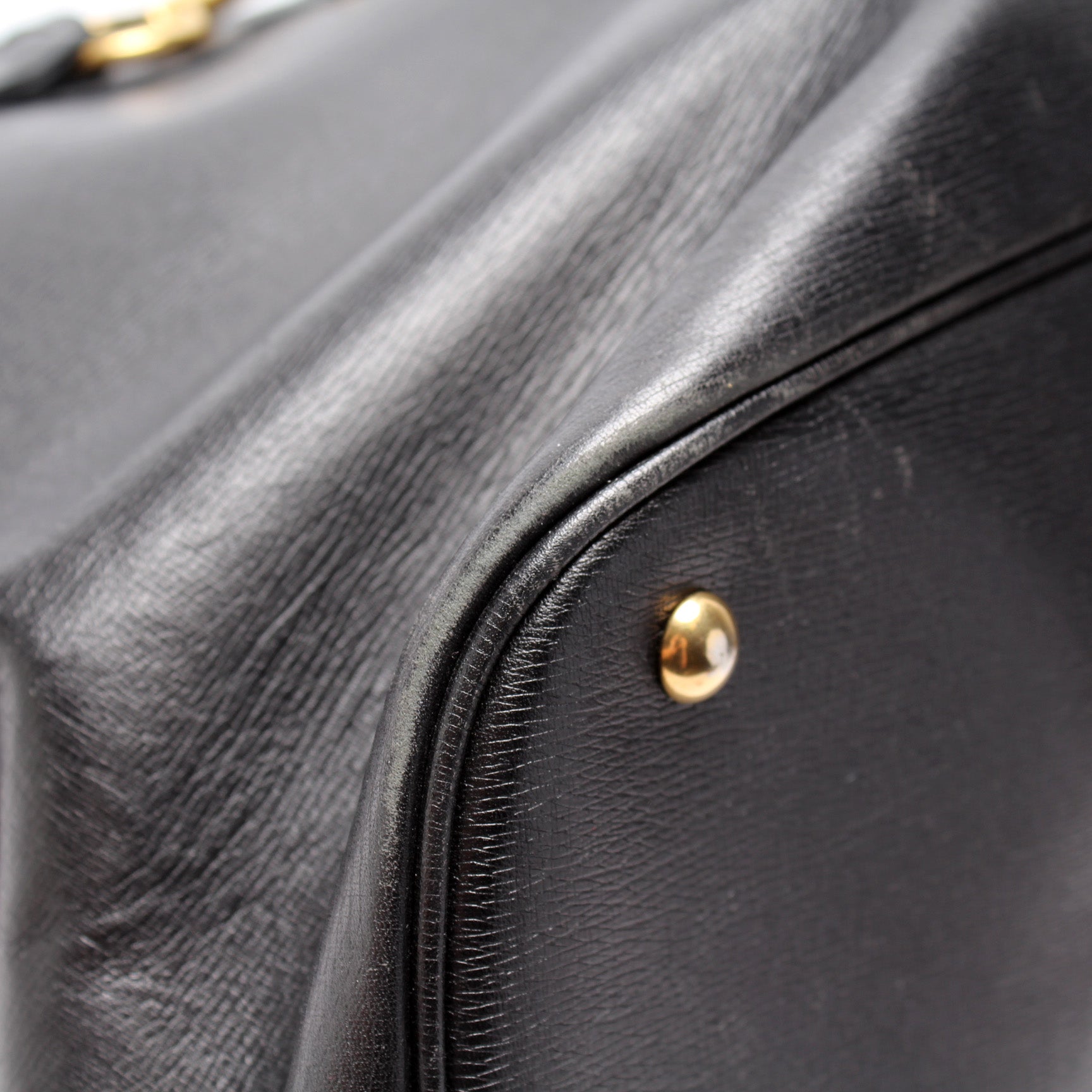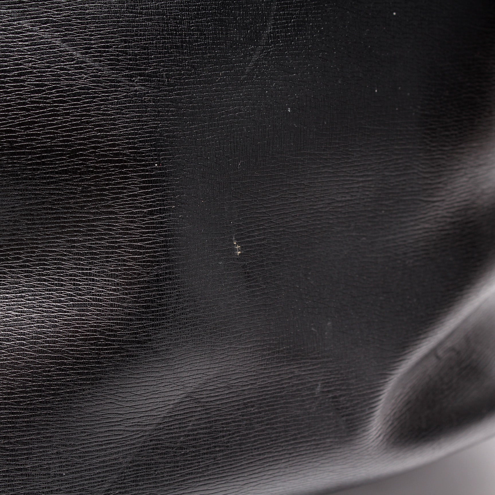 Exterior: The exterior leather has wear and discoloration to the corners. There is scratching throughout the leather.