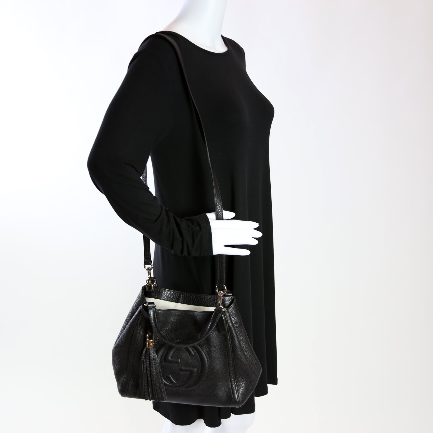 This Gucci Soho Leather Shoulderis eye catching bag. The exterior is in the classic Gucci Soho leather.